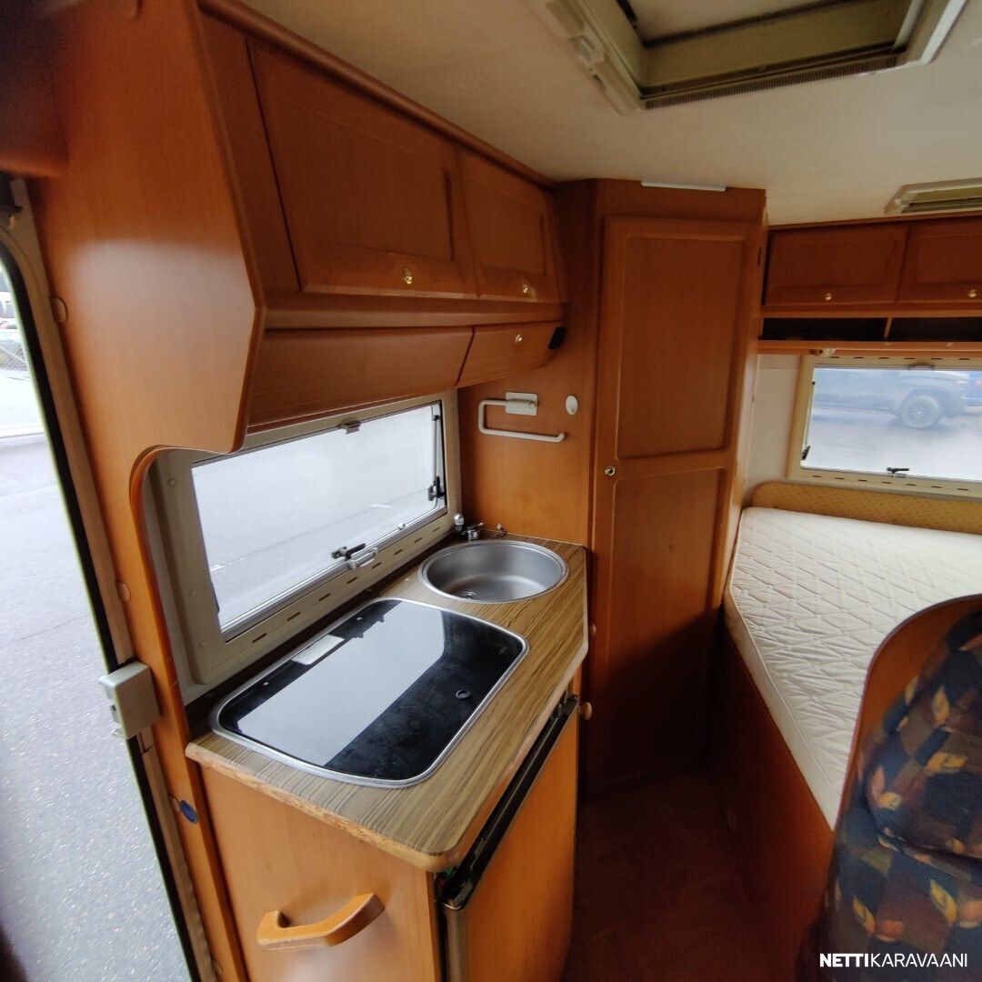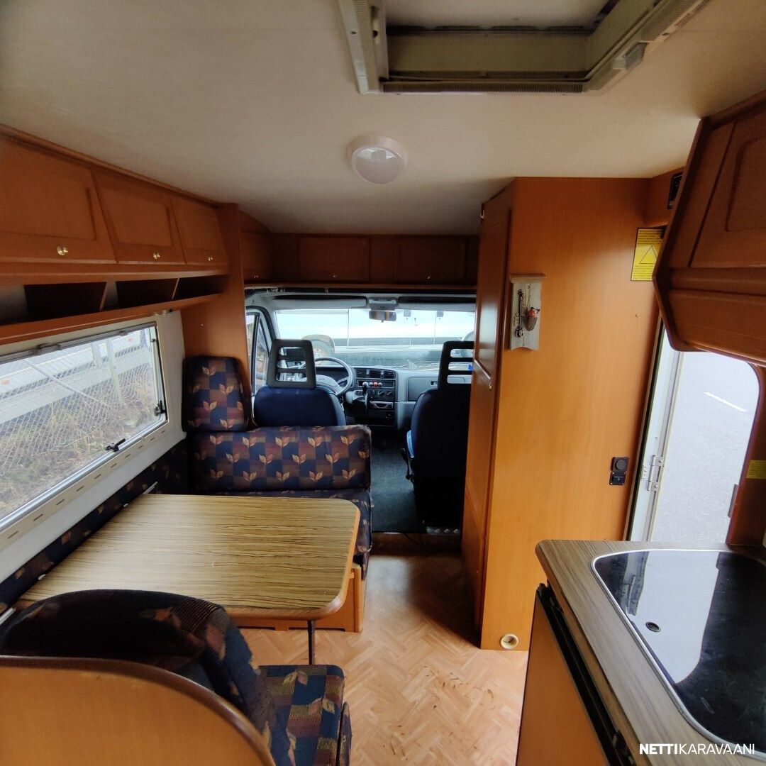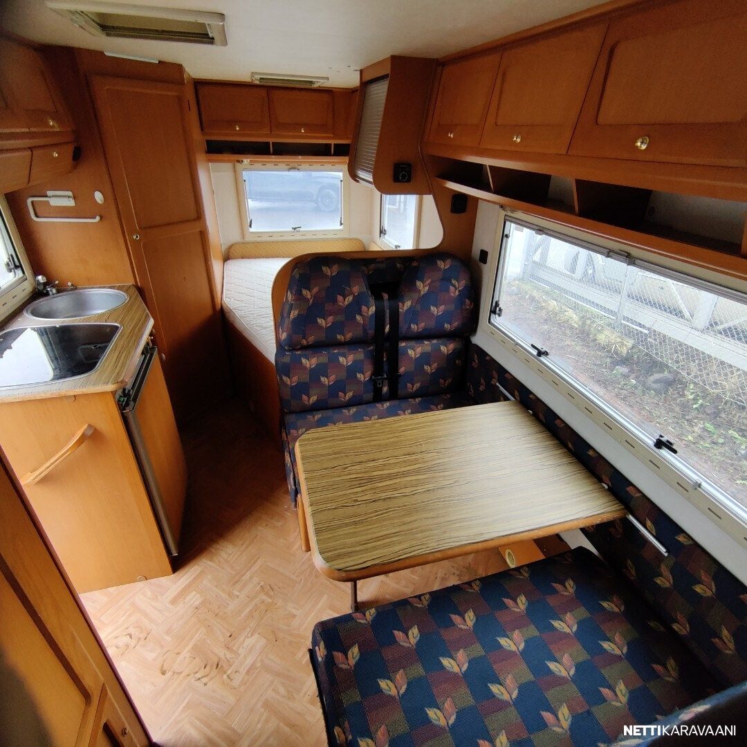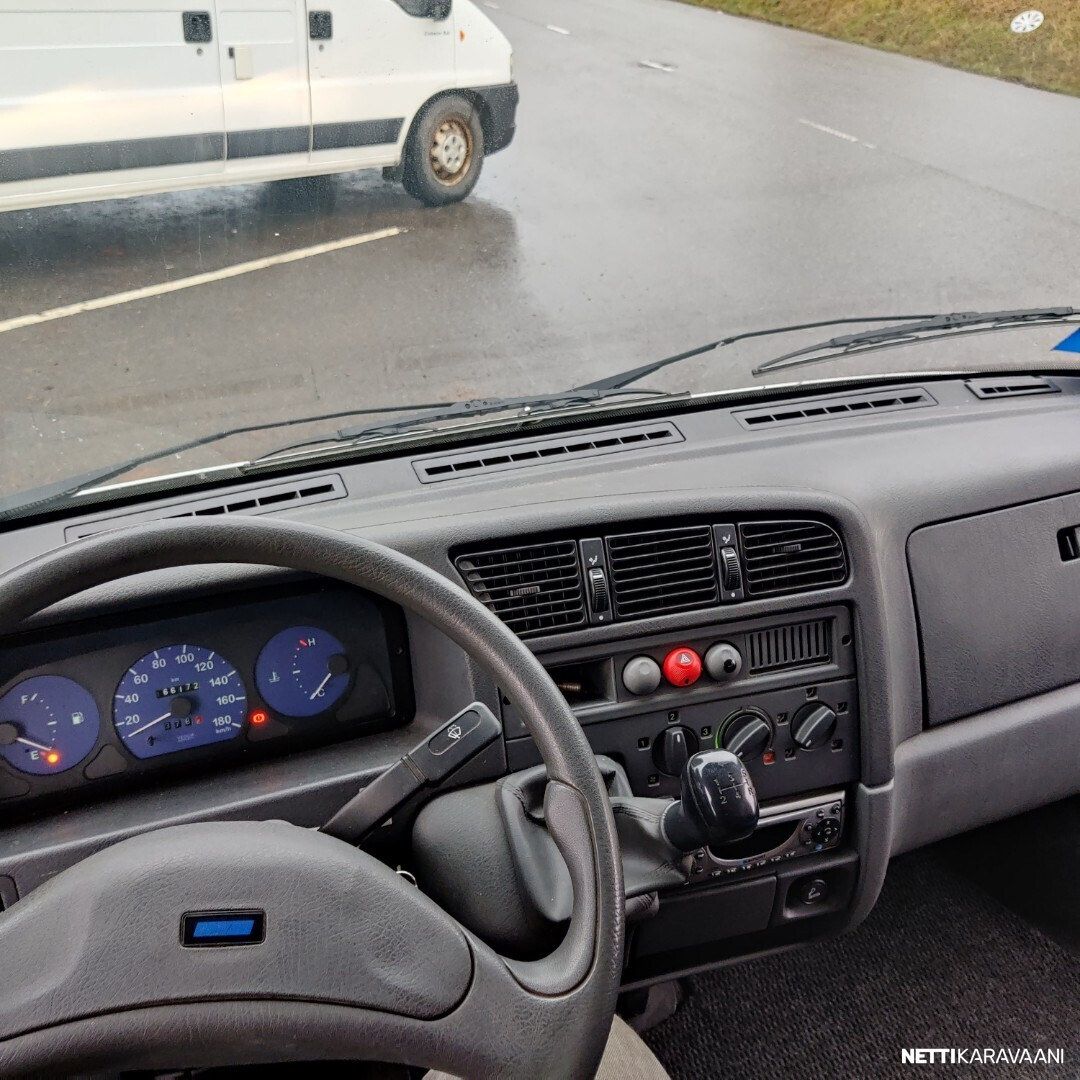 Vaihteisto: Manuaali Polttoaine: Diesel Vetotapa: Etuveto Leveys: 222 cm Pituus: 608 cm Rekisteröity: 01.09.2000 Matkustajat: 5 Kokonaismassa: 3 500 kg Oma massa: 2 805 kg Makuupaikat: 2 Ajokortti: B Lämmitys: Ei määritelty