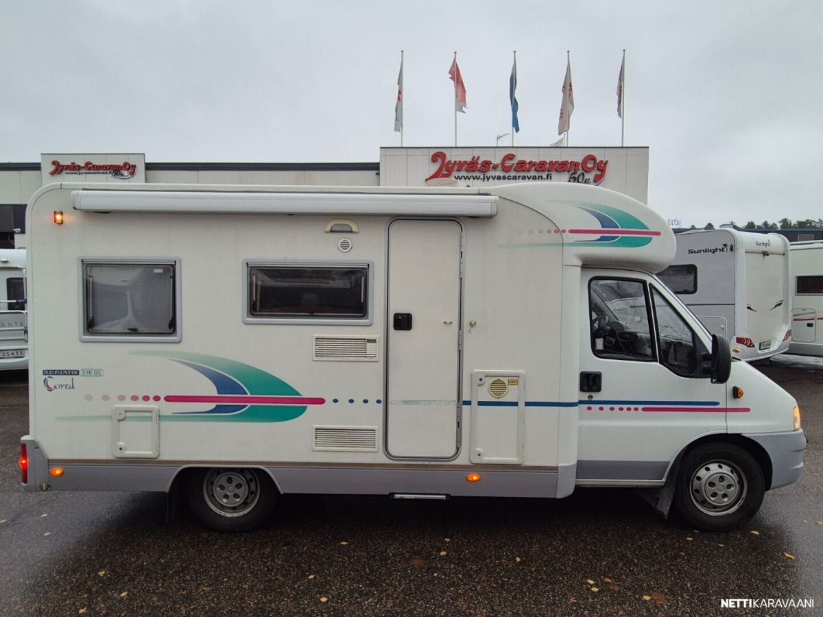 Vaihteisto: Manuaali Polttoaine: Diesel Vetotapa: Etuveto Leveys: 220 cm Pituus: 615 cm Rekisteröity: 01.01.2003 Matkustajat: 5 Kokonaismassa: 3 500 kg Oma massa: 2 927 kg Makuupaikat: 4 Ajokortti: B Lämmitys: Ilmakeskuslämmitys