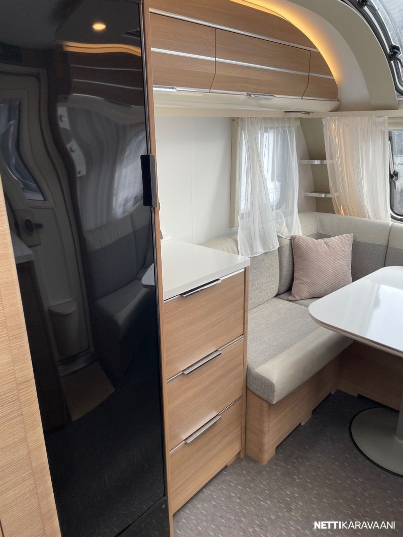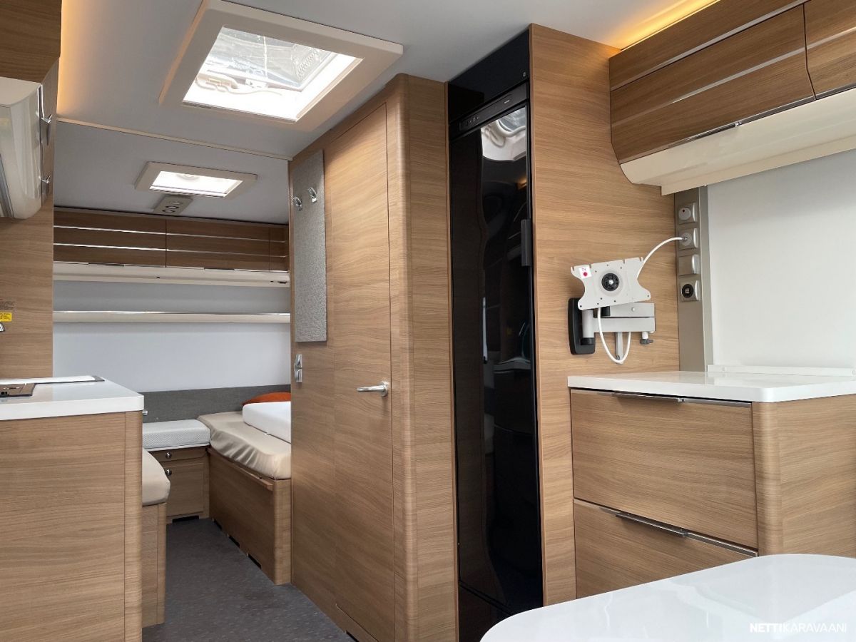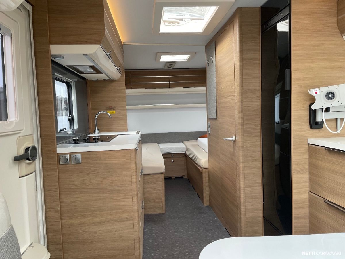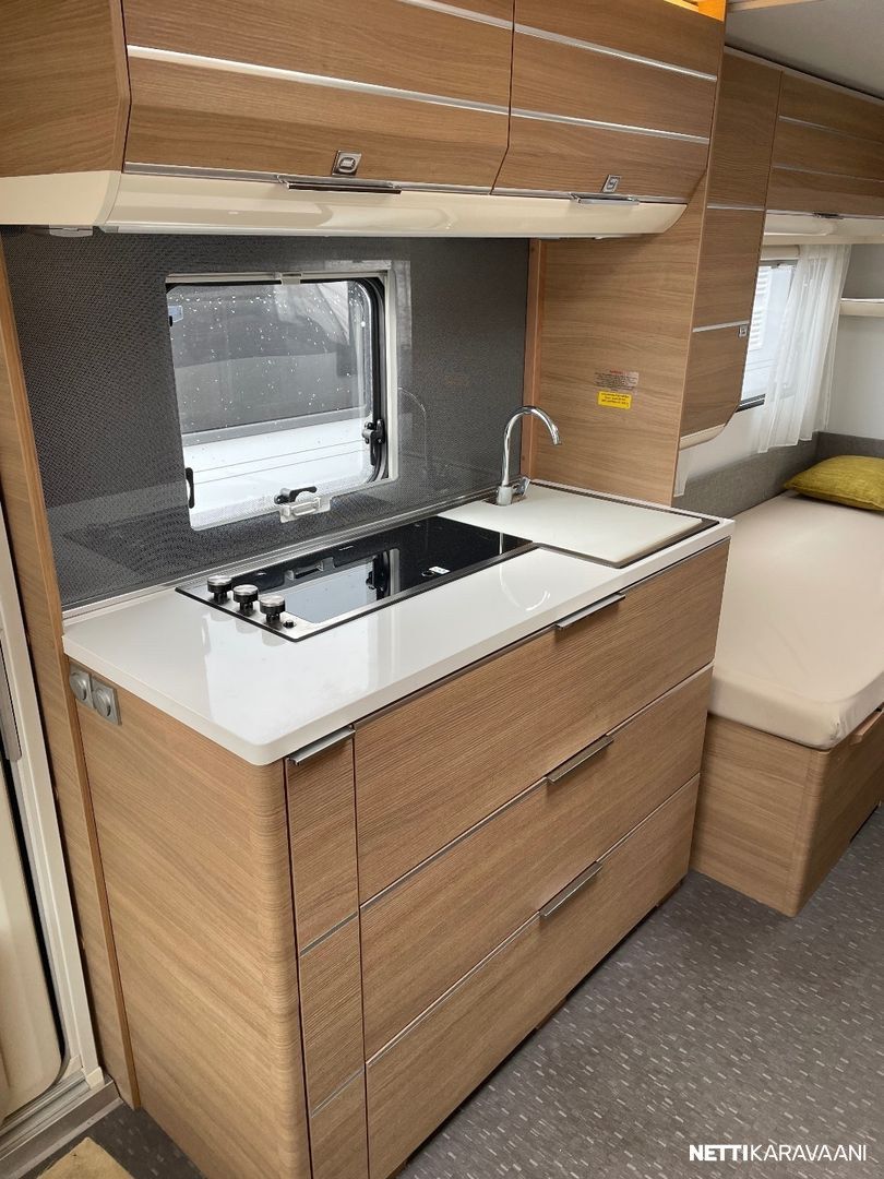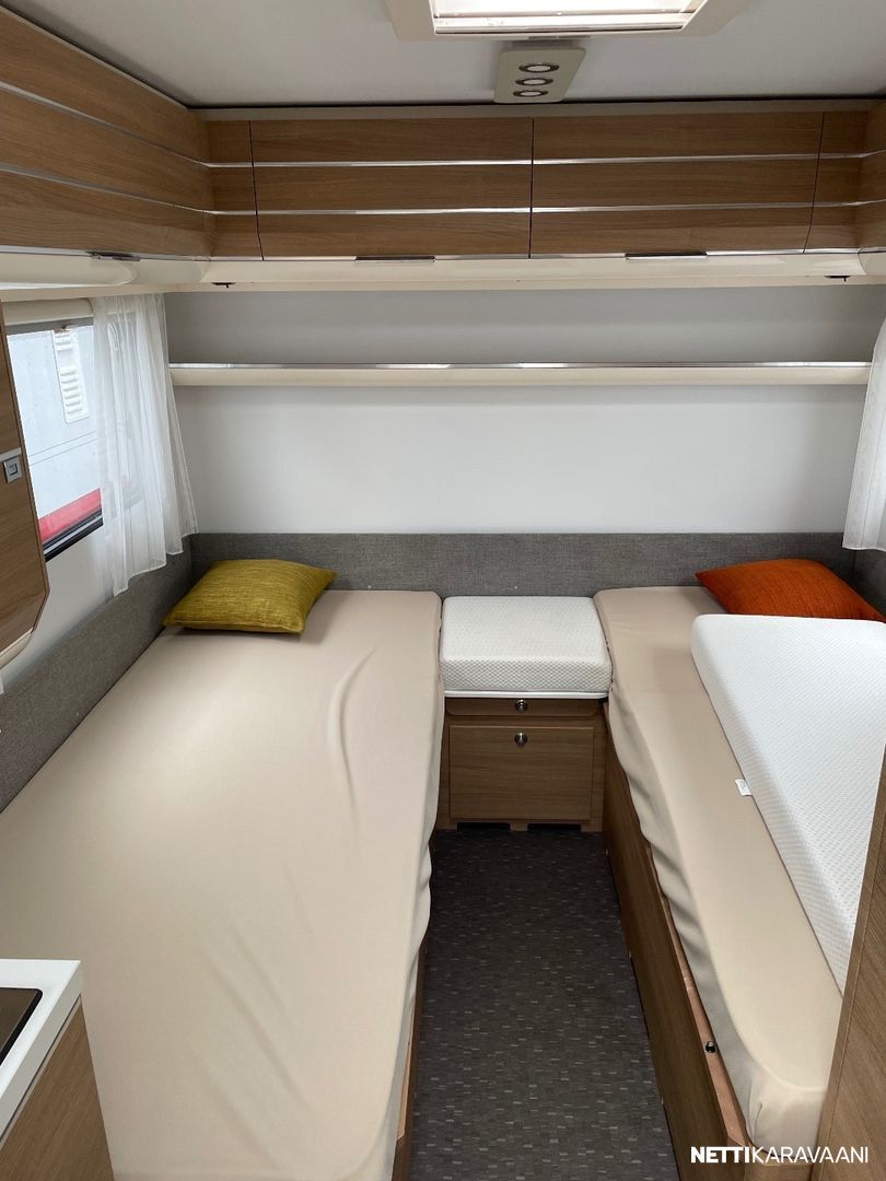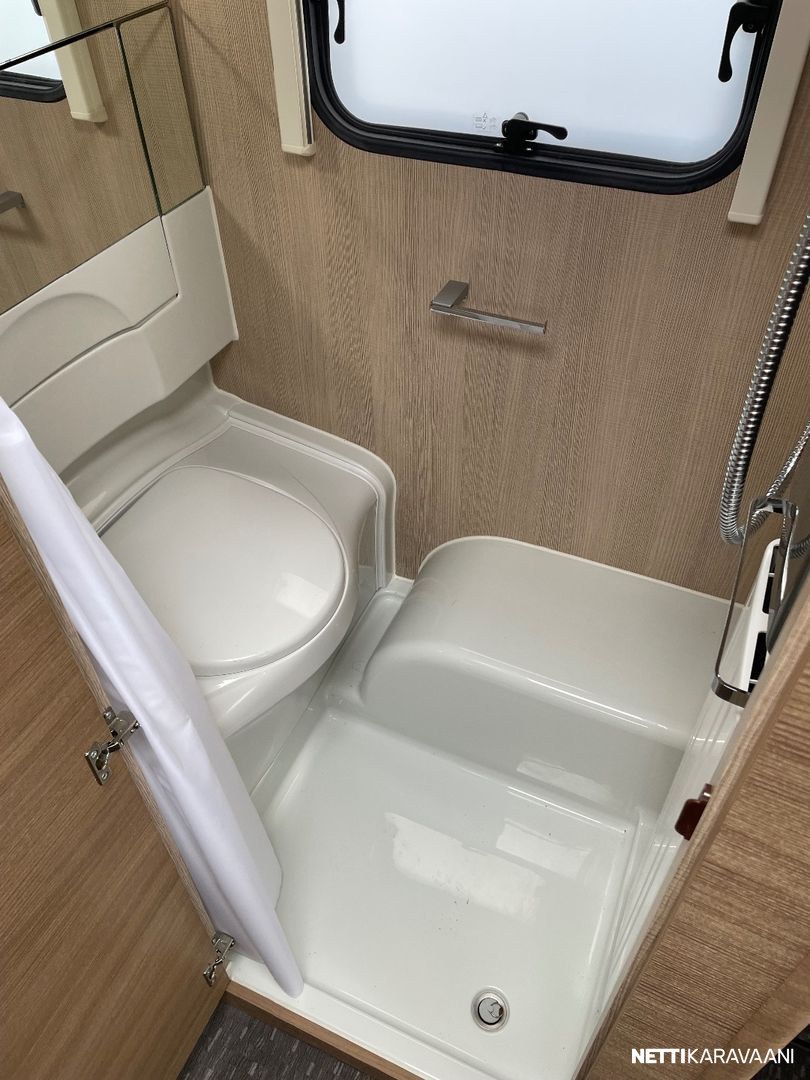 Jääkaappi, Kasetti WC, Kasettiverhot, Lattiamatot asunto-osassa, Liesi, Lämminvesiboileri, Markiisi, Mikroaaltouuni, Pakastelokero, Pesuallas, Suihku, TV-antenni tai lautasantenni, Alde, Erikoisvanteet, Kattoluukku, Lattialämmitys, Sähköpatruuna, Tukijalat