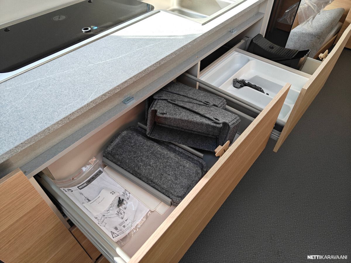 KYSY LISÄÄ!! Uuden sukupolven palkittu Adora. Myydyin matkailuvaunumallistomme, joka on suunniteltu sinun ympärillesi, jotta asuminen olisi helppoa ja mukavaa. Näissä premiumluokan matkailuvaunuissa on Adoralle ominainen aerodynaaminen siluetti, avarat, tilavat ja tyylikkäät sisätilat sekä ympärivuotinen suorituskyky. Vakiovarusteet: • ALDE-nestekeskuslämmitys. • Sähkötoiminen lattialämmitys. • Tunturikytkin. • Katto ja sivuseinät polyesteriä (sileä) • Ulkovalo LED. • Panoraamakattoikkuna. • Tummennetut ikkunat. • Led tunnelma-/yleisvalaistus. • Tuorevesisäiliö kiinteä. • Turvavetopää. • Jääkaappi kapea 140 L, liesituuletin, suihku, ym.... Vaunun perushinta akkuvarustuksella ilman lisävarusteita 42500€. Tässä vaunussa lisävarusteina: -Plus-paketti (sis. hyttysverkko-ovi, LCD TV-teline, Teleskooppipöydänjalka, Kattoikkuna Midi-Heki) +1000,00€ -Mattosarja +390,00€ -Mikroaaltouuni +300,00€ Tämän vaunun suositushinta lisävarusteineen 44190,00 €. Korileveys 246 cm. Täystakuu 2 vuotta. Tiiveystakuu 7 vuotta. Kysy Vaunupalvelun edullinen tarjous tälle tai jollekin muulle halumallesi Adria -vaunulle tai -autolle! Den prisbelönta nya generationen Adora, designad runt dig. Vår bästsäljande husvagns-serie med Adrias aerodynamiska silhuett, eleganta interiör och prestanda för alla årstider. Standardutrustning: -Alde vattenburen värme. -El golvvärme. -Integrerad vattentank. -Fjällkoppling. -Smal kyl-frysskåp 140 L. -Spisfläkt. -Panorama takfönster. -Dusch, mm..... Grundpris med batteriutrustning utan tillval 42500€. Denna vagns tillval: -Plus-paket (innehåller: Myggnätsdörr, TV-väggfäste, Teleskopiskt bordstativ, Takfönster Midi-Heki) +1000,00€ -Golvmattor +390,00€ -Mikrougn +300,00€ Pris totalt med tillval 44190,00 €. Karossbredd 246 cm. 2 års garanti. Täthetsgaranti 7 år.