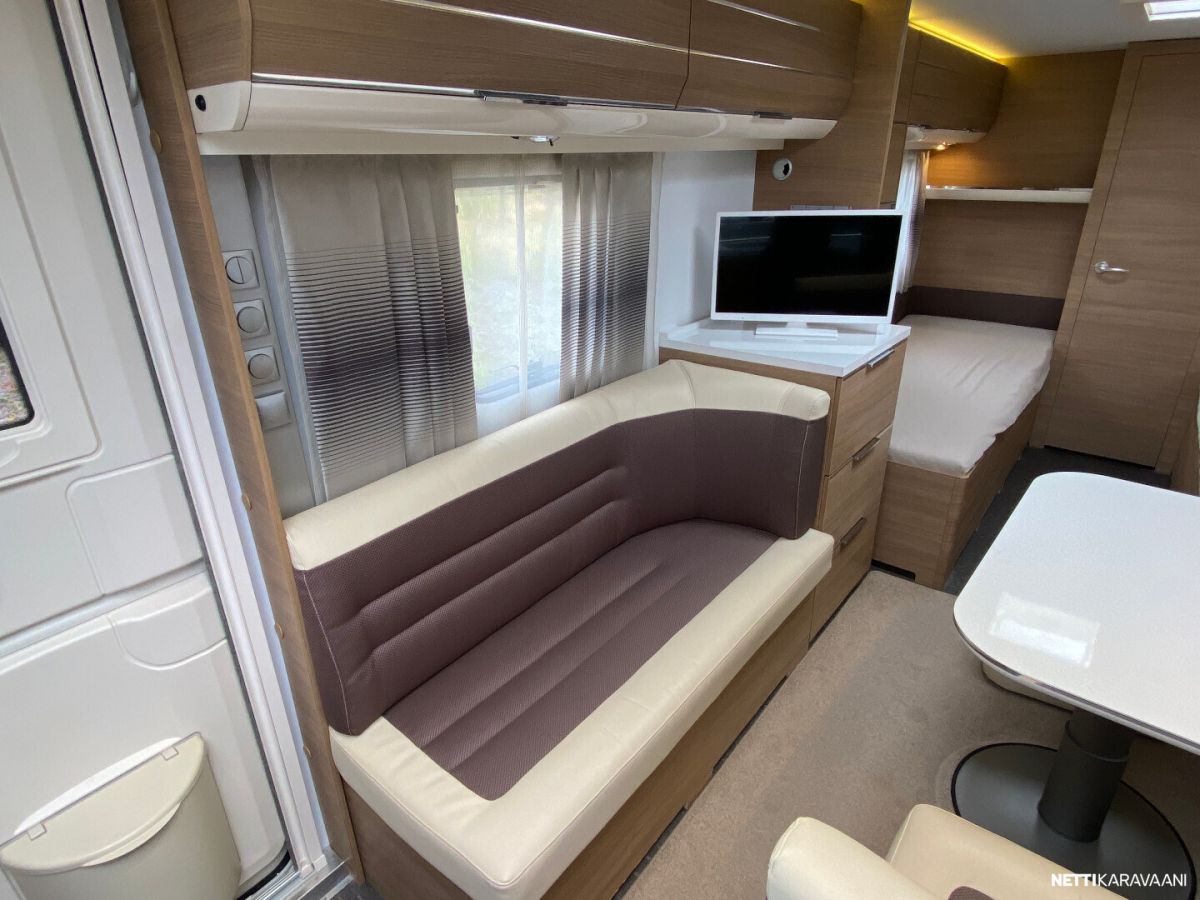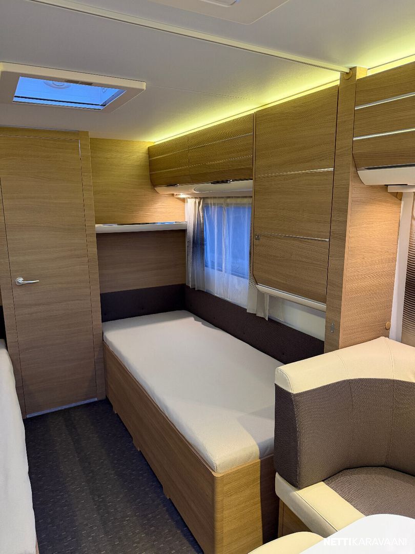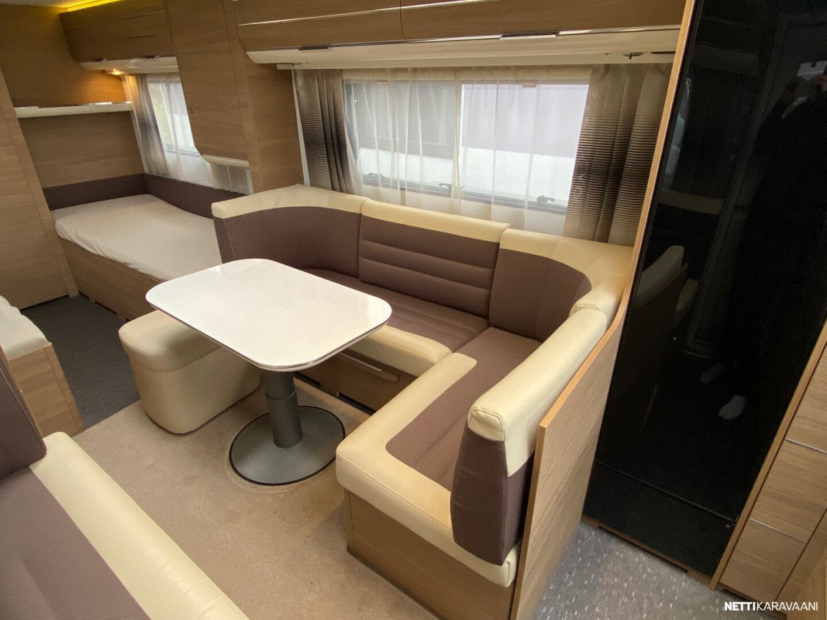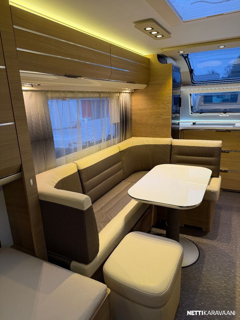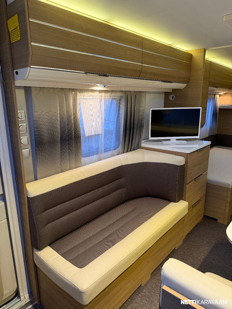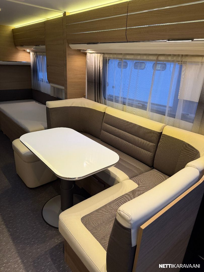 Alde-nestekeskuslämmitys, sähköpatruuna, sähkö lattialämmitys, lämmin vesi, iso jää-/pakastinkaappi, mikro, kiinteä raikasvesisäiliö, takakylppäri, kasettiverhot, kirkas kattoluukku, akku-/laturivarustus, tv- antenni, radio/cd, mattosarja, jalkarahi, kitkavetopää, vetoaisan suojamuovi, hyttysverkko-ovi, alumiinivanteet, kaasupullo, ym...