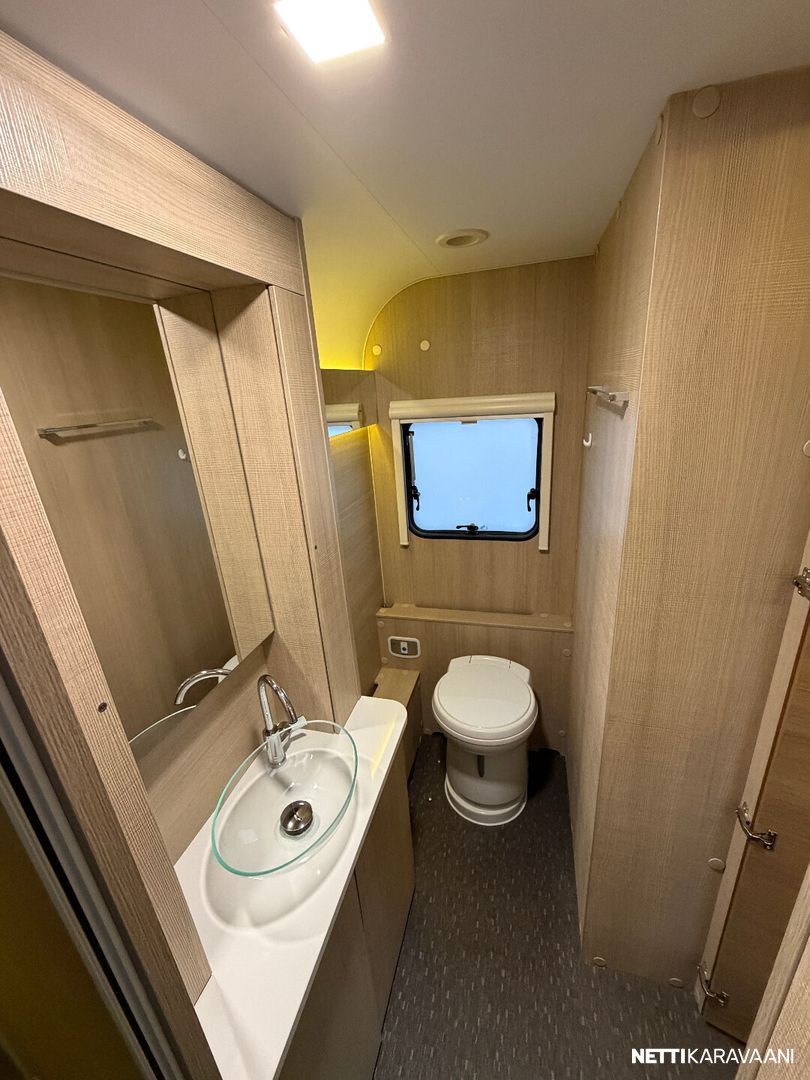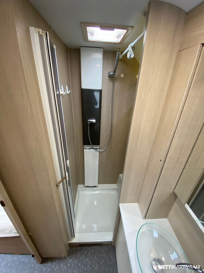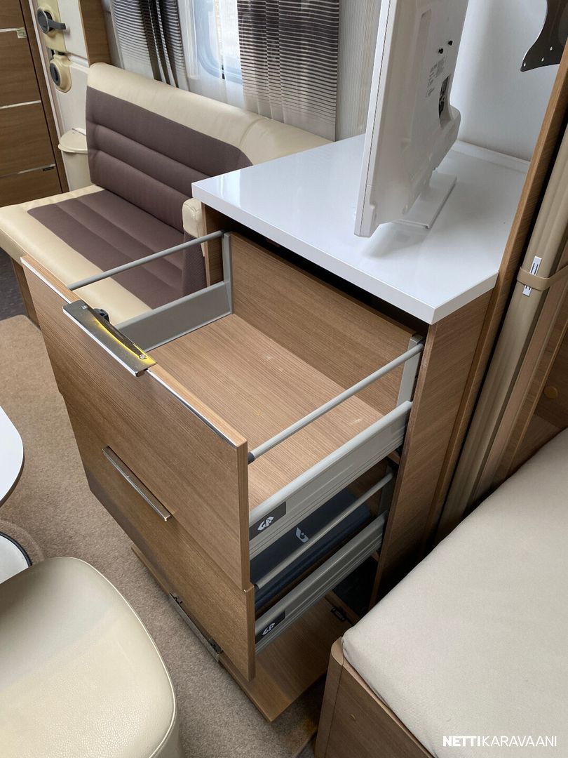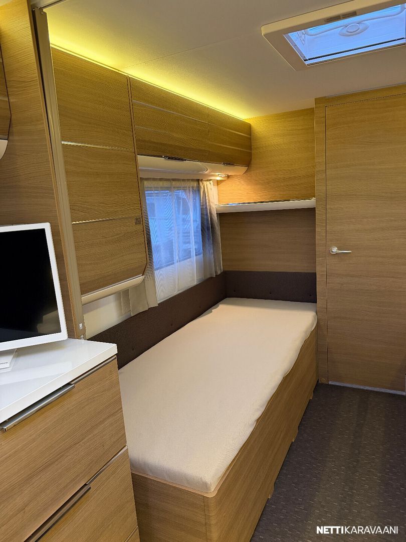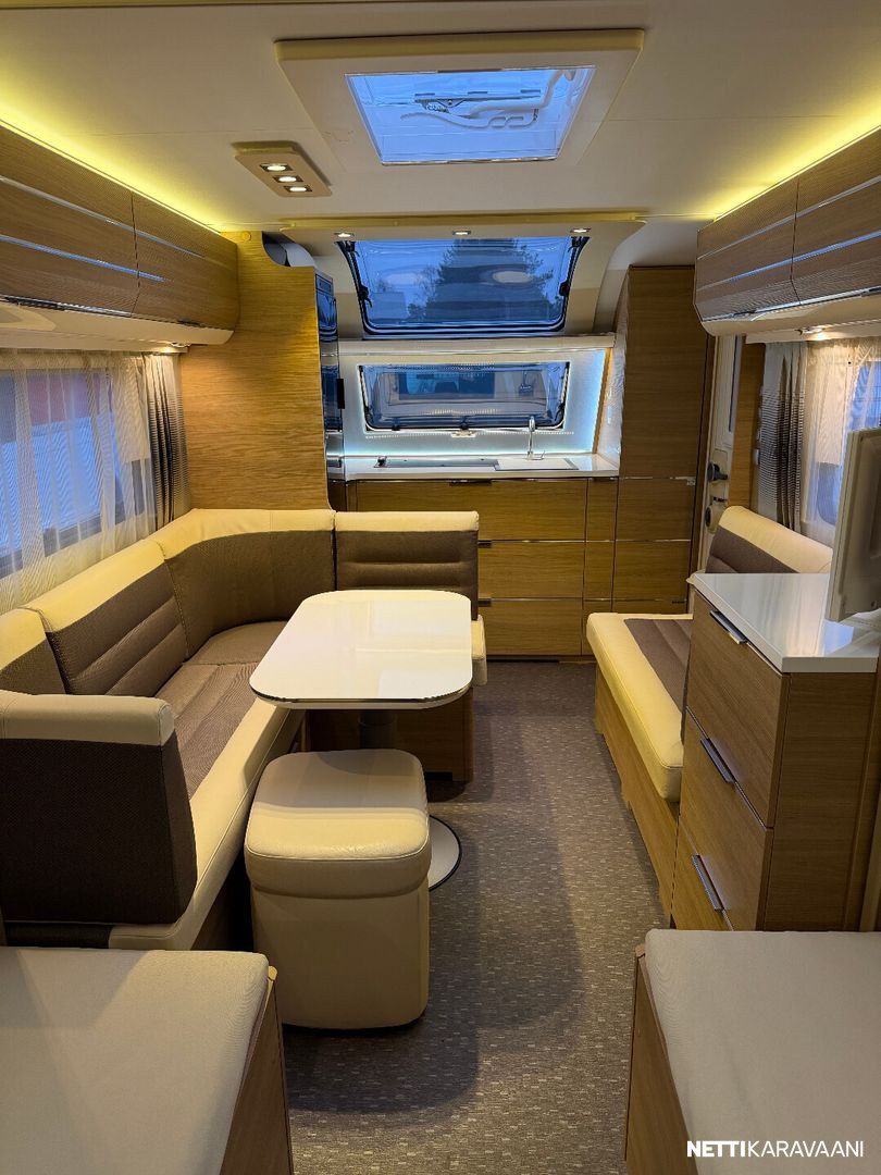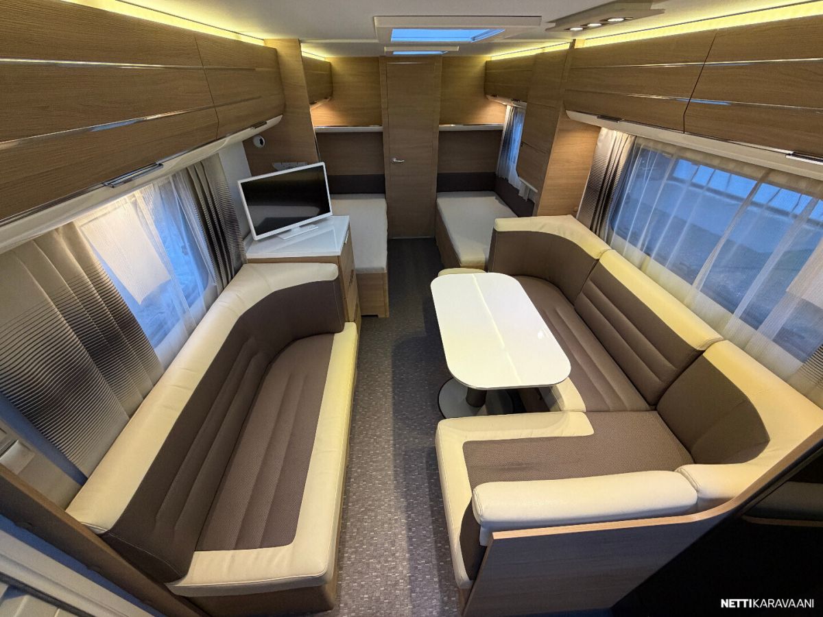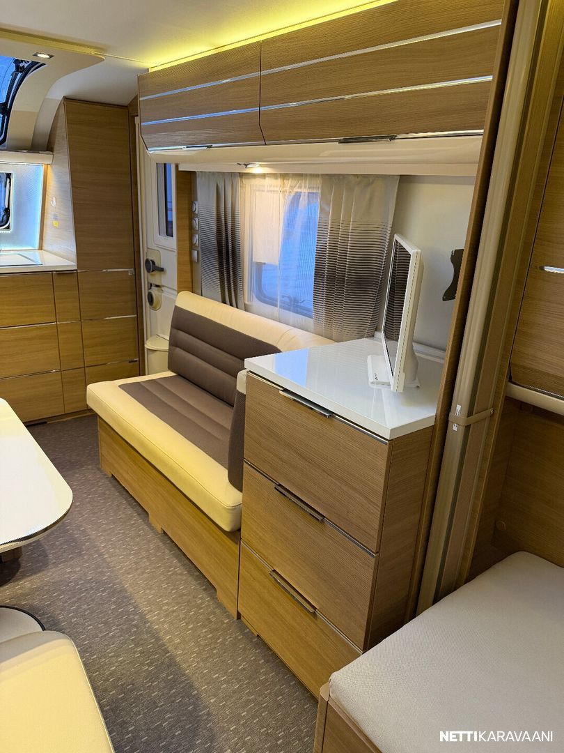 Alde-nestekeskuslämmitys, sähköpatruuna, sähkö lattialämmitys, lämmin vesi, iso jää-/pakastinkaappi, mikro, kiinteä raikasvesisäiliö, takakylppäri, kasettiverhot, kirkas kattoluukku, akku-/laturivarustus, tv- antenni, radio/cd, mattosarja, jalkarahi, kitkavetopää, vetoaisan suojamuovi, hyttysverkko-ovi, alumiinivanteet, kaasupullo, ym...