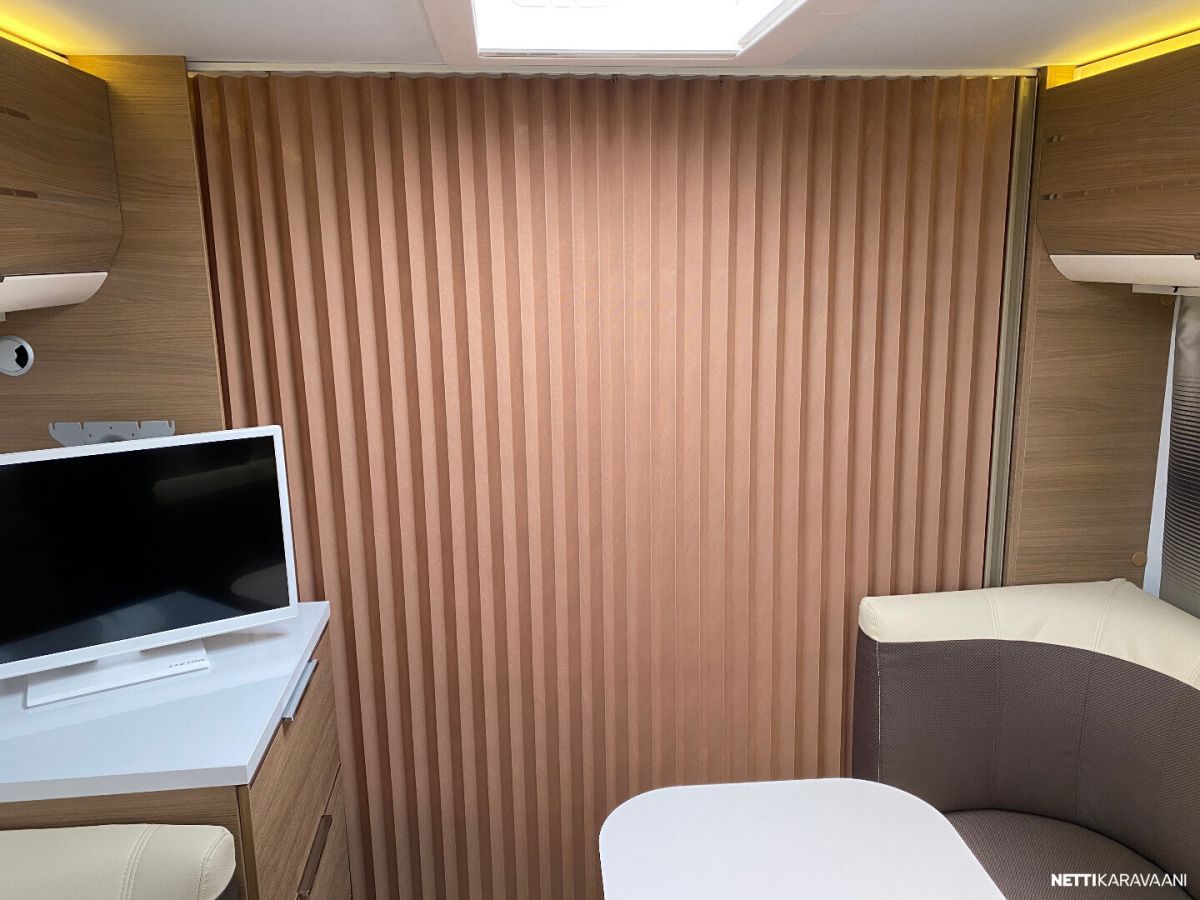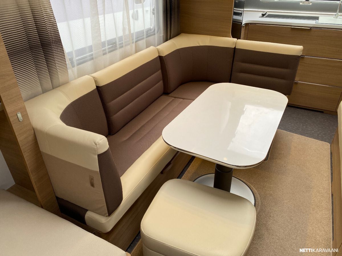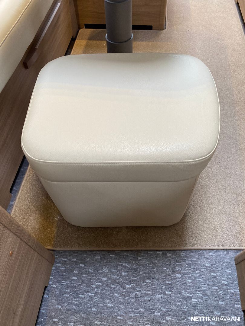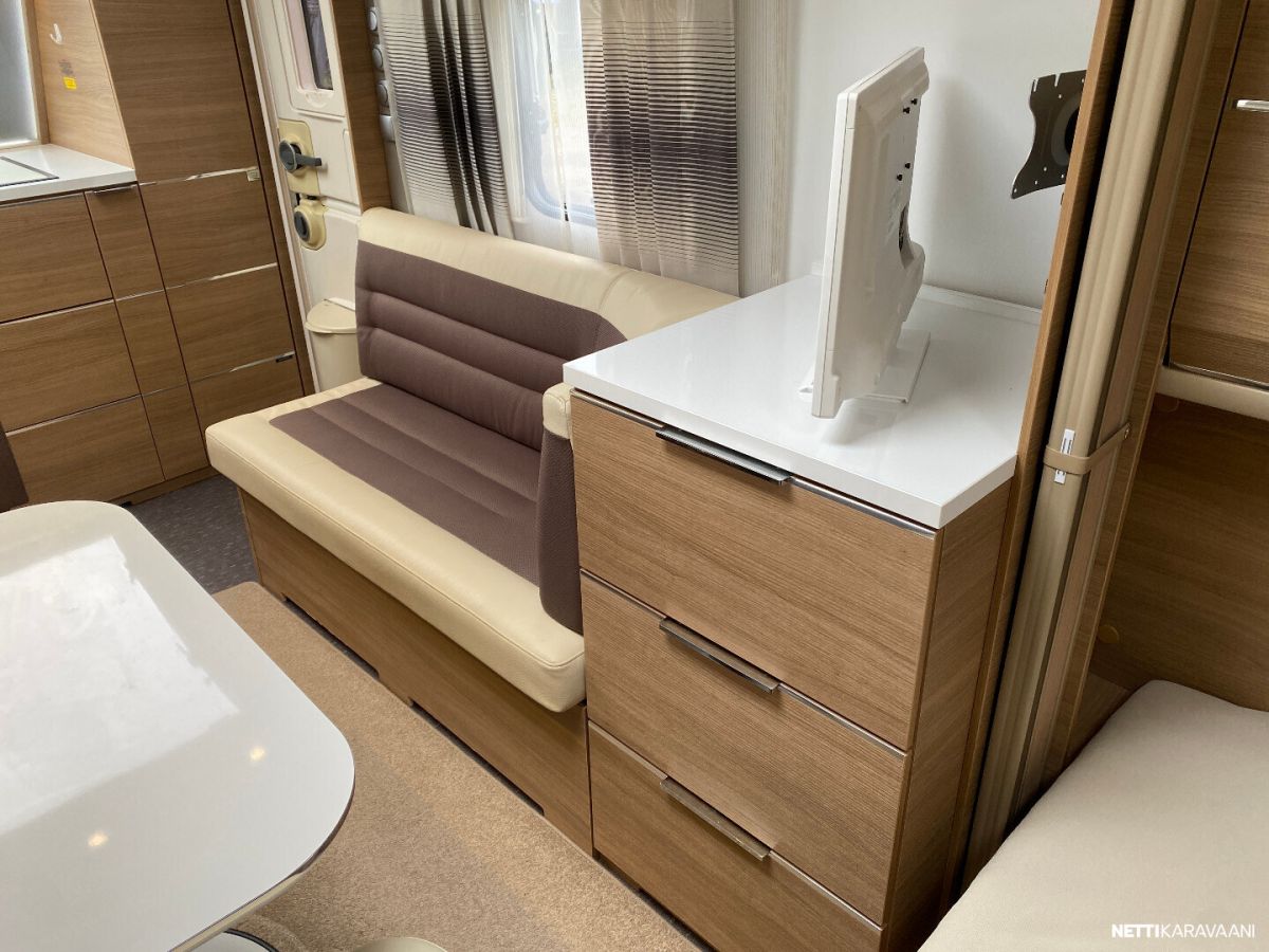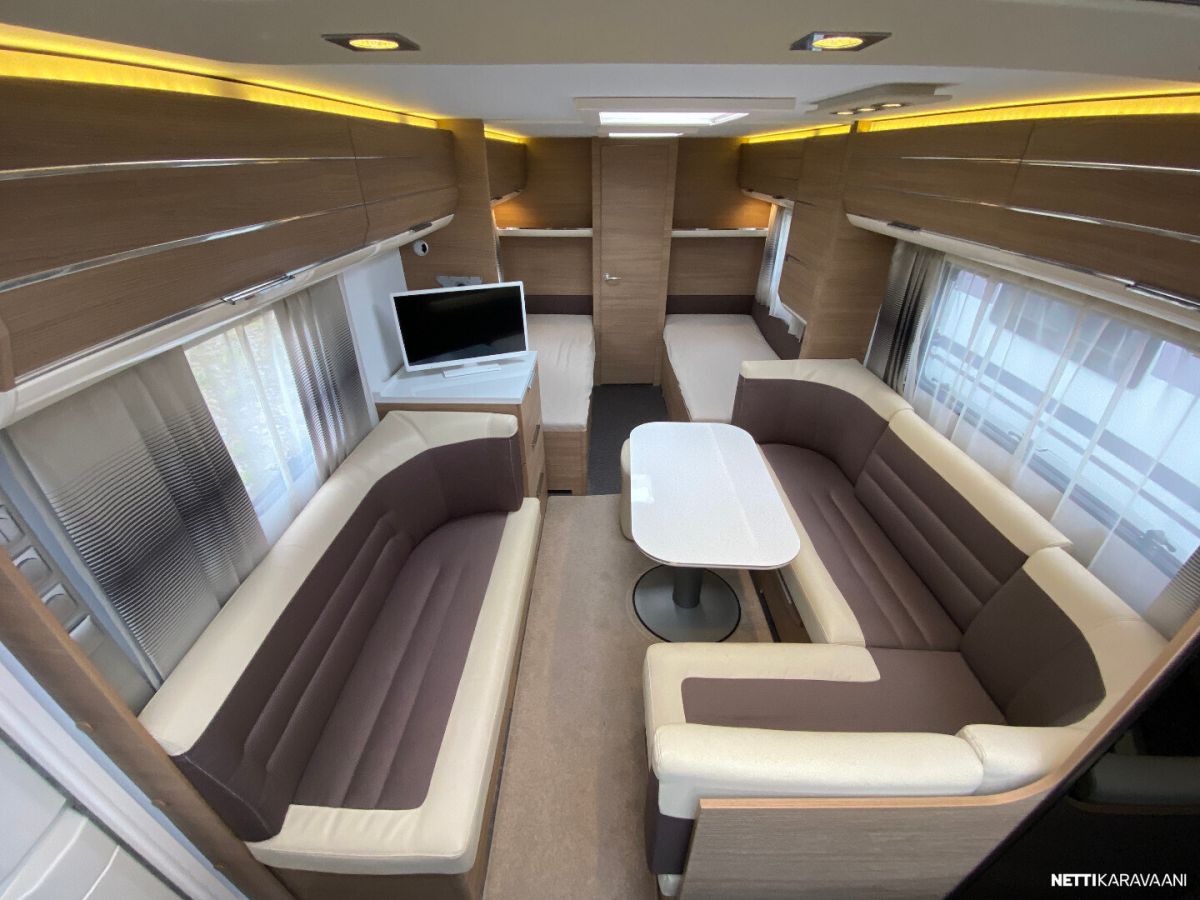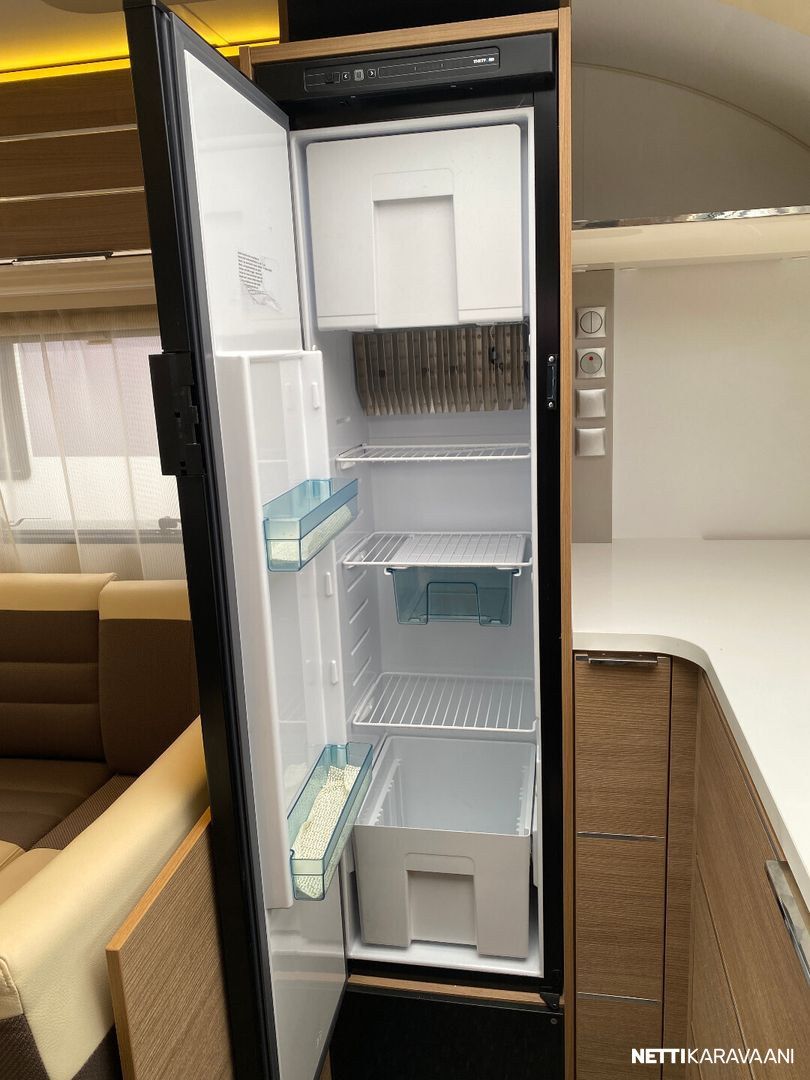 Alde-nestekeskuslämmitys, sähköpatruuna, sähkö lattialämmitys, lämmin vesi, iso jää-/pakastinkaappi, mikro, kiinteä raikasvesisäiliö, takakylppäri, kasettiverhot, kirkas kattoluukku, akku-/laturivarustus, tv- antenni, radio/cd, mattosarja, jalkarahi, kitkavetopää, vetoaisan suojamuovi, hyttysverkko-ovi, alumiinivanteet, kaasupullo, ym...