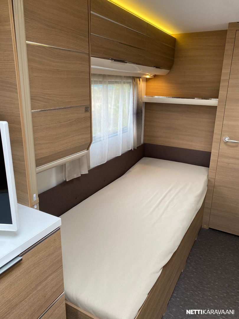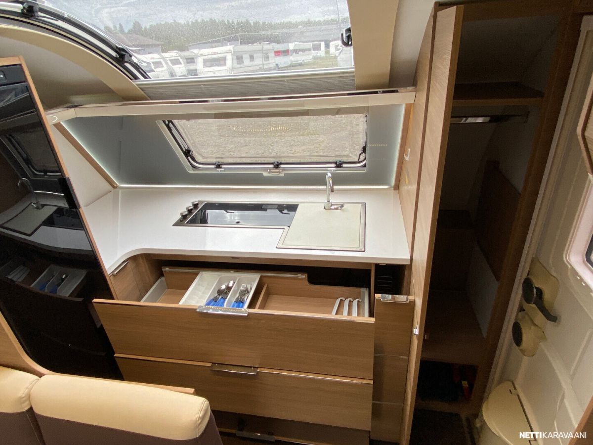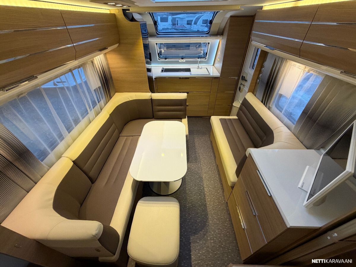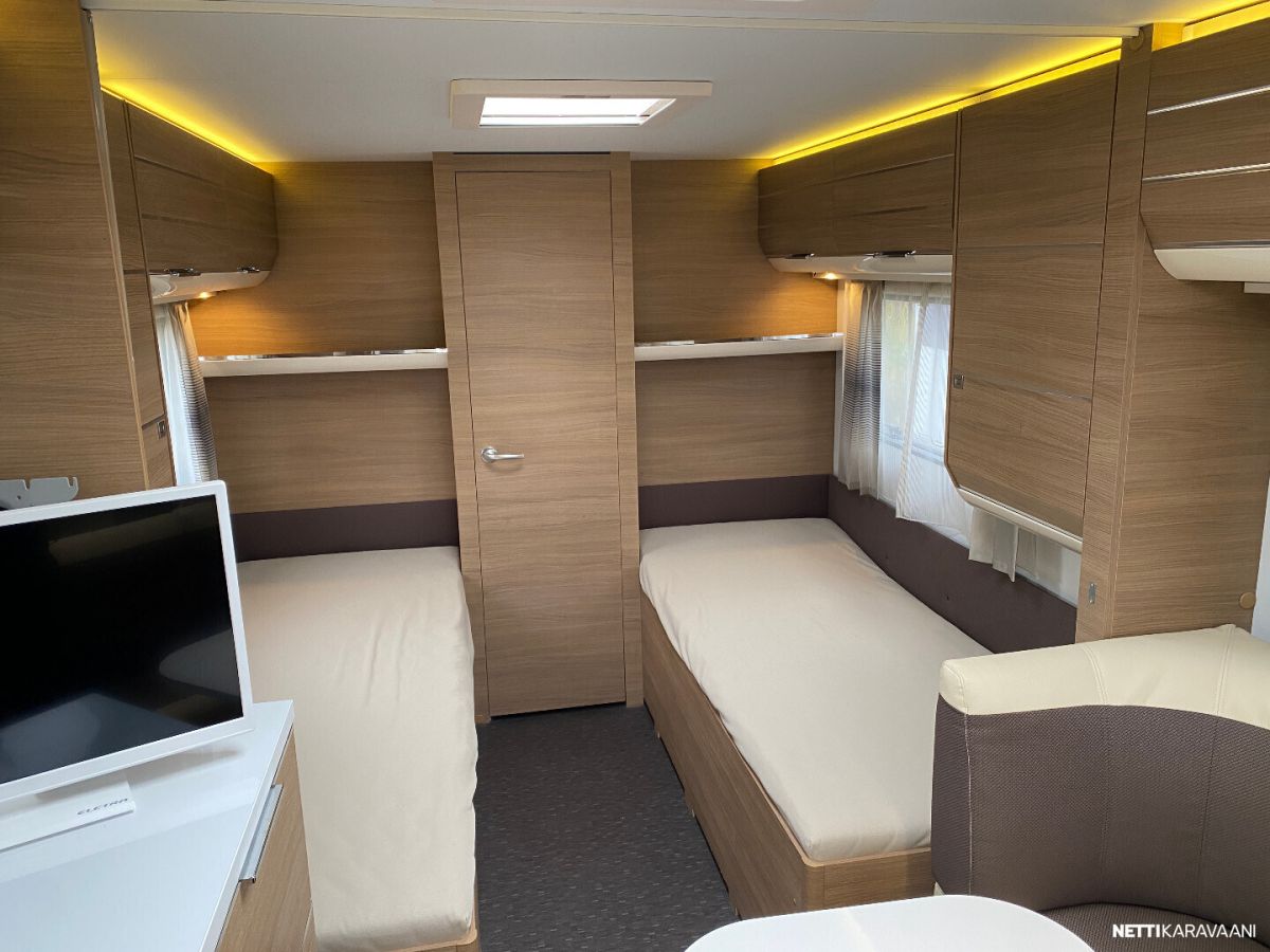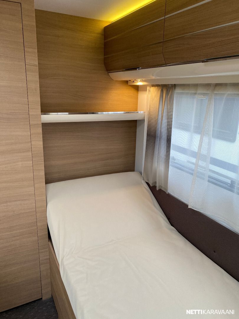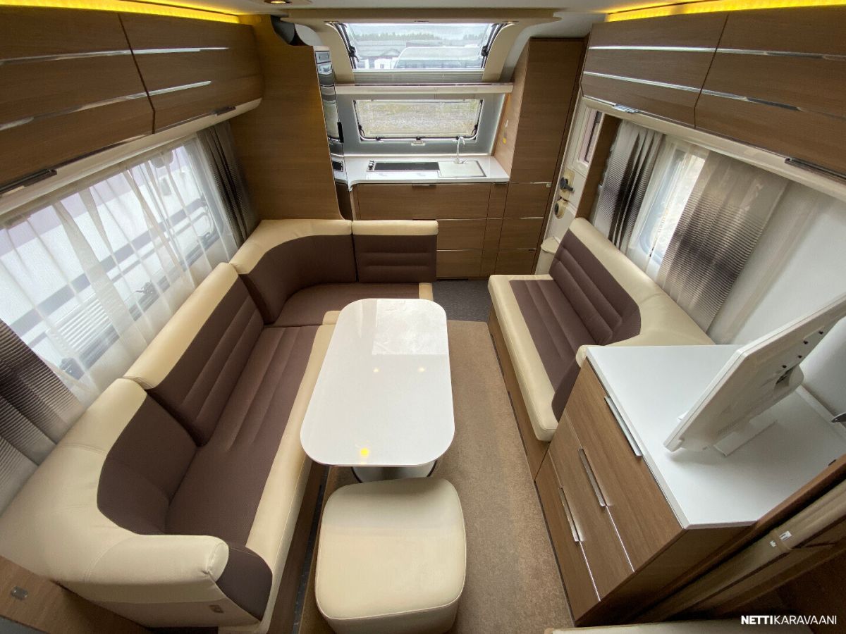 Alde-nestekeskuslämmitys, sähköpatruuna, sähkö lattialämmitys, lämmin vesi, iso jää-/pakastinkaappi, mikro, kiinteä raikasvesisäiliö, takakylppäri, kasettiverhot, kirkas kattoluukku, akku-/laturivarustus, tv- antenni, radio/cd, mattosarja, jalkarahi, kitkavetopää, vetoaisan suojamuovi, hyttysverkko-ovi, alumiinivanteet, kaasupullo, ym...