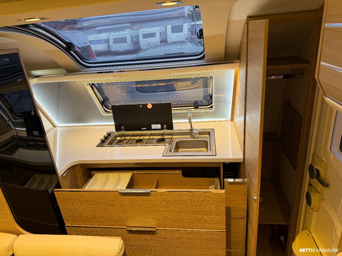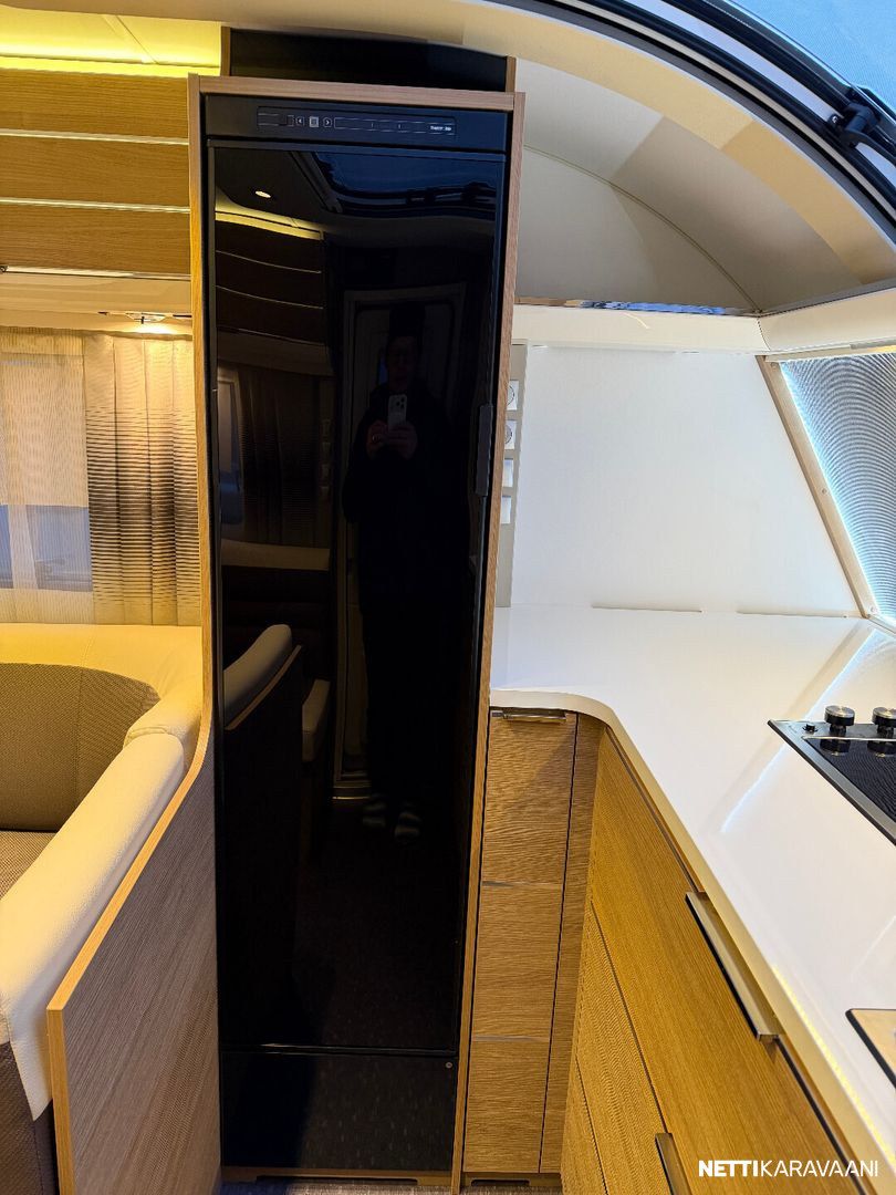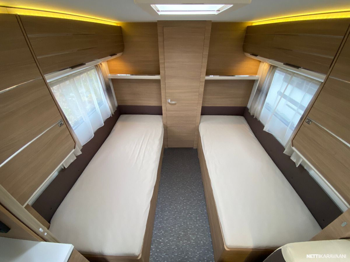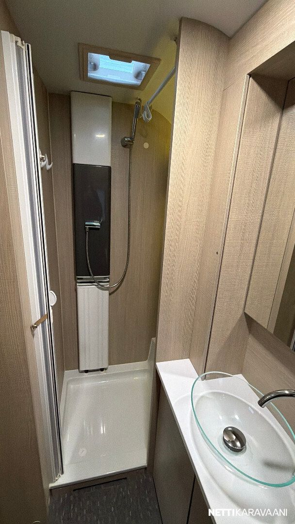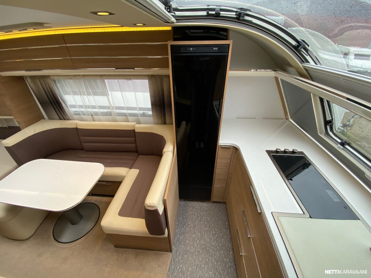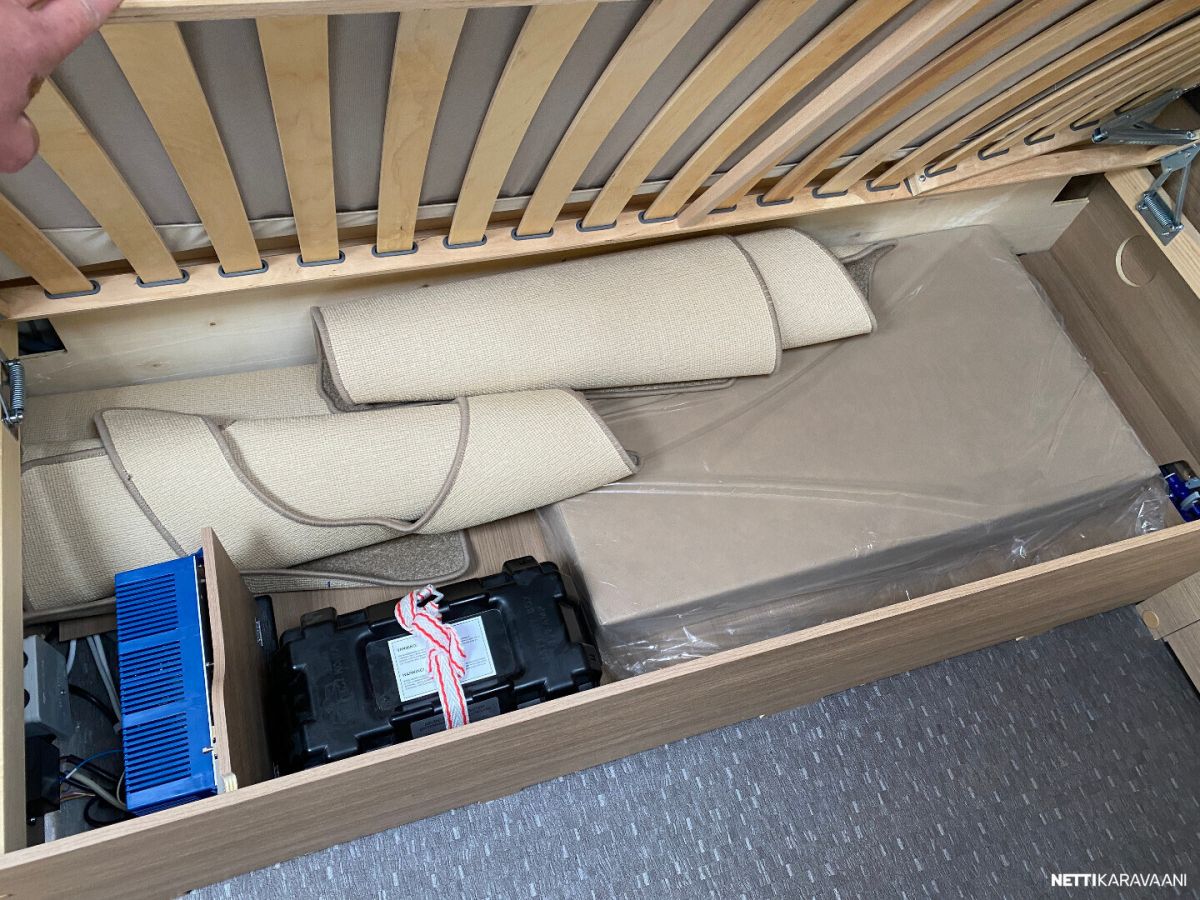 Alde-nestekeskuslämmitys, sähköpatruuna, sähkö lattialämmitys, lämmin vesi, iso jää-/pakastinkaappi, mikro, kiinteä raikasvesisäiliö, takakylppäri, kasettiverhot, kirkas kattoluukku, akku-/laturivarustus, tv- antenni, radio/cd, mattosarja, jalkarahi, kitkavetopää, vetoaisan suojamuovi, hyttysverkko-ovi, alumiinivanteet, kaasupullo, ym...