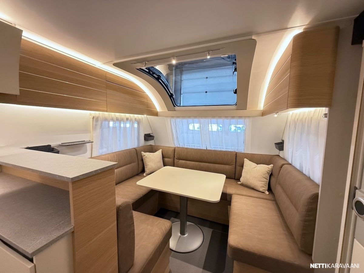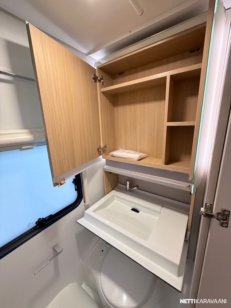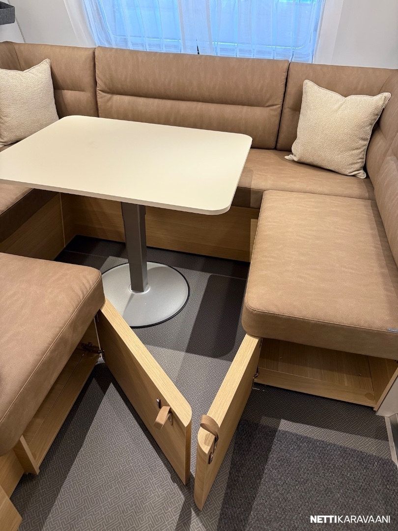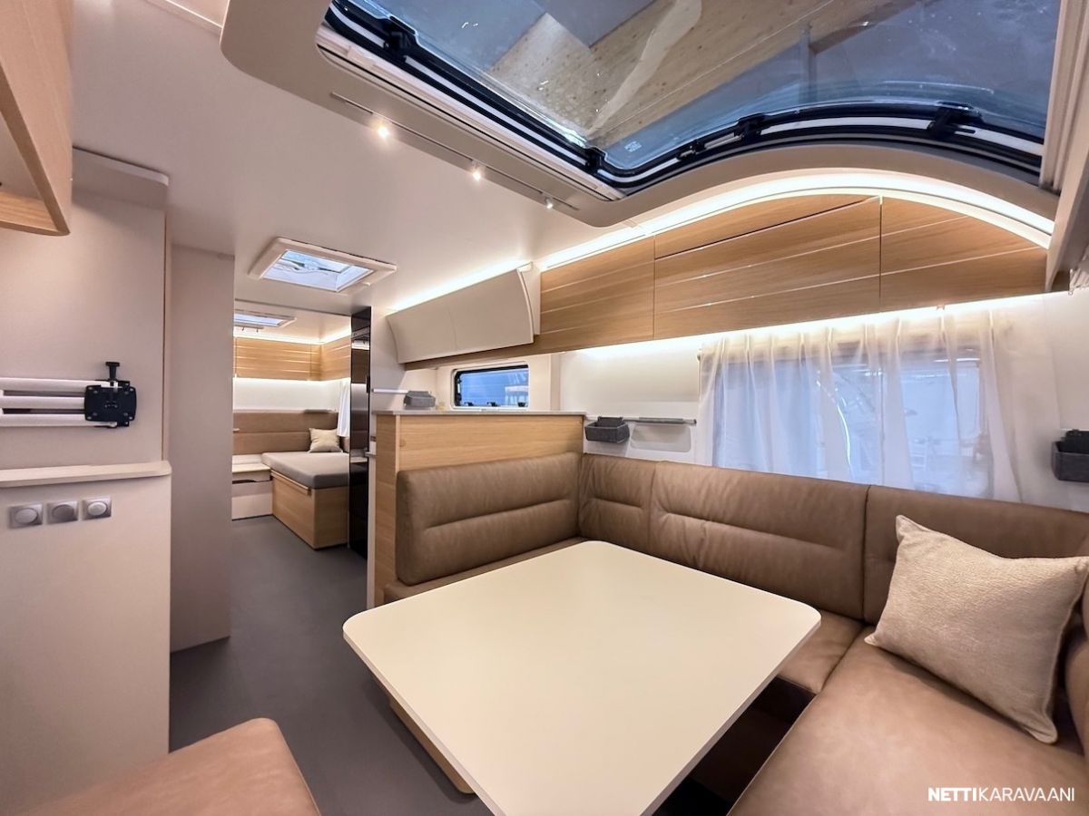 Plus paketti (sis. alumiinivanteet, hyttysverkko-ovi, TV-teline, teleskooppi pöydänjalka, MidiHeki -kattoikkuna), mattosarja, mikrouuni yläkaapissa, helppohoitoinen Morgan -keinonahkaverhoilu, tehokas 100 AH AGM -akku.
