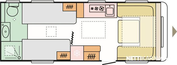 Jääkaappi, Kaasu-uuni, Kasetti WC, Kasettiverhot, Lattiamatot asunto-osassa, Liesi, Lämminvesiboileri, Mikroaaltouuni, Pakastelokero, Pesuallas, Bluetooth, Alde, Erikoisvanteet, Eristetty harmaavesisäiliö, Kattoluukku, Lattialämmitys, Sähköpatruuna, Tukijalat, Suihku