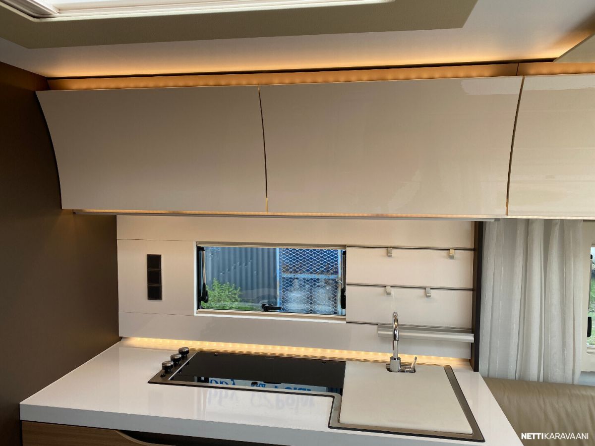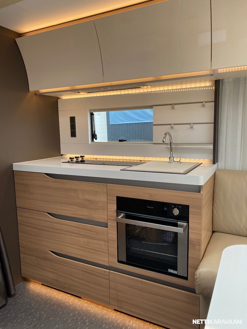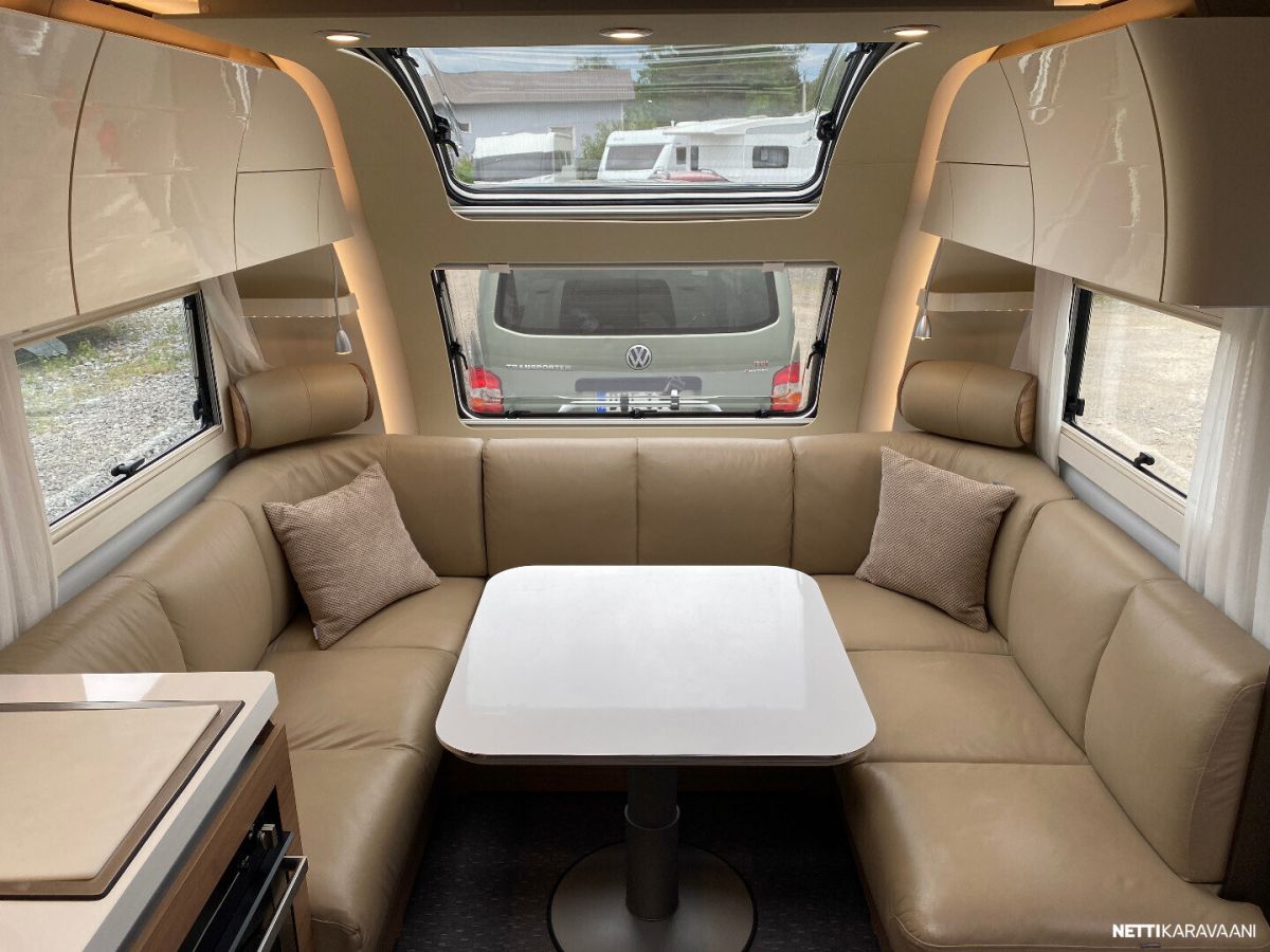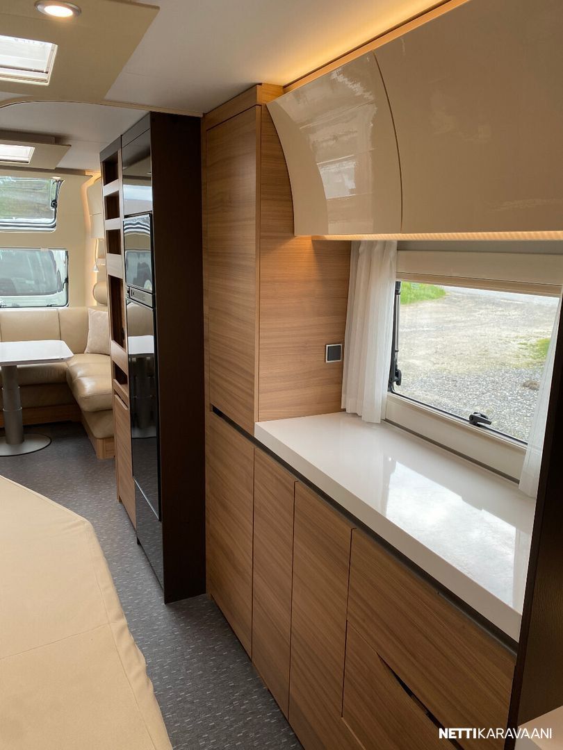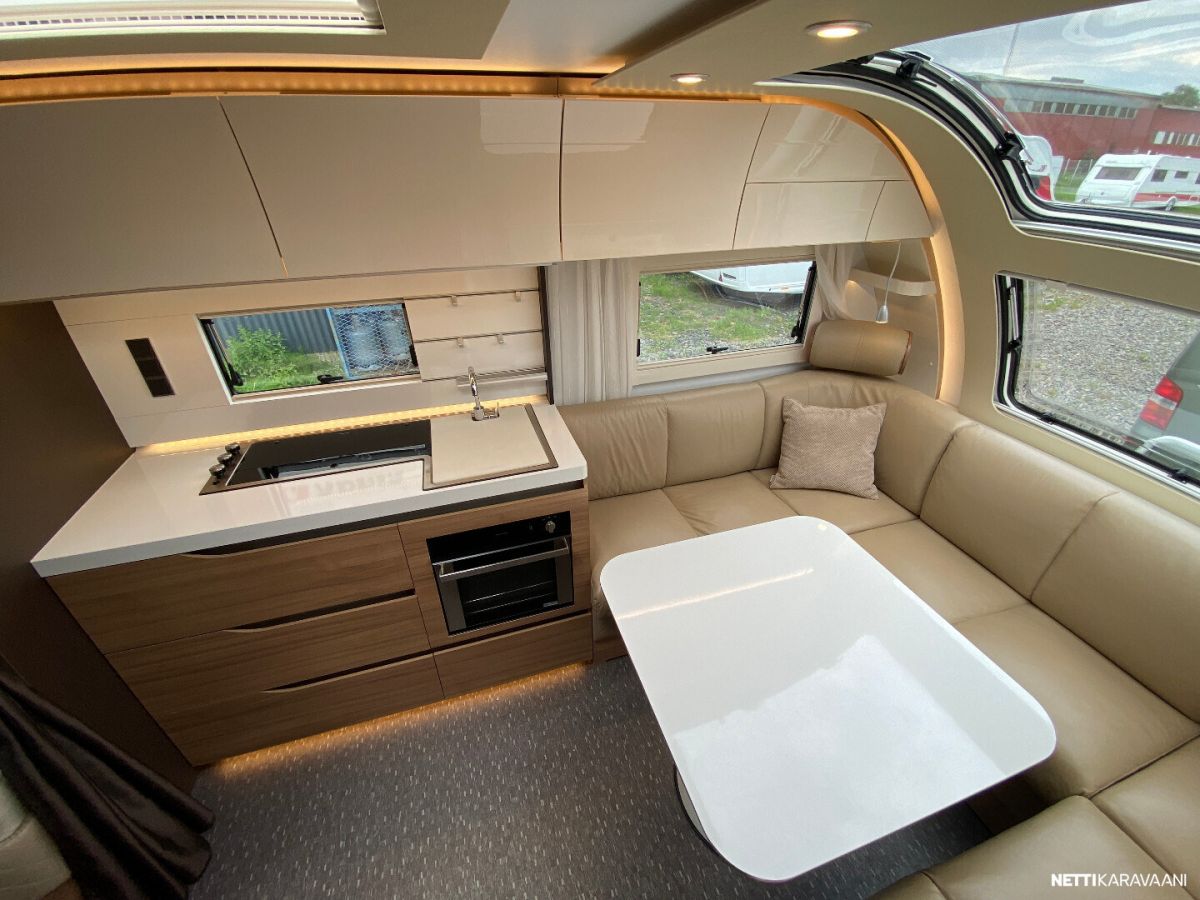 Nahkaverhoilu, Alde-nestekeskuslämmitys, nestekiertoinen lattialämmitys, sähköpatruuna, lämmin vesi, suihku, liesi uuni,, liesituuletin, iso jääkaappi/pakastin, mikro, kiinteä raikasvesisäiliö, kiinteä harmaavesisäiliö, niskatyynyt istuinruhmässä, kolmikerrosvuode, kasetti-wc, kasettiverhot, bluetooth , akku-/ laturivarustus, telttapalvelu, tv-teline, suksiluukku x 2, tavaraluukku, kitkavetopää, hyttysovi, alu-vanteet, pyöräteline edessä, aurinkopaneeli, kaasupullo...
