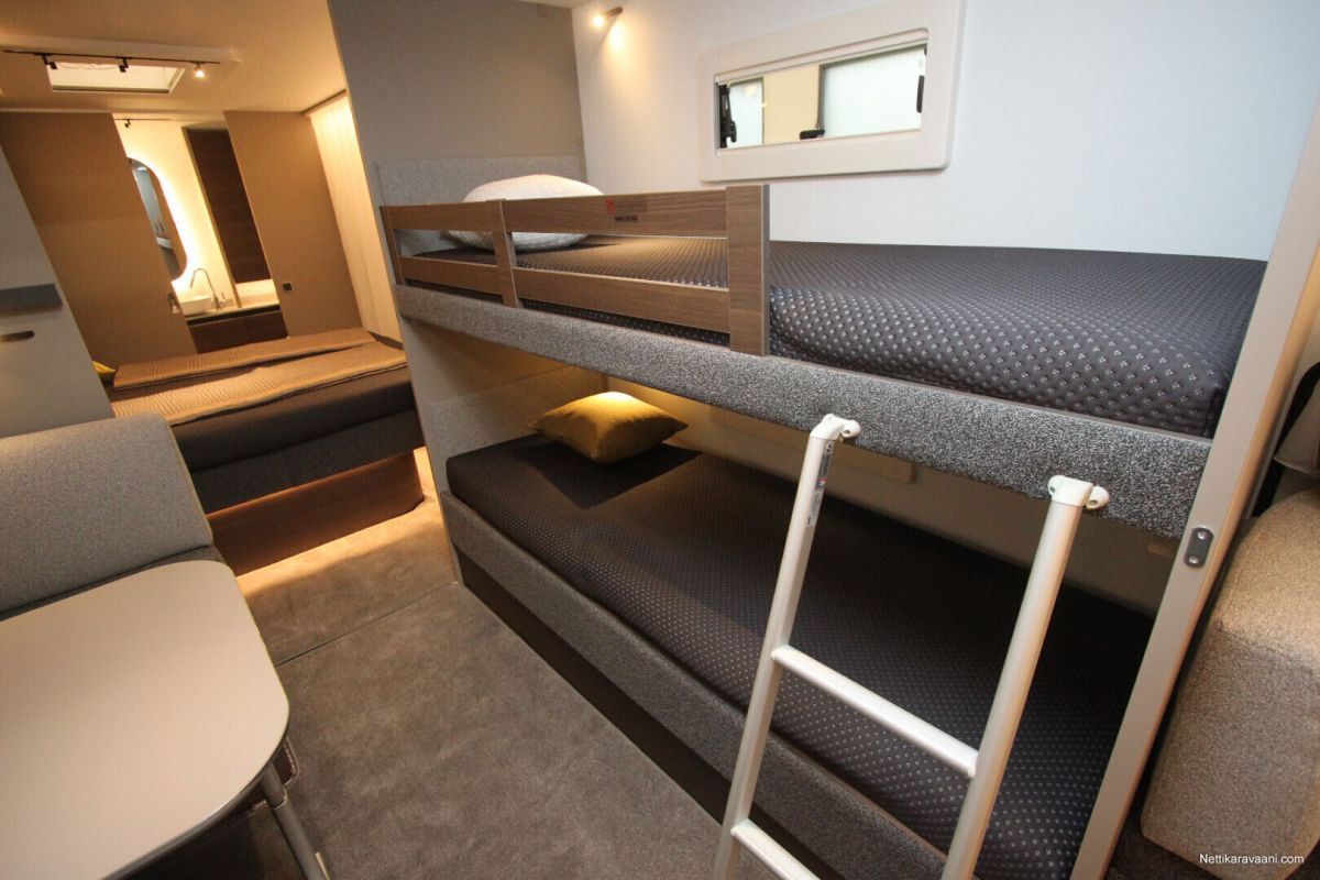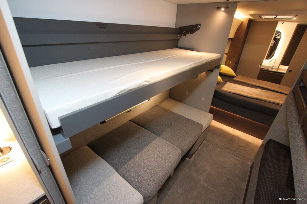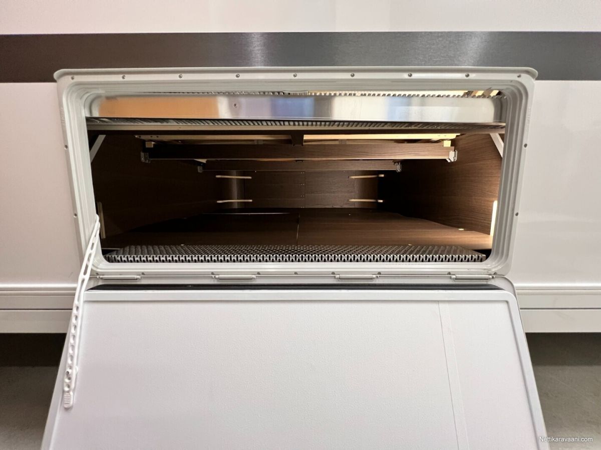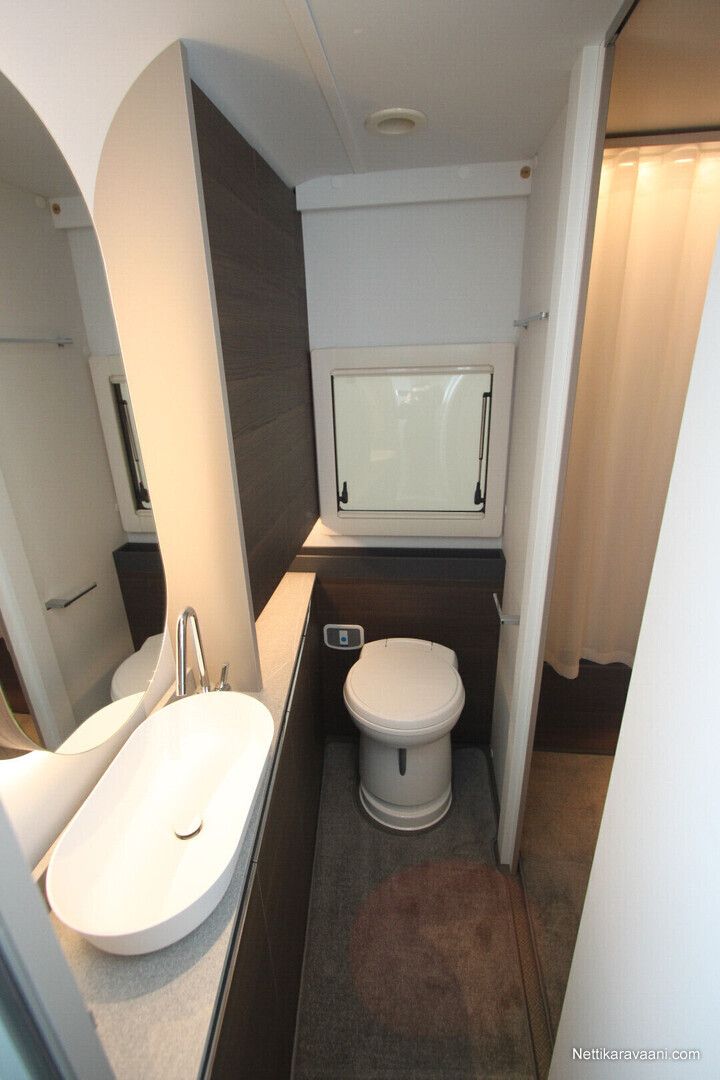 Jääkaappi, Kaasu-uuni, Kasetti WC, Kasettiverhot, Lattiamatot asunto-osassa, Liesi, Lämminvesiboileri, Mikroaaltouuni, Pakastelokero, Pesuallas, Suihku, Alde, Erikoisvanteet, Eristetty harmaavesisäiliö, Huoltokirja, Kattoluukku, Lattialämmitys, Sähköpatruuna, Tukijalat