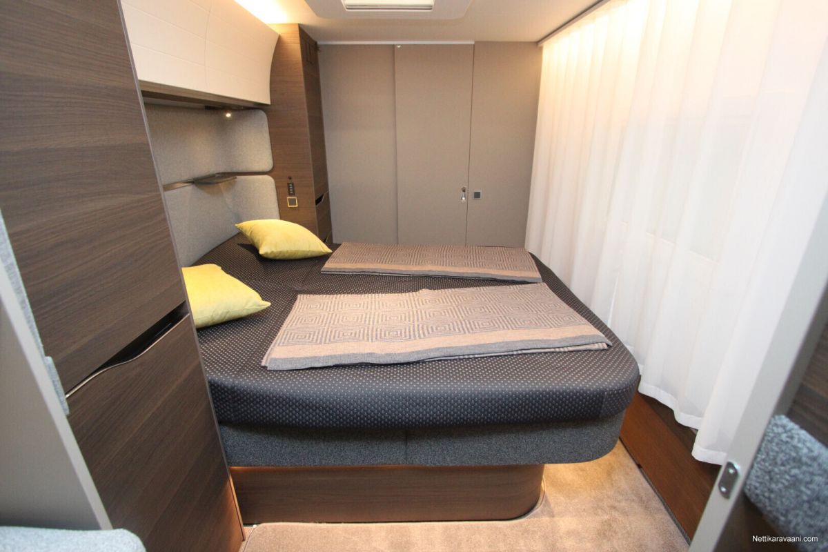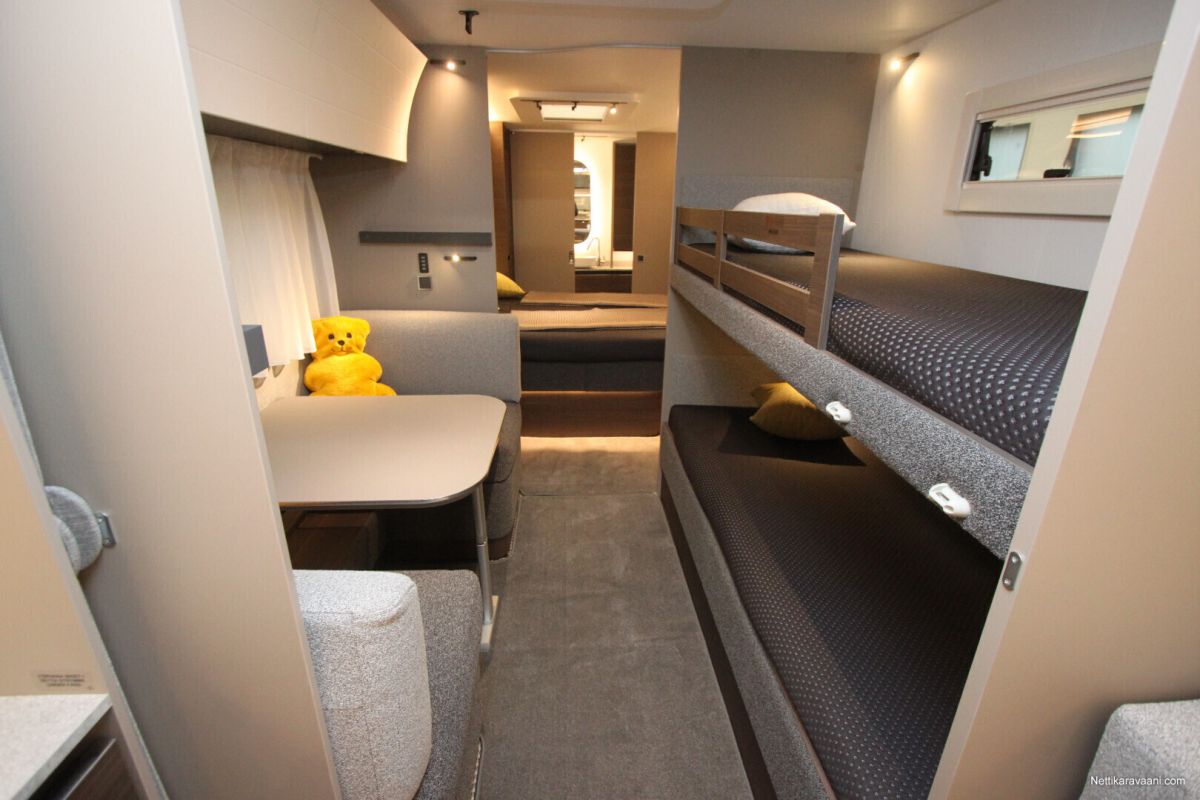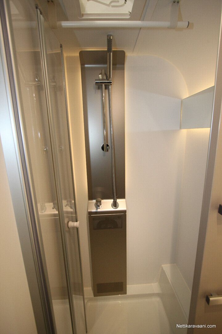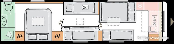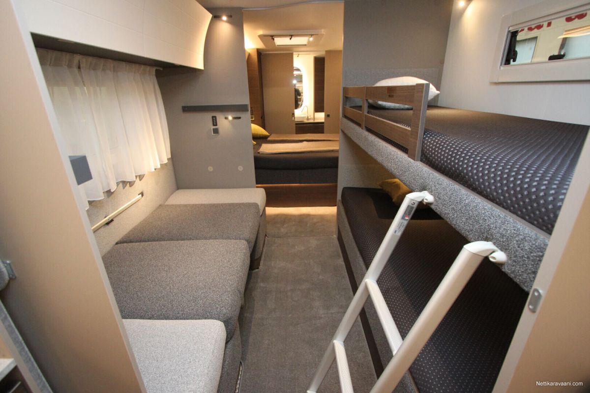 Jääkaappi, Kaasu-uuni, Kasetti WC, Kasettiverhot, Lattiamatot asunto-osassa, Liesi, Lämminvesiboileri, Mikroaaltouuni, Pakastelokero, Pesuallas, Suihku, Alde, Erikoisvanteet, Eristetty harmaavesisäiliö, Huoltokirja, Kattoluukku, Lattialämmitys, Sähköpatruuna, Tukijalat