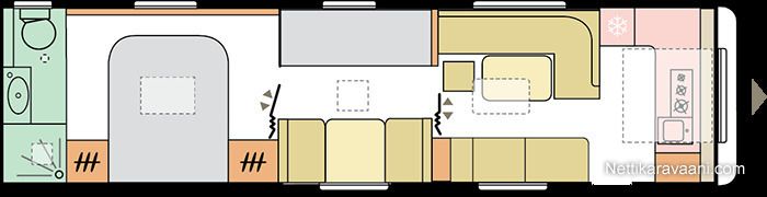 Tässä vaunussa erittäin kätevät säilitystilat henkilökohtaisille tavaroille, istuimien alla säilytystilaa ja myöskin kaappi sekä henkari tilaa kiitettävästi.