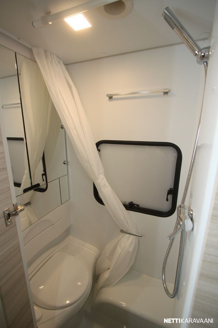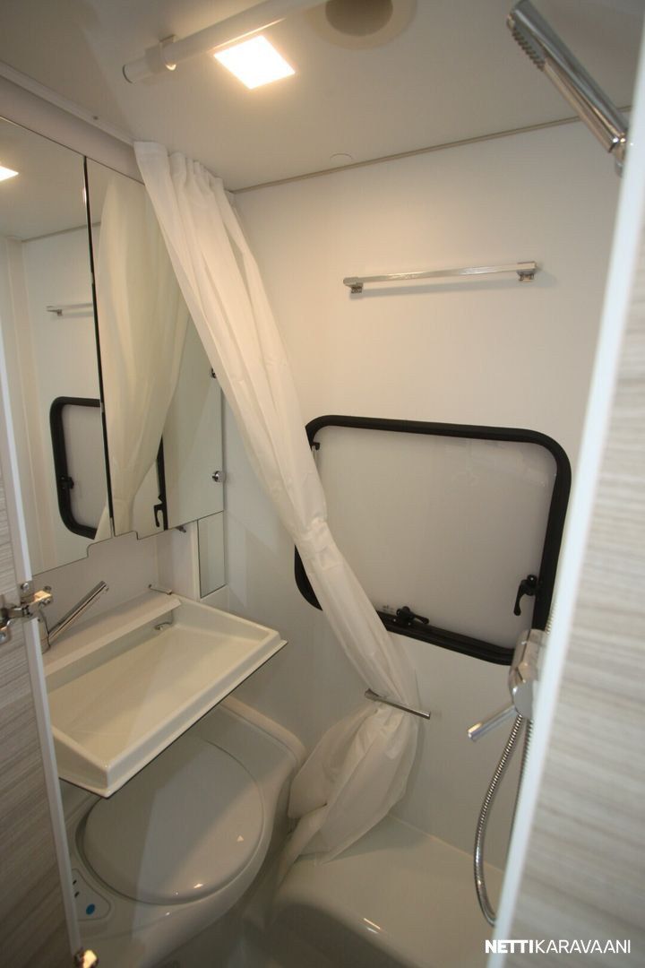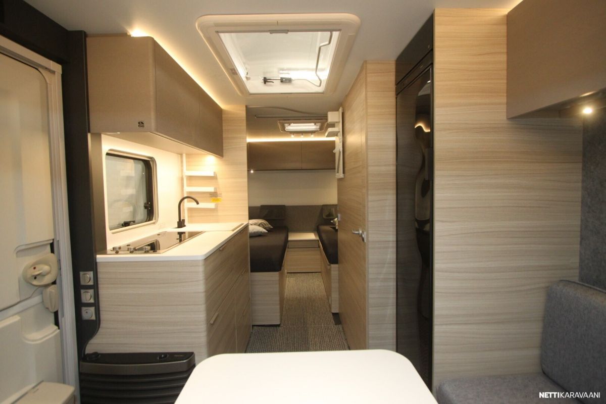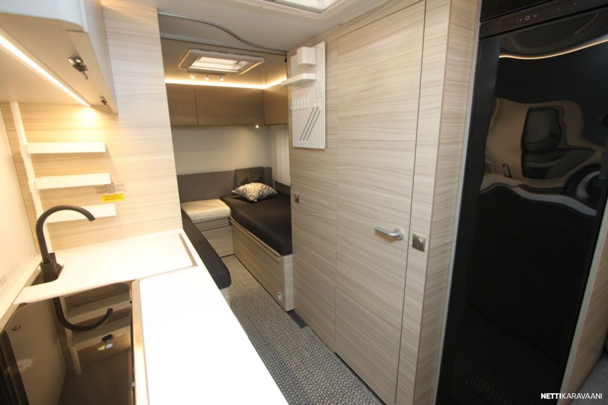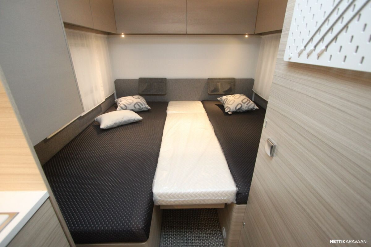-Pluspaketti joka sisältää: Truma UltraHeat sähkölämmitys, Aluvanteet, TV-Teline, Hyttysverkko oven yläosassa.