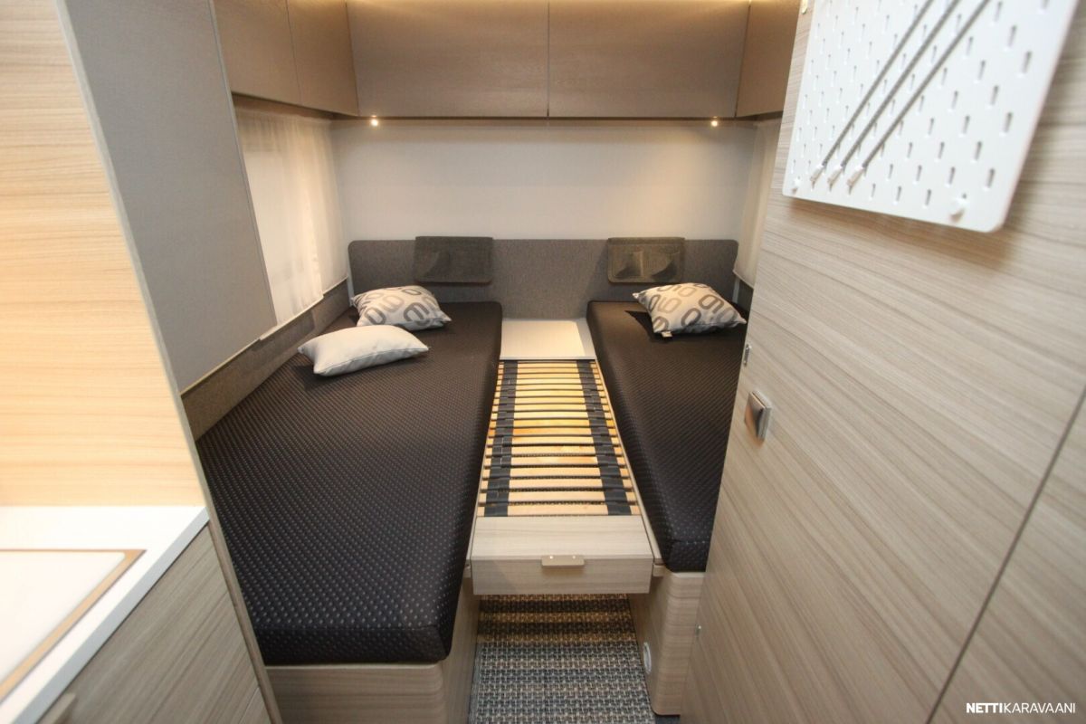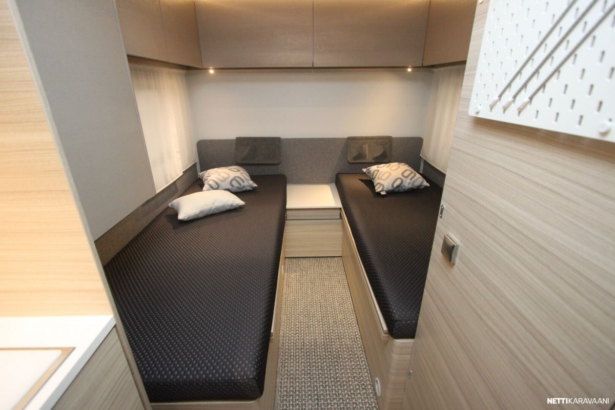 Vaunun taka löytyy mukavat ja käytännölliset erillisvuoteet jotka helposti saat yhdistettyä isoksi vuoteeksi. Eteen saa myös sijattua vuoteen kahdelle.