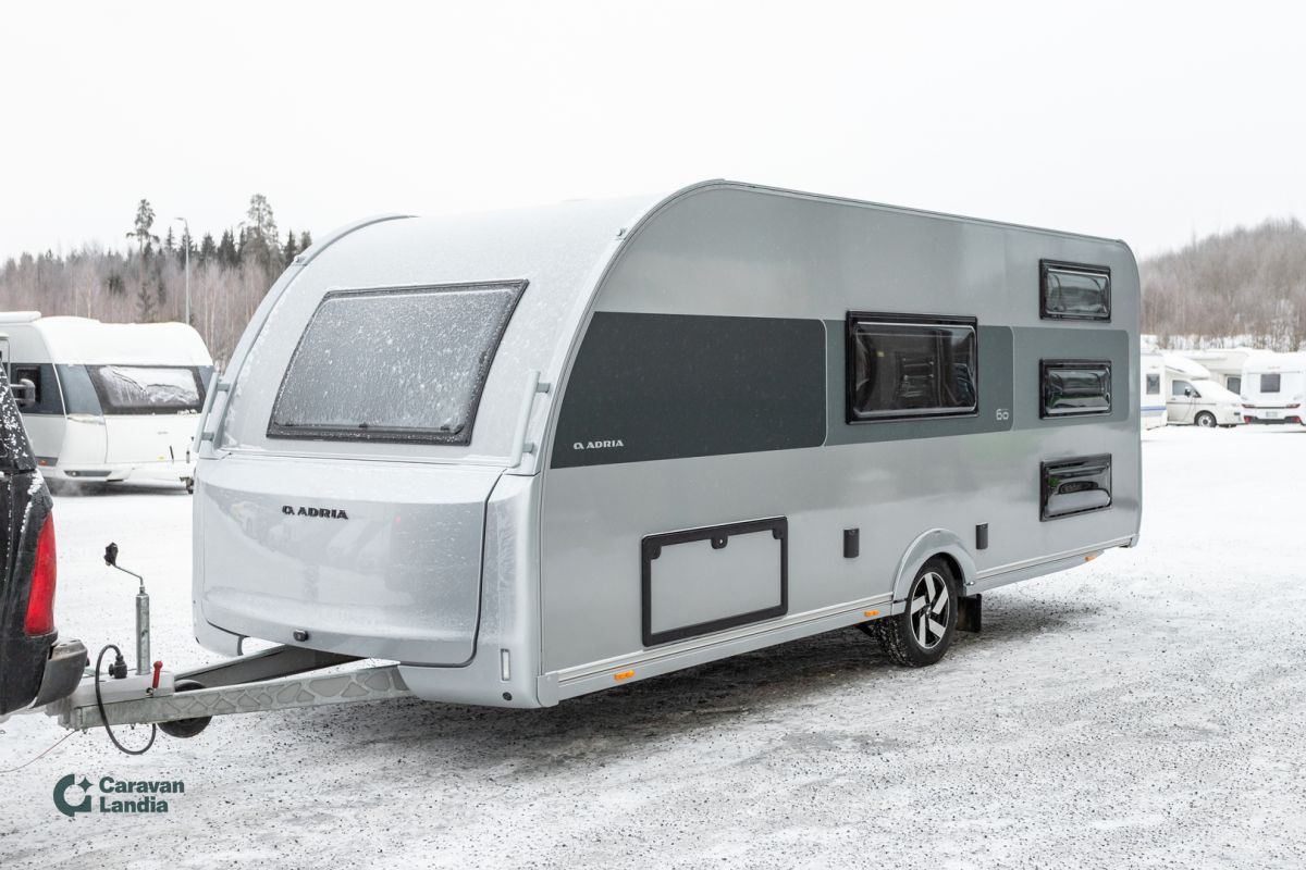 Adria 60 Years -erikoismallisto. Suunniteltu ensiluokkaisista materiaaleista, uudistetuilla muotoiluyksityiskohdilla ja lisäominaisuuksilla. Tässä vaunussa varusteina mm: - AL-KO VARIO X alusta - Vahvistetut tukijalat - Silver polyesteri rakenne - Uusi 60Y graafinen design - Adria 15' alumiinivanteet - 2-osainen ulko-ovi ilman ikkunaa - 1-osainen hyttysovi - Tuplalasinen etuikkuna - Kattoikkuna Light Heki 2 - Vakaaja - Roiskeläpät - Iskunvaimentimet - Pyöräkotelon levike - Varapyörä - Irtorappu - Teleskooppijalalla varustettu pöytä - Uusi 60Y-verhoilu - Pimennysverhot ja hyttysverho ikkunoissa (ei wc) - EVOPORE patja - Truma lämmitin - Kaasusuodatin Truma S3004 - Sähkötoiminen lattialämmitys - Säädettävä valaistusjärjestelmä LED - TV-teline - Akkulaturi akkukotelolla - Absorptiojääkaappi - Ikkunakehys 60Y logolla - Tiskialtaan kans-60Y - Tiskiteline - Harmaavesisäiliö - 3-kerrosvuode - Mattosarja, Alv-vähennyskelpoinen