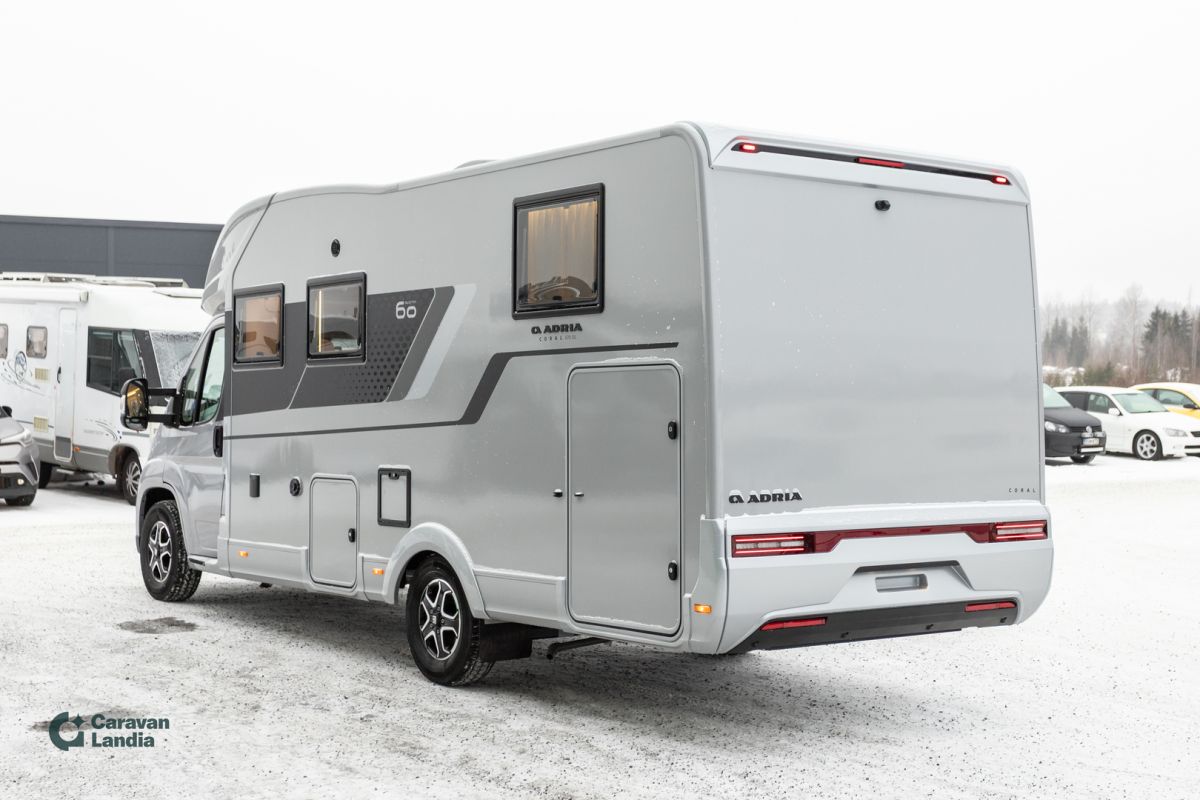 Adria 60 Years -erikoismallisto. Suunniteltu ensiluokkaisista materiaaleista, uudistetuilla muotoiluyksityiskohdilla ja lisäominaisuuksilla 60Y Edition varusteet: ALUSTA 140Hv moottori, 8-portainen automaattivaihteisto, Alumiinivannepaketti 1 (16” Aluvanteet, Nahkainenohjauspyörä, Hopeinenkoriste), Monitoimiohjauspyör, antenni sivupeilissä, Safety-Paketti, Adaptiivinenvakionopeuden säädin, Zenecsoitin peruutuskameralla ULKOPUOLI Hopeinen lasikuitukori(GFK), 60Y teippaus, LED takavalotAdriadesign, Panoramakattoikkuna ohjaamossa, Ulko-oviikkunalla, roskakorilla ja hyttysovella, Astin ohjaamoon, Roiskeläpättakana, Markiisi, Alv-vähennyskelpoinen