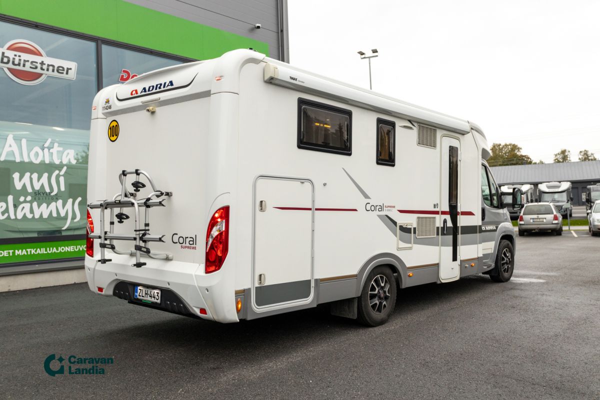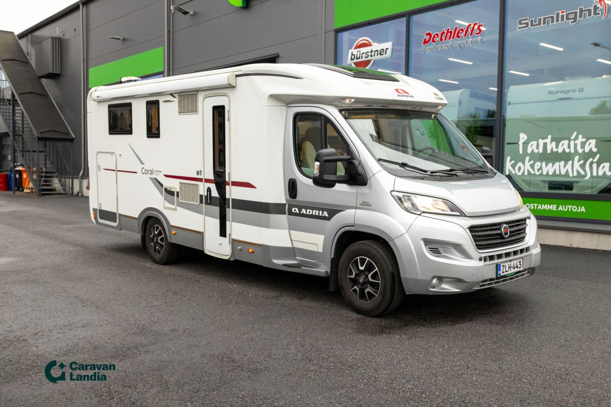 TÄHÄN AUTOON 1,99 % KORKOTARJOUS + 100 € POLTTOAINELAHJAKORTTI JOKAISELTA ALKAVALTA 10 000 €:LTA - Adria Coral S690 SC Supreme on enemmän kuin ajoneuvo – se on lupaus vapaudesta ja kodin lämmöstä, minne ikinä matkasi viekin! Tämä puoli-integroitu matkailuauto on suunniteltu tarjoamaan ensiluokkaista luksusta ja tilaa, jotka tekevät jokaisesta matkasta ainutlaatuisen kokemuksen. Tämän matkailuauton sydän on sen ylellinen saarekevuode takana, joka takaa rauhalliset yöunet ja helpottaa liikkumista. Laadukas Supreme-varustetaso takaa korkealuokkaiset materiaalit ja tyylikkään sisustuksen. Talven kylmyyskaan ei haittaa, sillä Alde-nestekiertolämmitys pitää huolen mukavasta lämmöstä. Tilaa tavaroille ja varusteille löytyy reilusti suuresta takatallista. Adria Coral S690 SC Supreme on täydellinen valinta sinulle, joka haluat nauttia matkailusta ilman kompromisseja. Tämä on ajoneuvo, joka tekee matkailusta elämäntavan. Kaikkiin vuodenaikoihin Pariskunnille LED-päiväajovalot Lohkolämmitin Erikoisvanteet Markiisi Pyöräteline Tukijalat Hyttysverkko ovi Ohjaamon pimennysverhot Kasettiverhot Multimediakeskus Peruutuskamera Parkkitutka Navigointijärjestelmä Ilmastointi ajotilassa Keskuslukitus Puolinahkaverhoilu Sähkökäyttöiset ikkunat Sähköpeilit Turbo Vakionopeudensäädin SkyRoof L-istuinryhmä Sivusohva Iso kattoikkuna Nestekiertolämmitys Alde Sähköpatruuna Lämminvesiboileri Lämmitetty ja eristetty harmaavesijärjestelmä Lämmönvaihdin Nestekiertoinen lattialämmitys L-keittiö Liesituuletin Jääkaappipakastin Kaasuliesi Kaasu-uuni Lattiamatot asunto-osassa Saarekevuode Lisävuode istuinryhmästä Kasetti WC Pesuallas Erillinen suihku Painevesijärjestelmä Takatalli TV-antenni tai lautasantenni Meiltä voit ostaa etänä vaikka kotisohvaltasi! Kokeile kuinka helppoa ja vaivatonta matkailuajoneuvon ostaminen on. Tähän ajoneuvoon 1,99 % korkotarjous (Max. rahoitettava summa 80 000 €) + polttoainelahjakortti