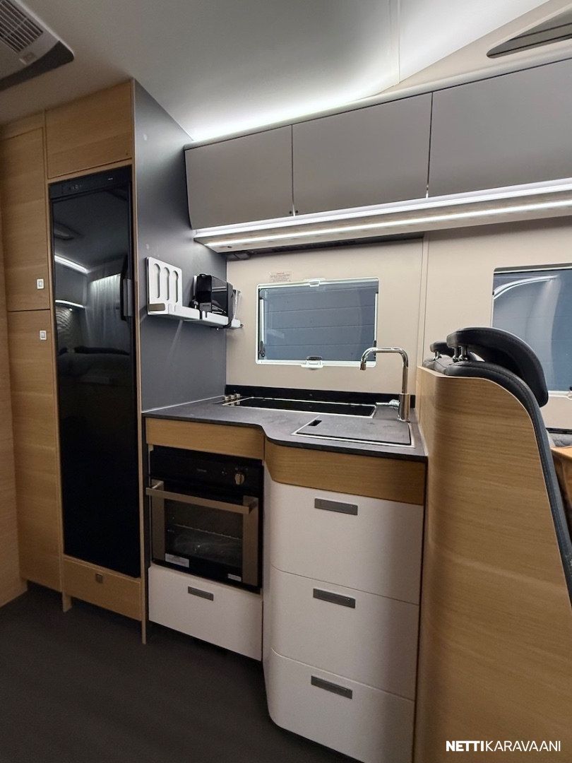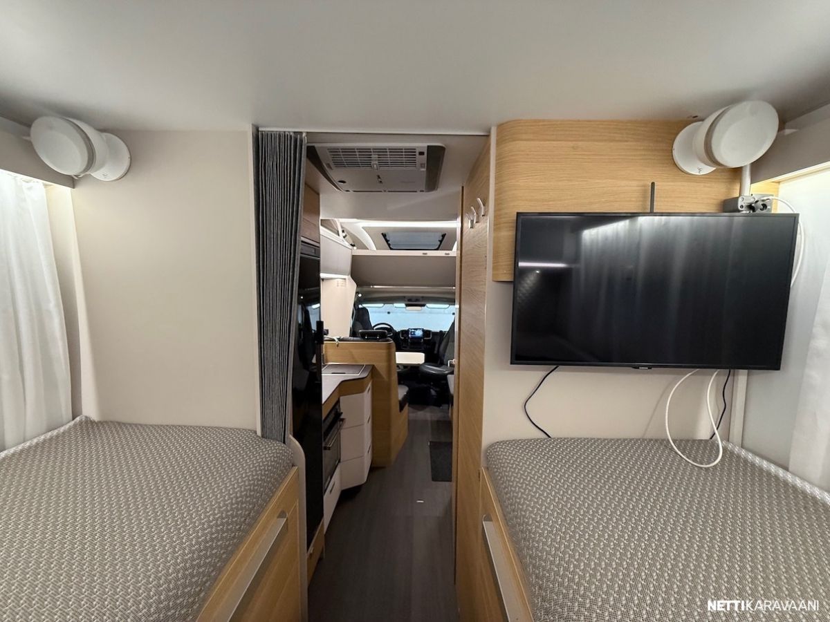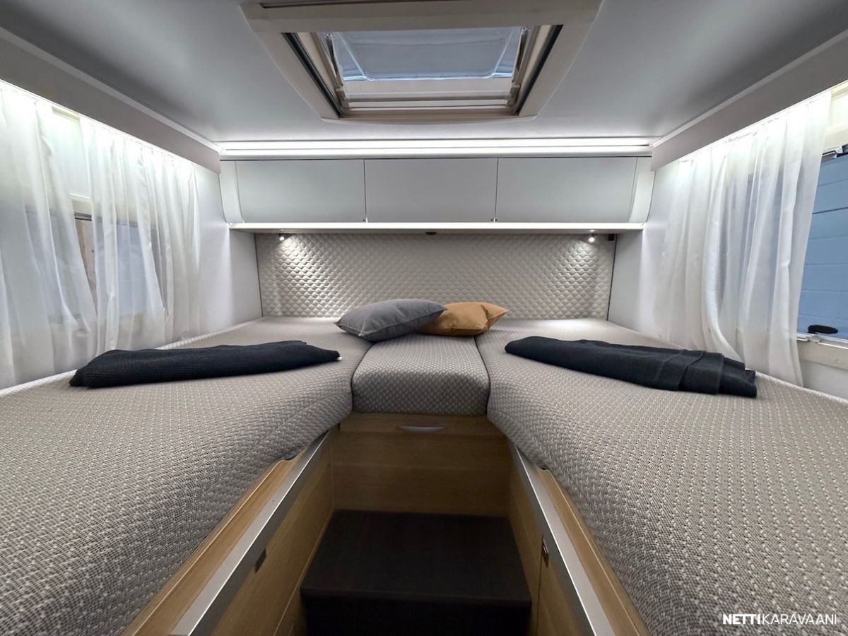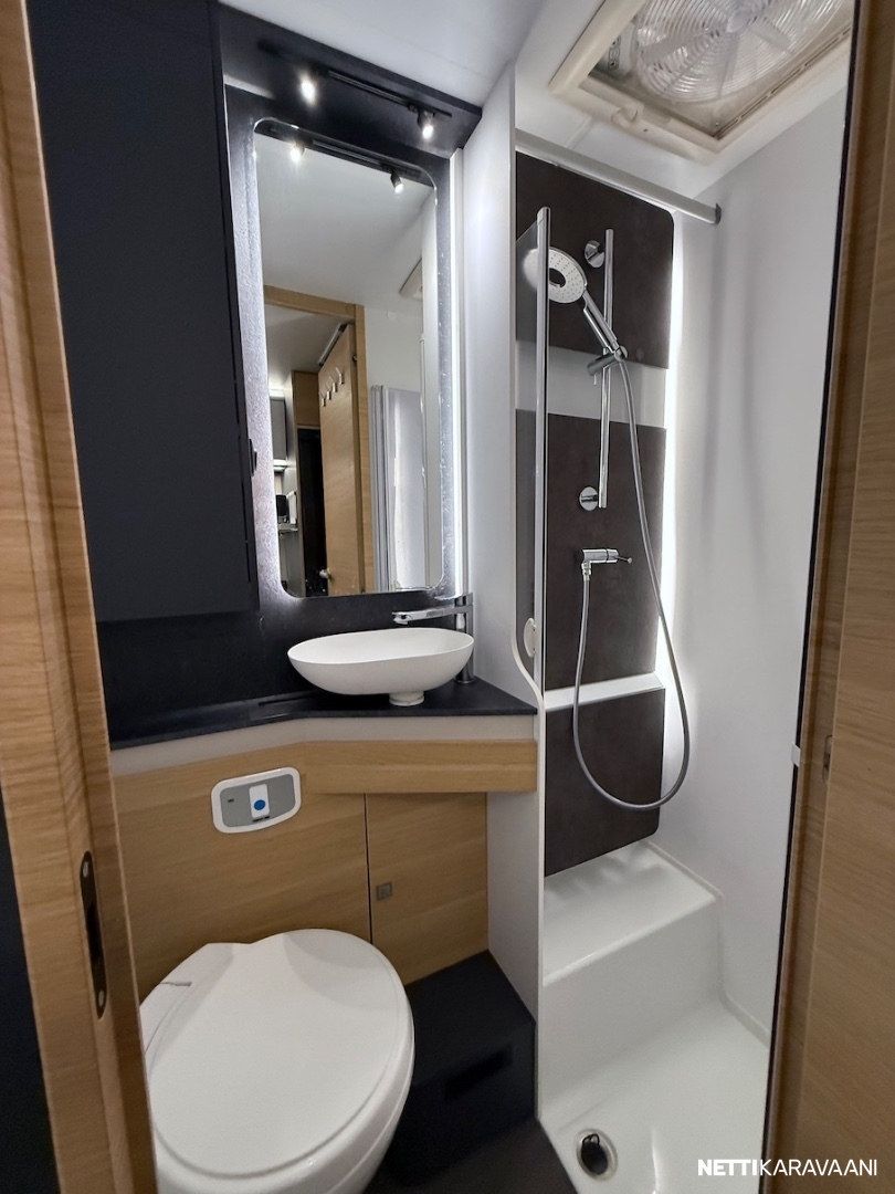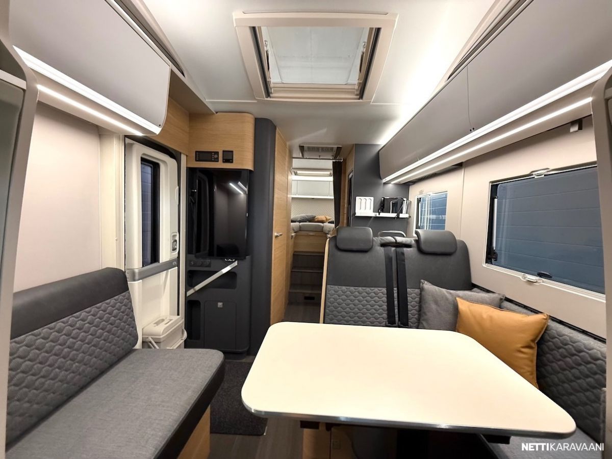 Ajotietokone, Jääkaappi, Kaasu-uuni, Kasetti WC, Kasettiverhot, Keskuslukitus: Kaukosäätöinen, Lattiamatot asunto-osassa, Liesi, Markiisi, Ohjaustehostin, Pakastelokero, Pesuallas, Pysäköintitutka, Suihku, Sähkökäyttöiset ikkunat, Sähköpeilit, Vakionopeudensäädin, ABS-jarrut, Airbag, Ajonvakautusjärjestelmä, Luistonesto, Sumuvalot, Alde, Aurinkopaneeli, Erikoisvanteet, Eristetty harmaavesisäiliö, Kattoluukku, Lattialämmitys, Sähköpatruuna, Sähkörappu, Tukijalat, Tuplapohja, Turbo, Lämminvesiboileri, Navigaattori, Pysäköintikamera, TV-antenni tai lautasantenni, Huoltokirja, Pyöräteline