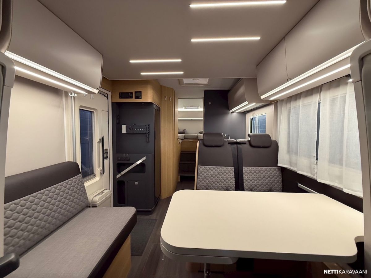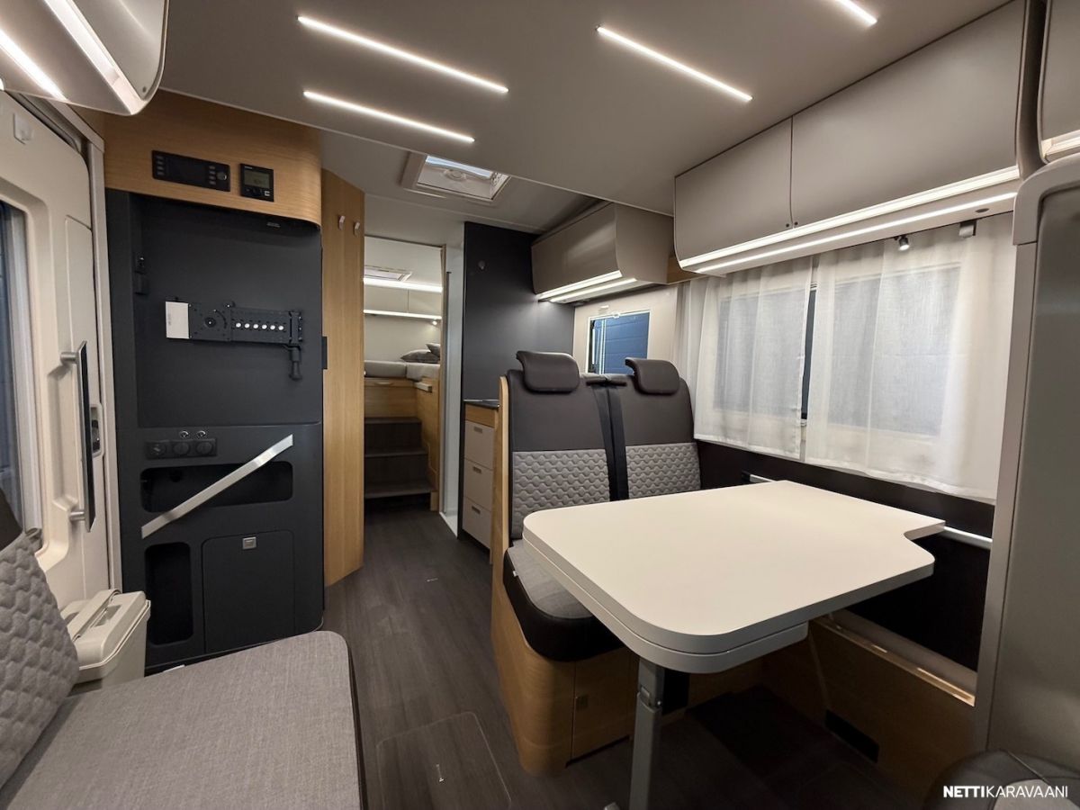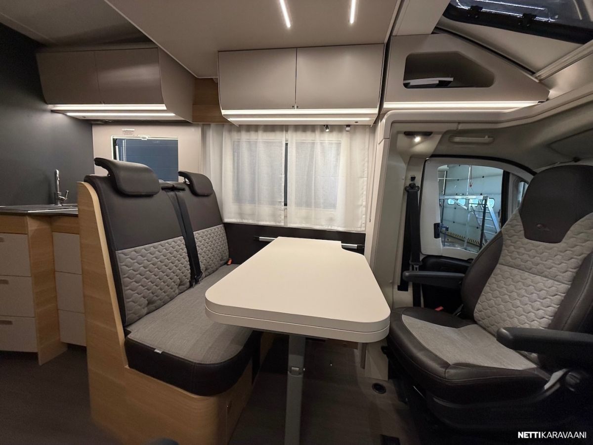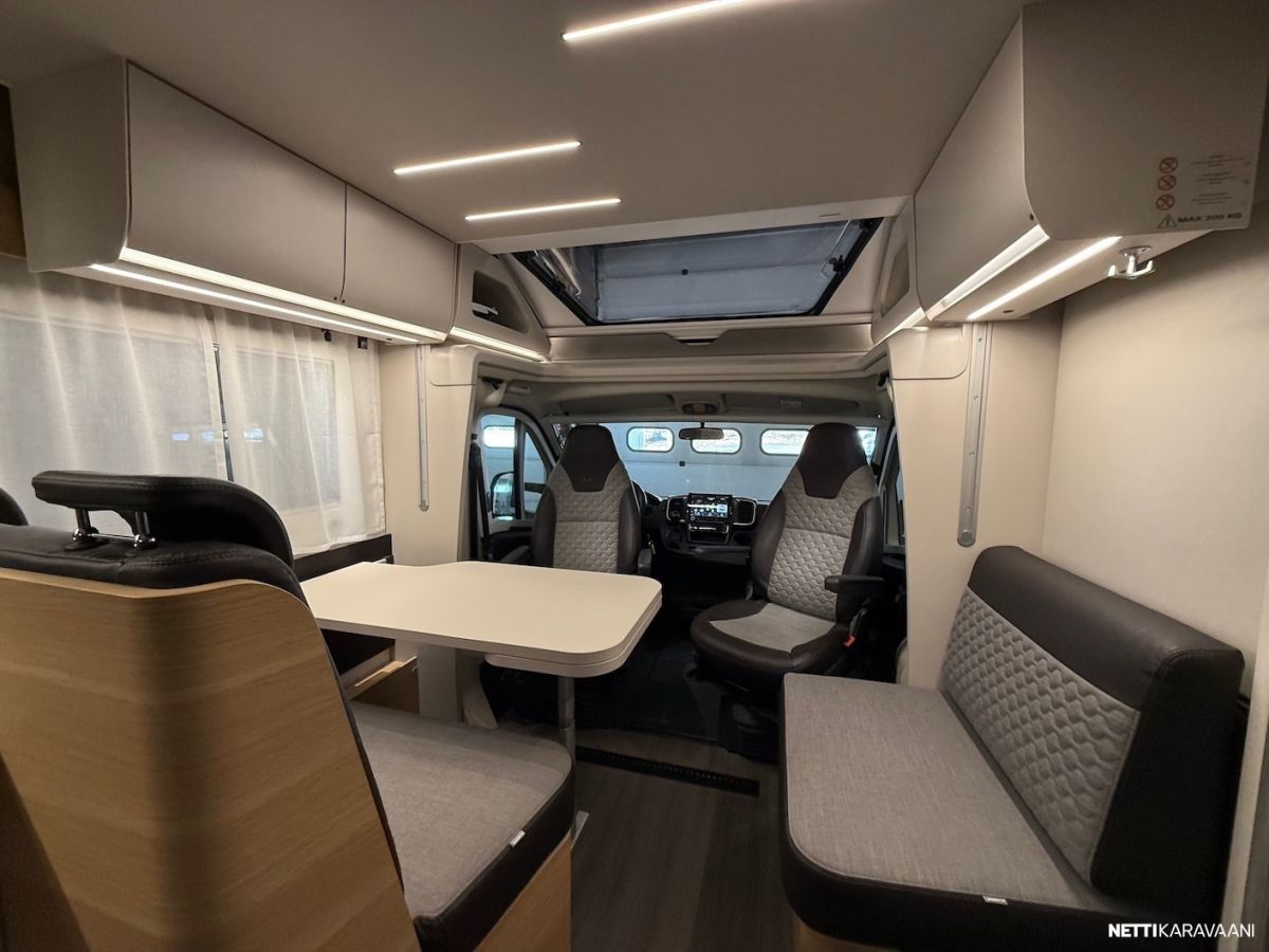 Mukava 9-vaihteinen automaattivaihteisto, Fiat -automaatti-ilmastointi, 2 x Airbag, sähkölasit ja -peilit, Fiat LED -päiväajovalot, kiiltävän musta maski ja ajovaloumpiot, nahkaratti, 16 tuuman aluvanteet, 9-tuuman Zenec -multimediasoitin peruutuskameralla ja navigoinnilla, ohjaamon kattoikkuna, ohjaamon astinlaudat, ohjaamon Plise -kaihdinverhot, lisäilmajouset taka-akselilla, LifePo -akku, aurinkopaneelijärjestelmä, tehokas Truma Combi 6E -lämmitys kaasulla ja sähköllä, tasainen puhallinlämmitetty kaksoislattiarakenne, lattialämmitys, jätevesijärjestelmän lämmitys, Isofix -lastenistuinkiinnikkeet, rekisteröity 5:lle, tilava SlimTower -jääkaappi, liesituuletin, LED-valaistus ja epäsuora tunnelmavalaistus himmentimin, suuri takatalli molemminpuoleisin luukuin, Thule -markiisi, sähköisesti alaslaskettava vuode, leveä ulko-ovi keskuslukituksella ja ikkunalla, hyttysverkko-ovi, mattosarja, TV-teline.