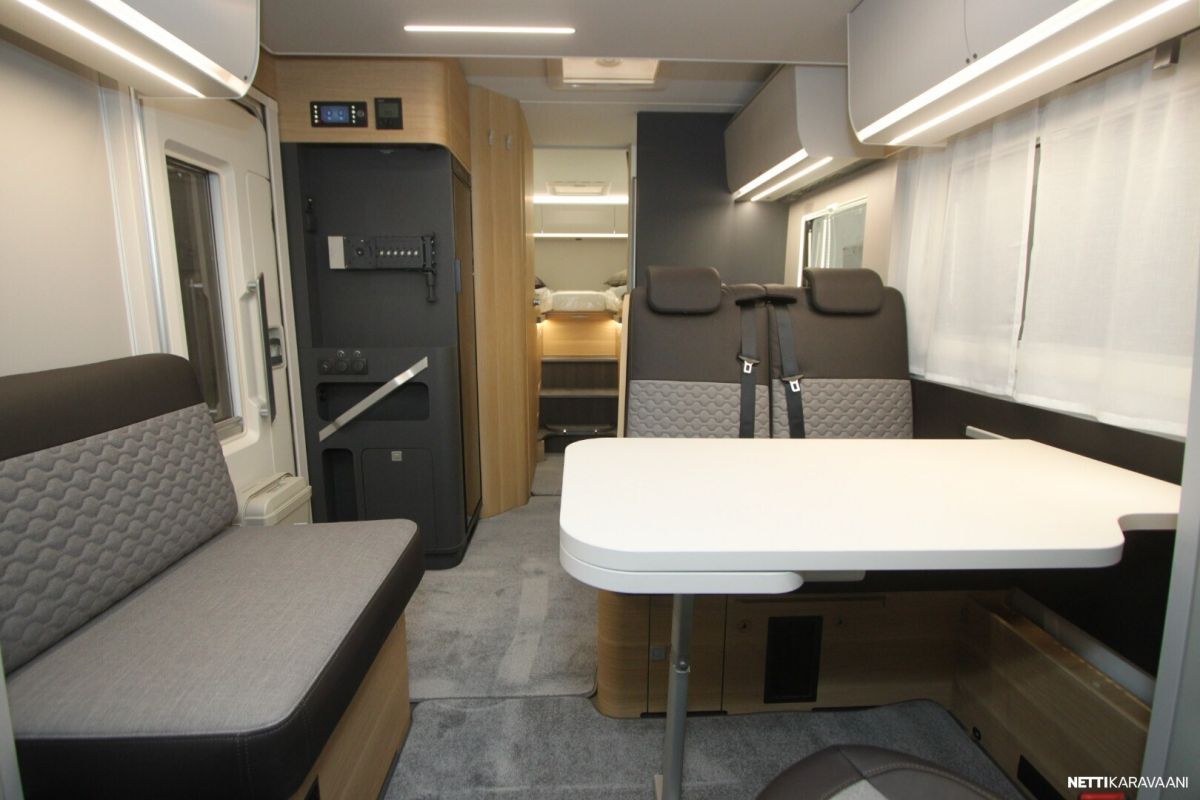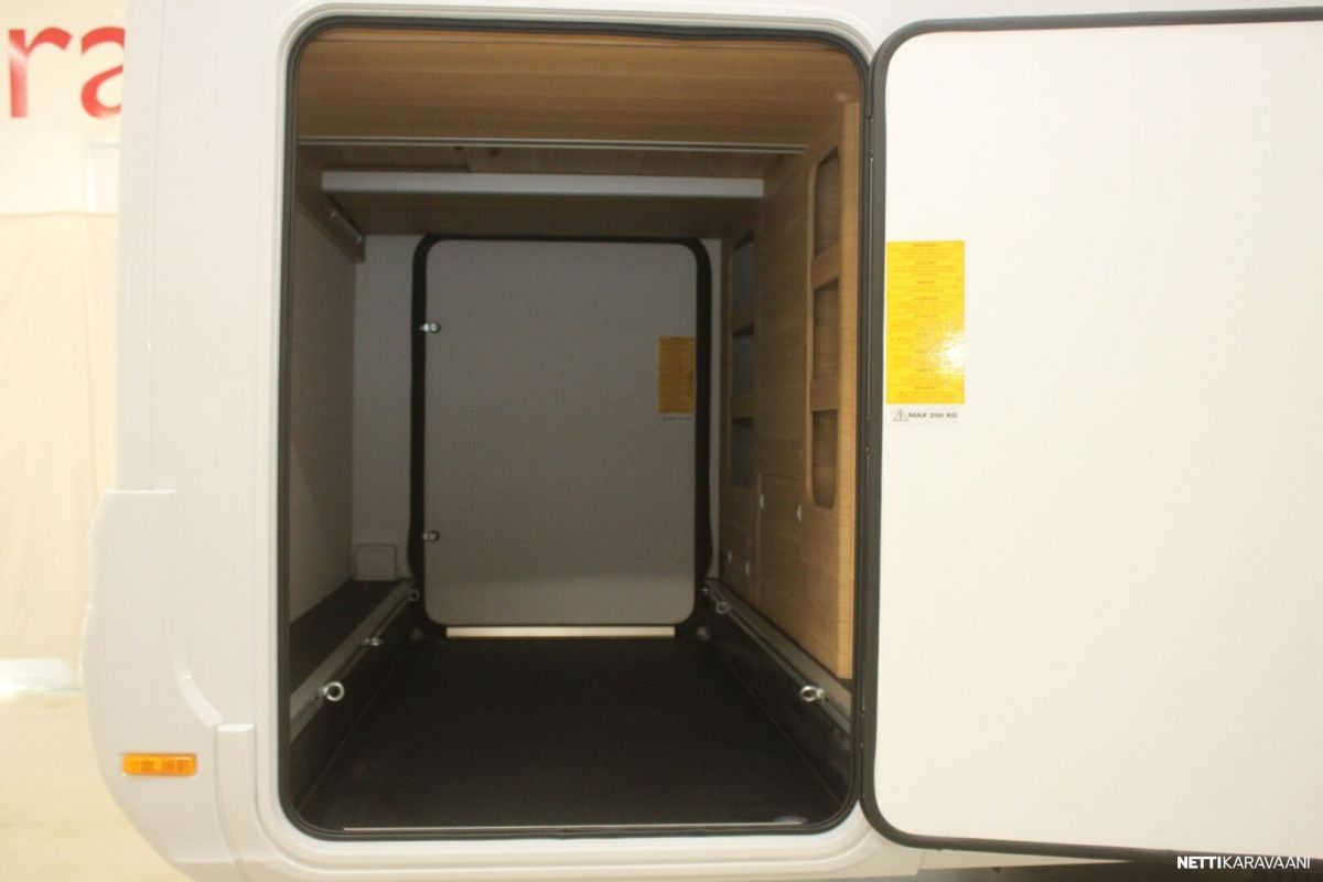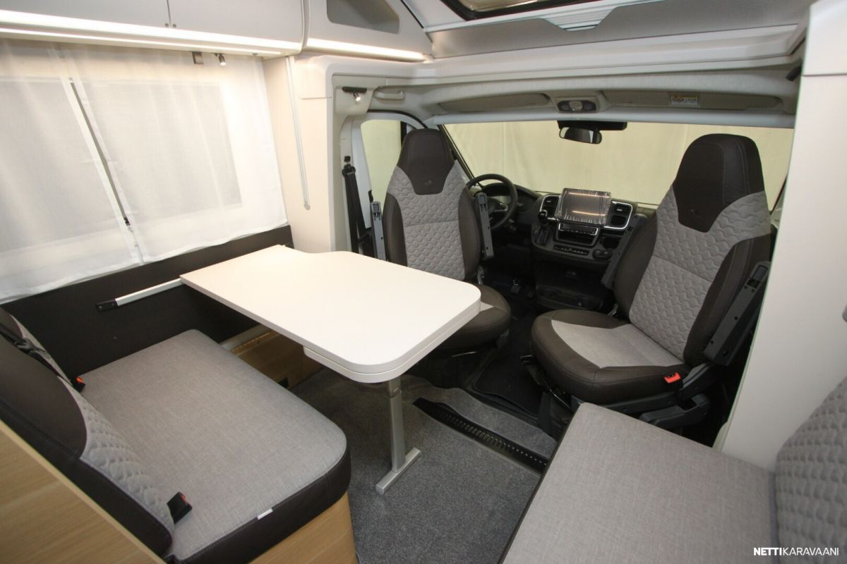 Ajotietokone, Jääkaappi, Kasetti WC, Kasettiverhot, Keskuslukitus: Kaukosäätöinen, Lattiamatot asunto-osassa, Liesi, Lämminvesiboileri, Markiisi, Navigaattori, Ohjaustehostin, Pakastelokero, Pesuallas, Pysäköintikamera, Pysäköintitutka, Suihku, Sähkökäyttöiset ikkunat, Sähköpeilit, Vakionopeudensäädin, ABS-jarrut, Airbag, Käynnistyksenesto, Aurinkopaneeli, Erikoisvanteet, Eristetty harmaavesisäiliö, Huoltokirja, Kattoluukku, Lattialämmitys, Sähköpatruuna, Sähkörappu, Trumatic, Tukijalat, Tuplapohja, Turbo
