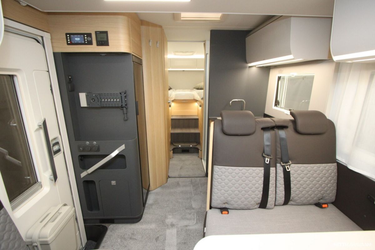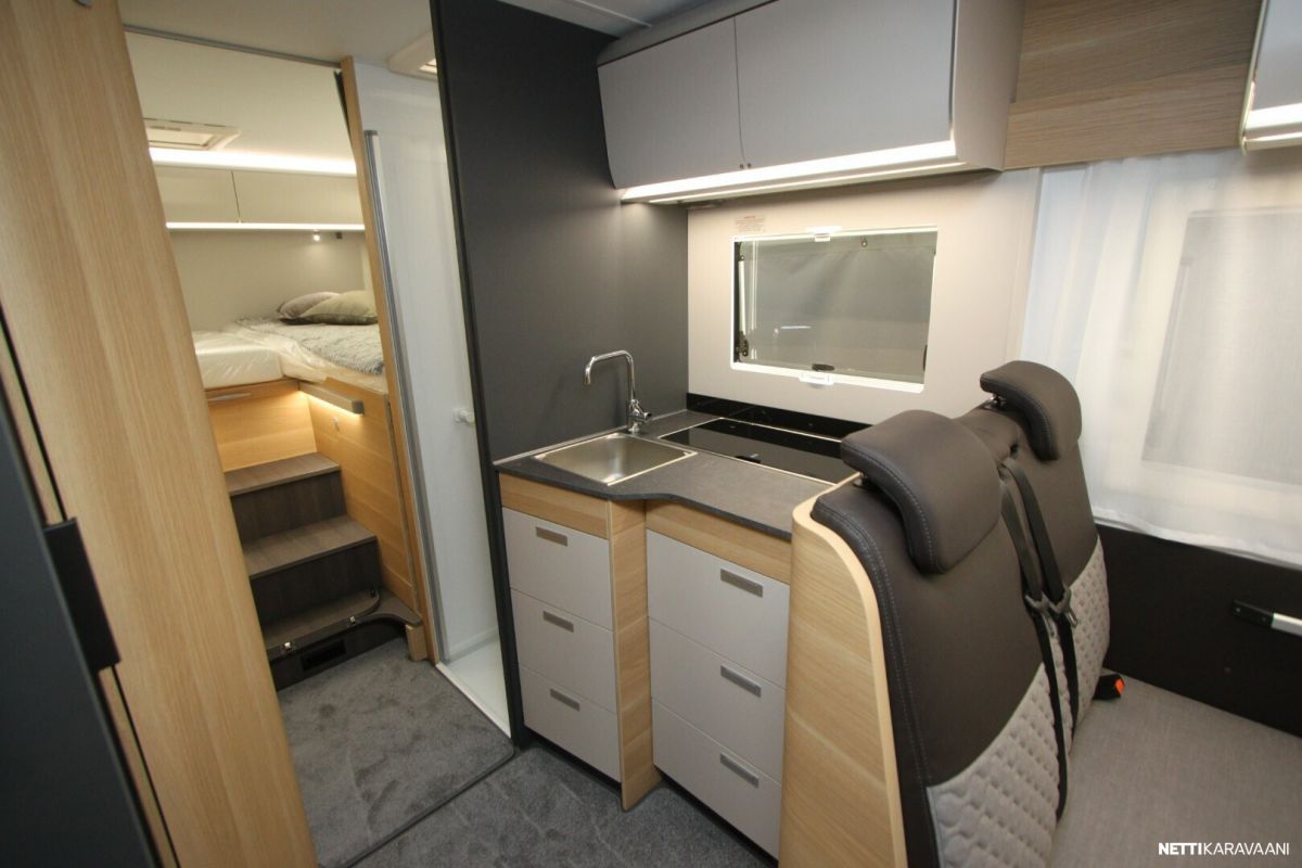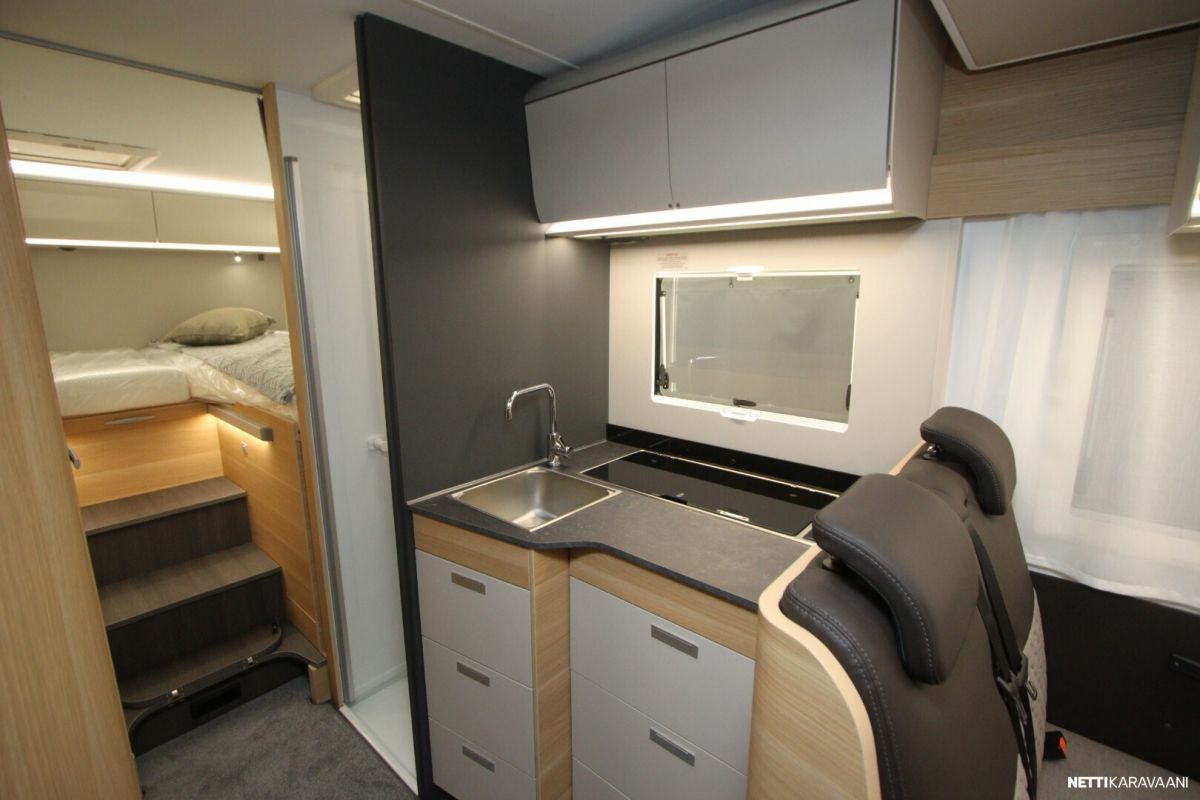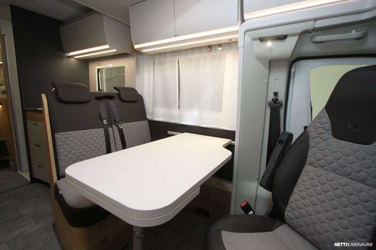 Ajotietokone, Jääkaappi, Kasetti WC, Kasettiverhot, Keskuslukitus: Kaukosäätöinen, Lattiamatot asunto-osassa, Liesi, Lämminvesiboileri, Markiisi, Navigaattori, Ohjaustehostin, Pakastelokero, Pesuallas, Pysäköintikamera, Pysäköintitutka, Suihku, Sähkökäyttöiset ikkunat, Sähköpeilit, Vakionopeudensäädin, ABS-jarrut, Airbag, Käynnistyksenesto, Aurinkopaneeli, Erikoisvanteet, Eristetty harmaavesisäiliö, Huoltokirja, Kattoluukku, Lattialämmitys, Sähköpatruuna, Sähkörappu, Trumatic, Tukijalat, Tuplapohja, Turbo