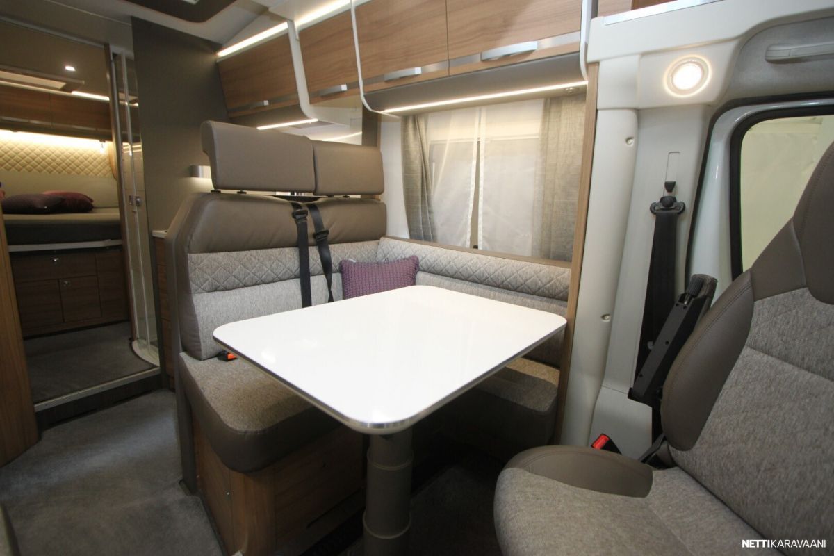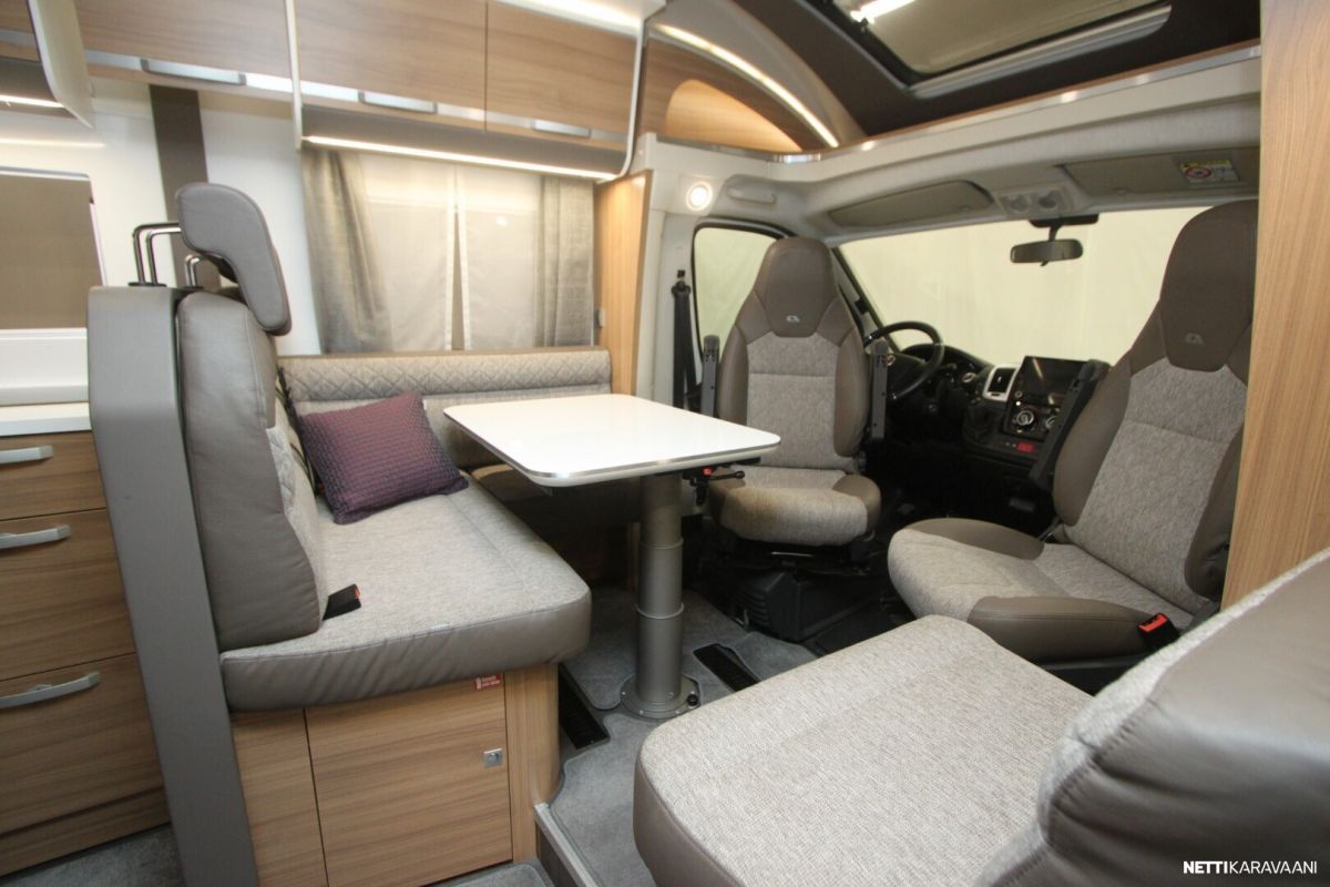 Ajotietokone, Jääkaappi, Kasetti WC, Kasettiverhot, Keskuslukitus: Kaukosäätöinen, Liesi, Lämminvesiboileri, Markiisi, Ohjaustehostin, Pakastelokero, Pesuallas, Pysäköintikamera, Suihku, Sähkökäyttöiset ikkunat, Sähköpeilit, TV-antenni tai lautasantenni, Vakionopeudensäädin, ABS-jarrut, Airbag, Käynnistyksenesto, Alde, Erikoisvanteet, Eristetty harmaavesisäiliö, Huoltokirja, Kattoluukku, Lattialämmitys, Sähköpatruuna, Turbo, Vetokoukku