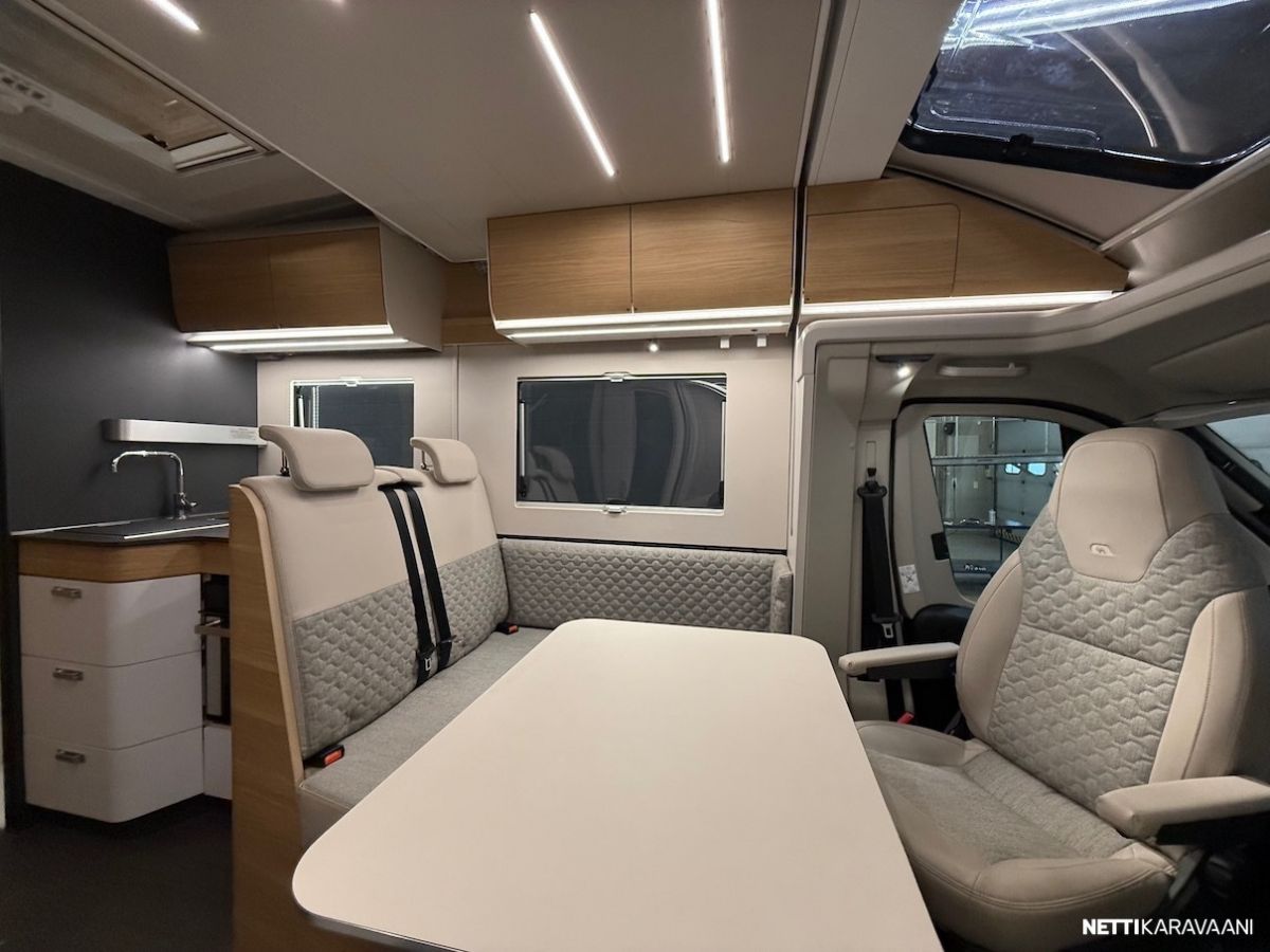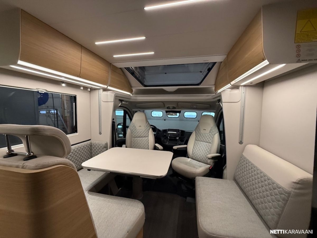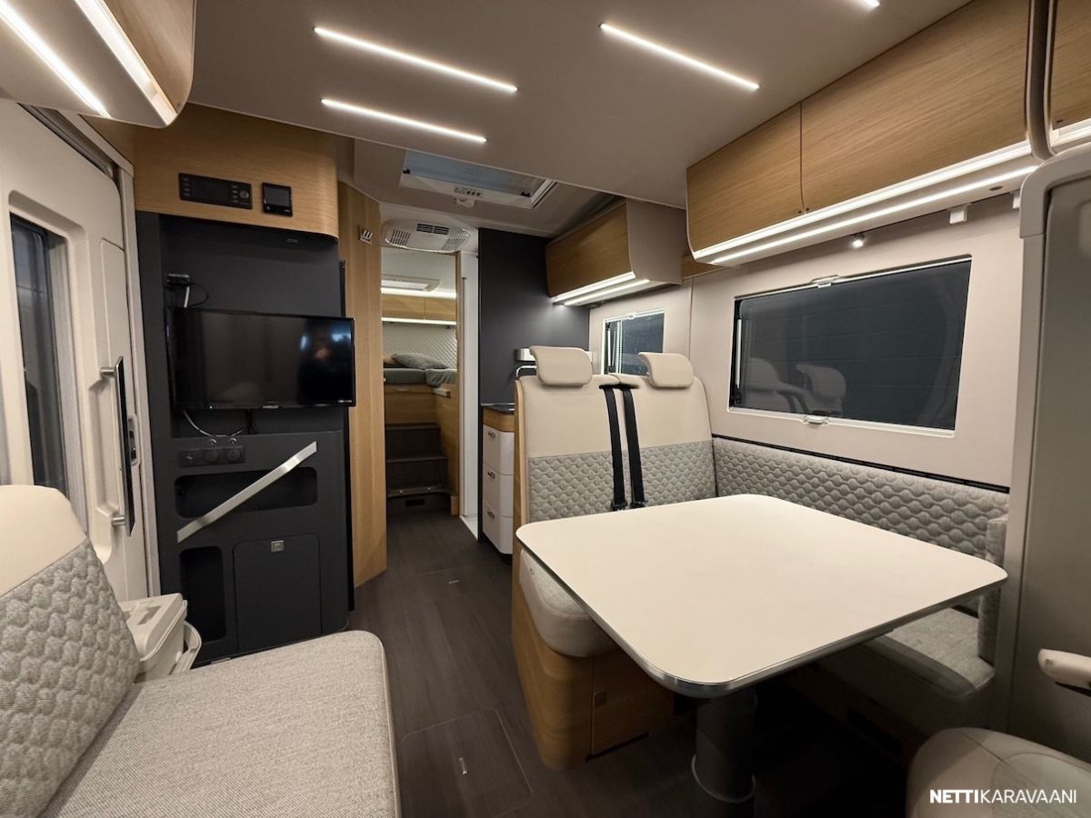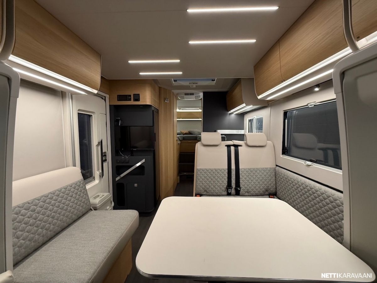Ajotietokone, Jääkaappi, Kaasu-uuni, Kasetti WC, Kasettiverhot, Keskuslukitus: Kaukosäätöinen, Lattiamatot asunto-osassa, Liesi, Markiisi, Navigaattori, Ohjaustehostin, Pakastelokero, Pesuallas, Pysäköintikamera, Pysäköintitutka, Suihku, Sähkökäyttöiset ikkunat, Sähköpeilit, TV-antenni tai lautasantenni, Vakionopeudensäädin, ABS-jarrut, Airbag, Ajonvakautusjärjestelmä, Luistonesto, Sumuvalot, Alde, Aurinkopaneeli, Erikoisvanteet, Eristetty harmaavesisäiliö, Huoltokirja, Kattoluukku, Lattialämmitys, Pyöräteline, Sähköpatruuna, Sähkörappu, Tuplapohja, Turbo