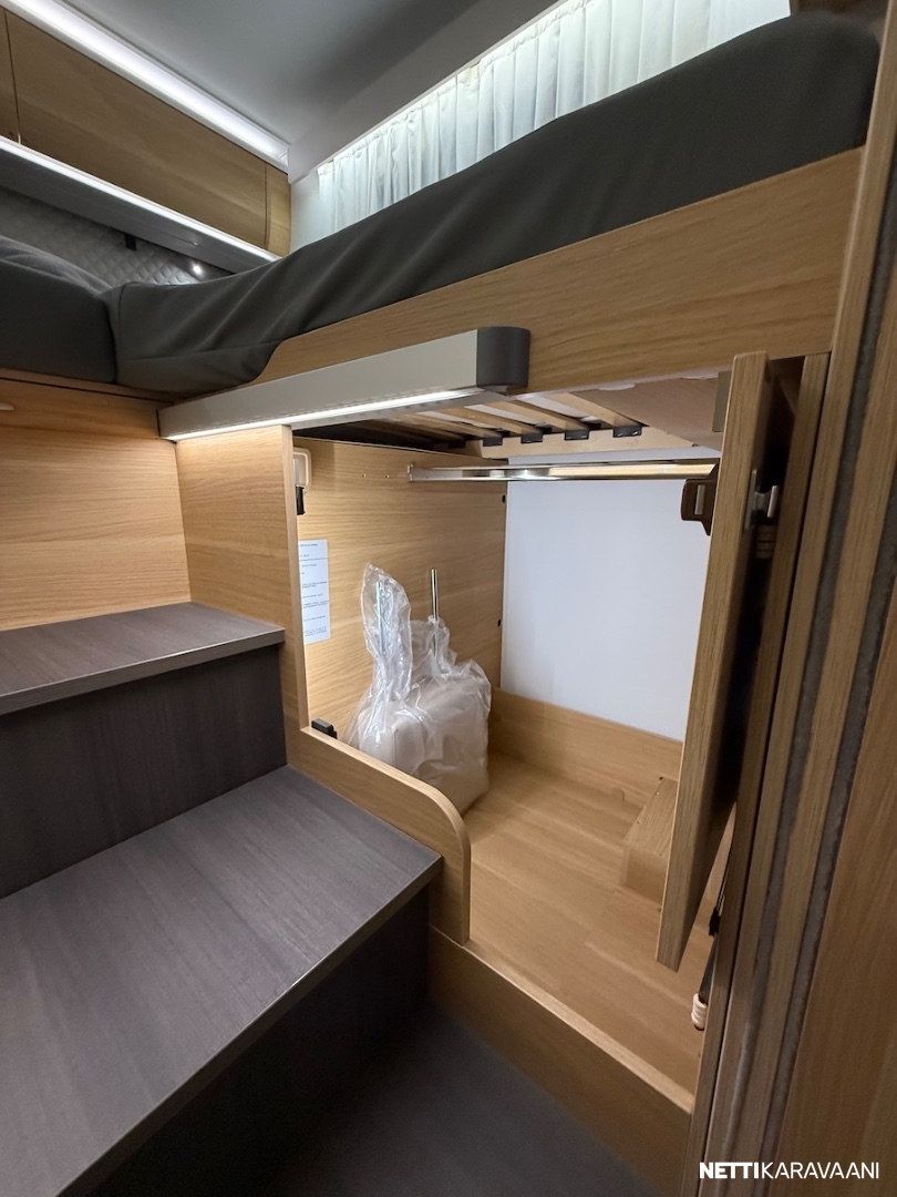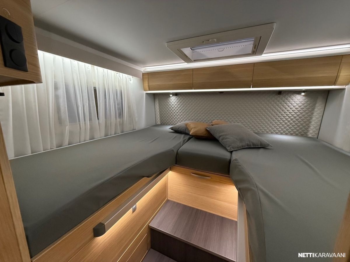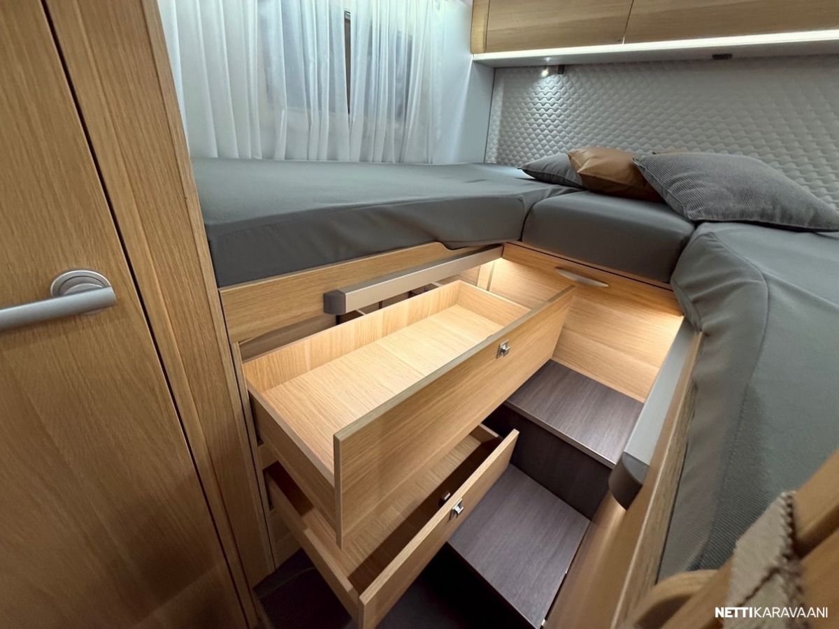 Malliston kohokohtia mm. nestelämmitetty tasainen kaksoislattia ja erittäin tilava sähkökäyttöinen nostovuode.