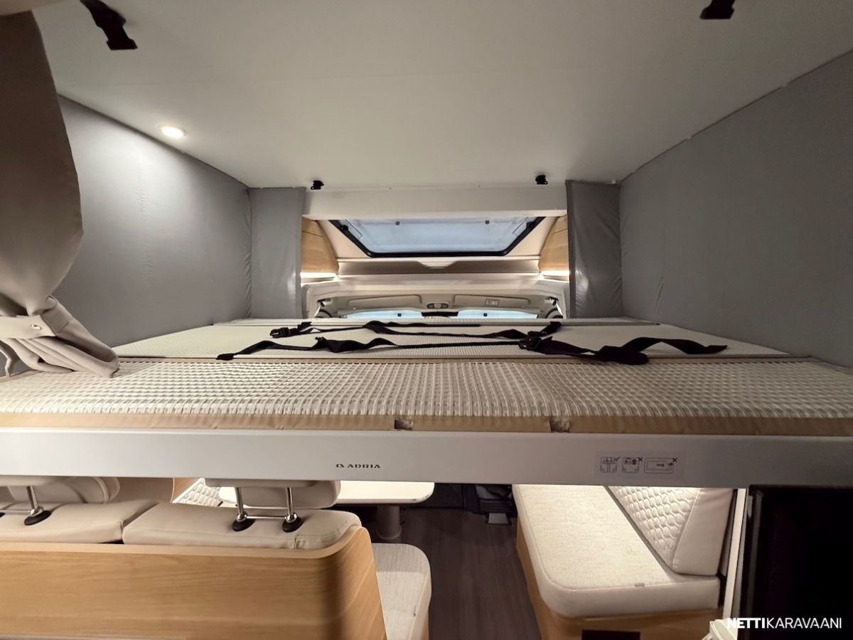 Miellyttävä 9-vaihteinen automaattivaihteisto, Fiat -automaatti-ilmastointi, Fiat All Black -paketti (sis. Musta keulamaski ja ajovaloumpiot, Full Led -ajovalot ja päiväajovalot sekä dynaamiset vilkut, 16 -tuuman alumiinivanteet ja suurempi rengaskoko, musta Skid Plate koriste), Fiat Safety -paketti (sis. kaukovaloautomatiikka, sadetunnistin, kaistavahti, hätäjarruassistentti), kahdet renkaat aluvantein, Silver -ulkoväripaketti, nahkainen monitoimiratti radion säätimin, 9-tuuman Zenec -multimediasoitin peruutuskameralla, etusumuvalot kulmavalotoiminnolla, Al-Ko -lisäilmajouset taka-akselilla, Alde -nestekeskuslämmitys, nestekiertoinen lattialämmitys, ohjaamon nestekiertoinen lattialämmitys, nestekiertolämmitetty jätevesijärjestelmä, mattosarja, L-istuinryhmä ja pöytä pilarijalalla, aurinkopaneelijärjestelmä, asuinosan tupla-akut, ohjaamon Plise -kaihdinverhot, ikkunallinen ulko-ovi keskuslukituksella ja näppärästi irti nostettavalla roska-astialla, hyttysverkko-ovi, Seitz S4 -karmi-ikkunat, kirkkaat Heki -kattoluukut, LED-valaistus ja epäsuora tunnelmavalaistus, suuri jääkaappi, liesituuletin, TV-teline joka mahdollistaa jopa 32 tuumaisen TV:n, USB-pistokkeet, peruutustutka, roiskeläpät edessä ja takana, ESP -ajonvakauden hallinta, Traction + ja alamäkihidastin, sähkön ulosotto huoltoluukun takana, erillisvuoteet yhdistettävissä, ohjaamon panoraama kattoikkuna, lämmin kaksoislattia ilman kynnyksiä, jossa mm tuorevesisäiliö, 5 turvavyöpaikkaa, Isofix -lastenistuinkiinnikkeet, dynaaminen kaareva takaseinän muotoilu, tyylikkäät Adria LED -takavalot, tilava sähköisesti alaslaskeva nostovuode, asuinosan ilmastointi, markiisi, polkupyöräteline, kaasu-uuni.