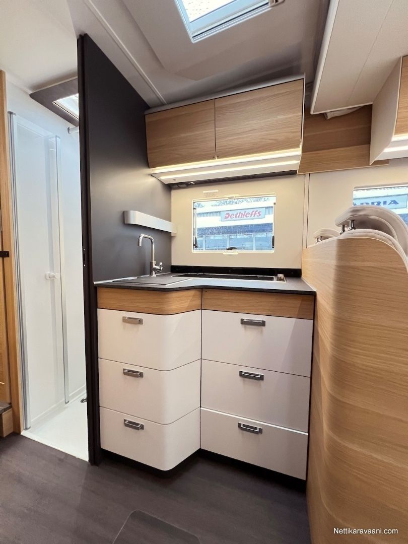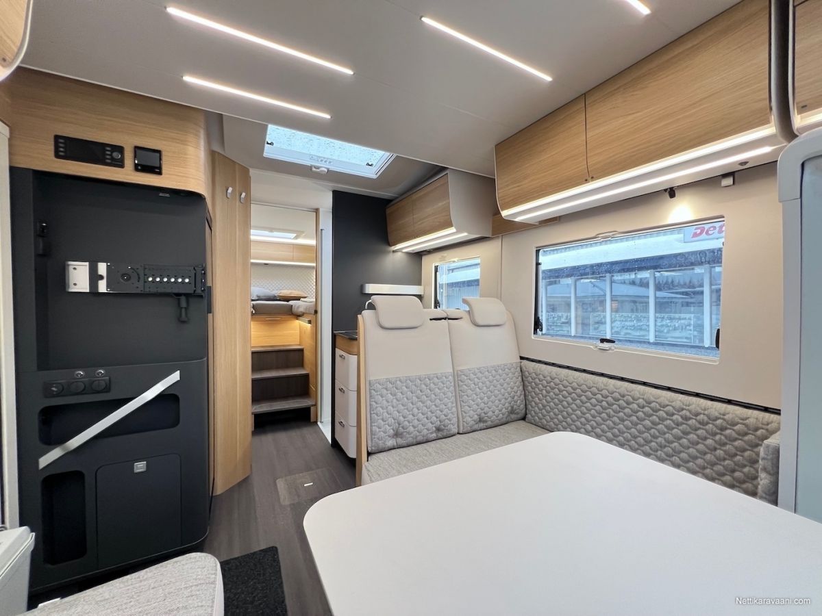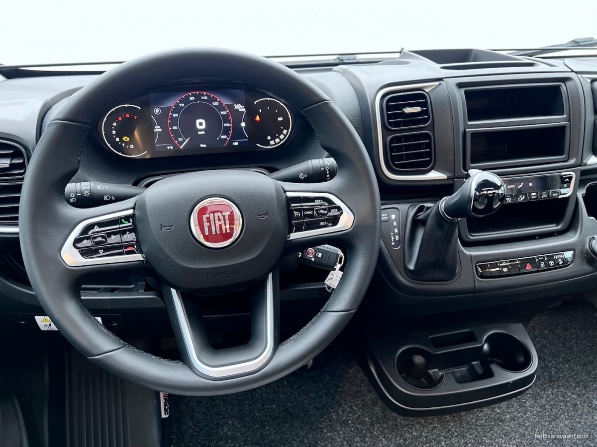 Miellyttävä 9-vaihteinen automaattivaihteisto, Fiat -automaatti-ilmastointi, digitaalimittaristo, 90 l. dieseltankki, Fiat All Black -paketti (sis. Musta keulamaski ja ajovaloumpiot, Full Led -ajovalot ja päiväajovalot sekä dynaamiset vilkut, 16 -tuuman alumiinivanteet ja suurempi rengaskoko, musta Skid Plate koriste), nahkainen monitoimiratti radion säätimin, etusumuvalot kulmavalotoiminnolla, Al-Ko -lisäilmajouset taka-akselilla, Alde -nestekeskuslämmitys, nestekiertoinen lattialämmitys, ohjaamon nestekiertoinen lattialämmitys, nestekiertolämmitetty jätevesijärjestelmä, mattosarja, L-istuinryhmä ja pöytä pilarijalalla, tyylikäs Bernice -verhoilu, takatukijalat, aurinkopaneelijärjestelmä.
