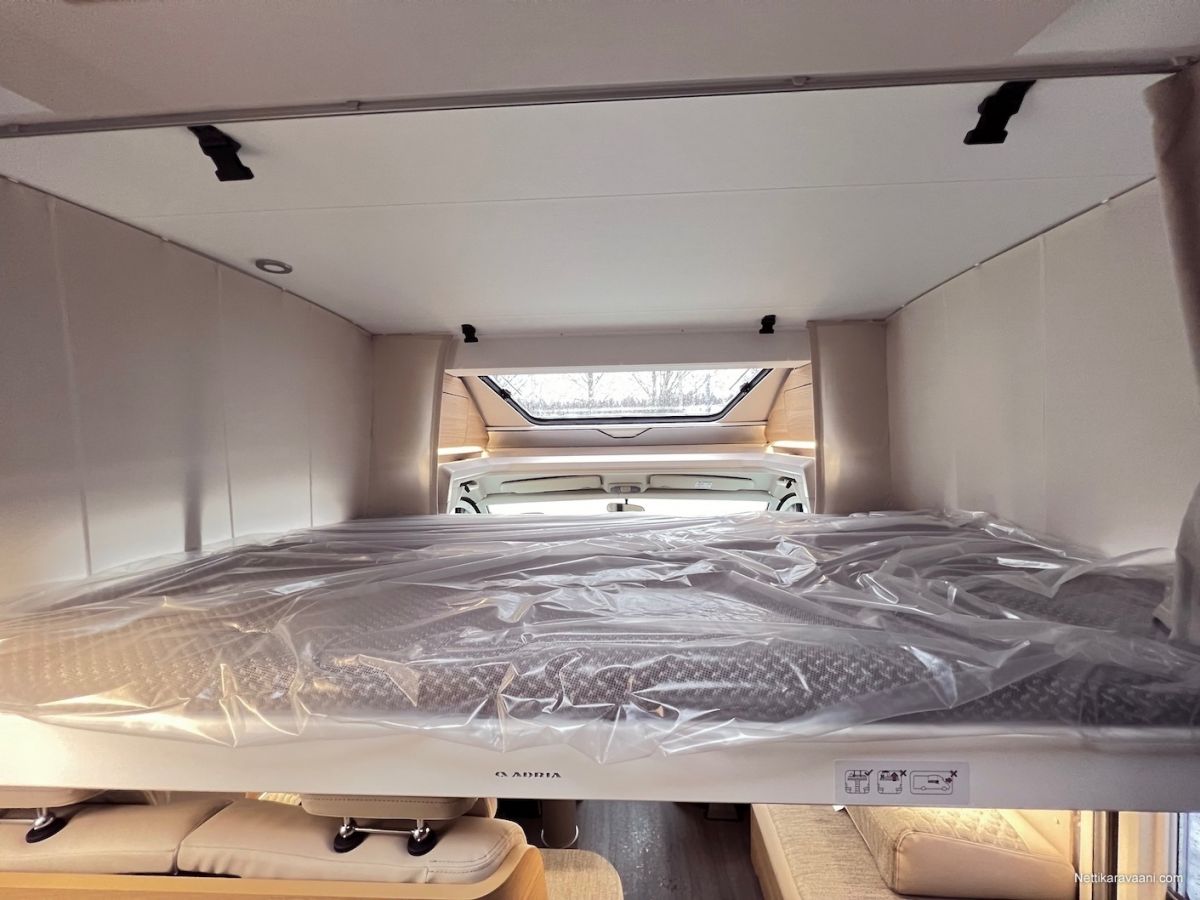 Upea Adria Matrix Plus -matkailuauto Alde -lämmityksellä ja alaslaskettavalla nostovuoteella!