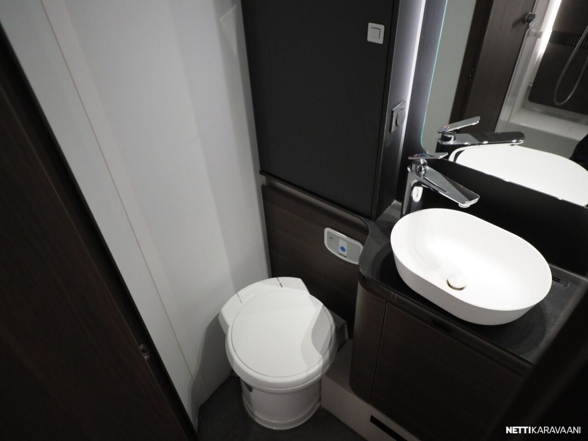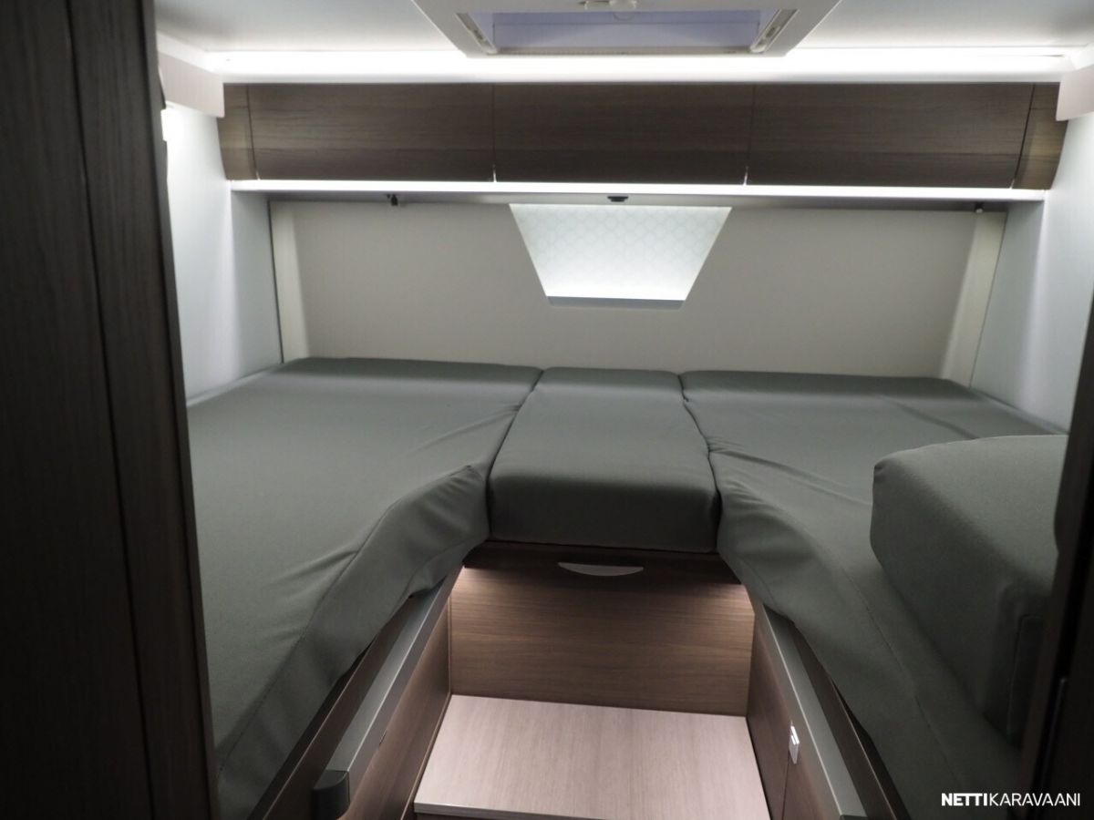 Aj.59 tkm, huoltokirja, ALDE nestekeskuslämmitys kaasulla- ja sähköllä, webasto, lämmin vesi, markiisi, kaasu-uuni, ilmastointi ohjaamossa, ilmastointi asuintilassa, vakionopeussäädin, radio, peruutuskamera, kasetti wc, edessä tilava pöytäryhmä, jonka päällä laskettava sänky, keskellä keittiö/liesi, wc/erillinen suihku, takana erillisvuoteet,