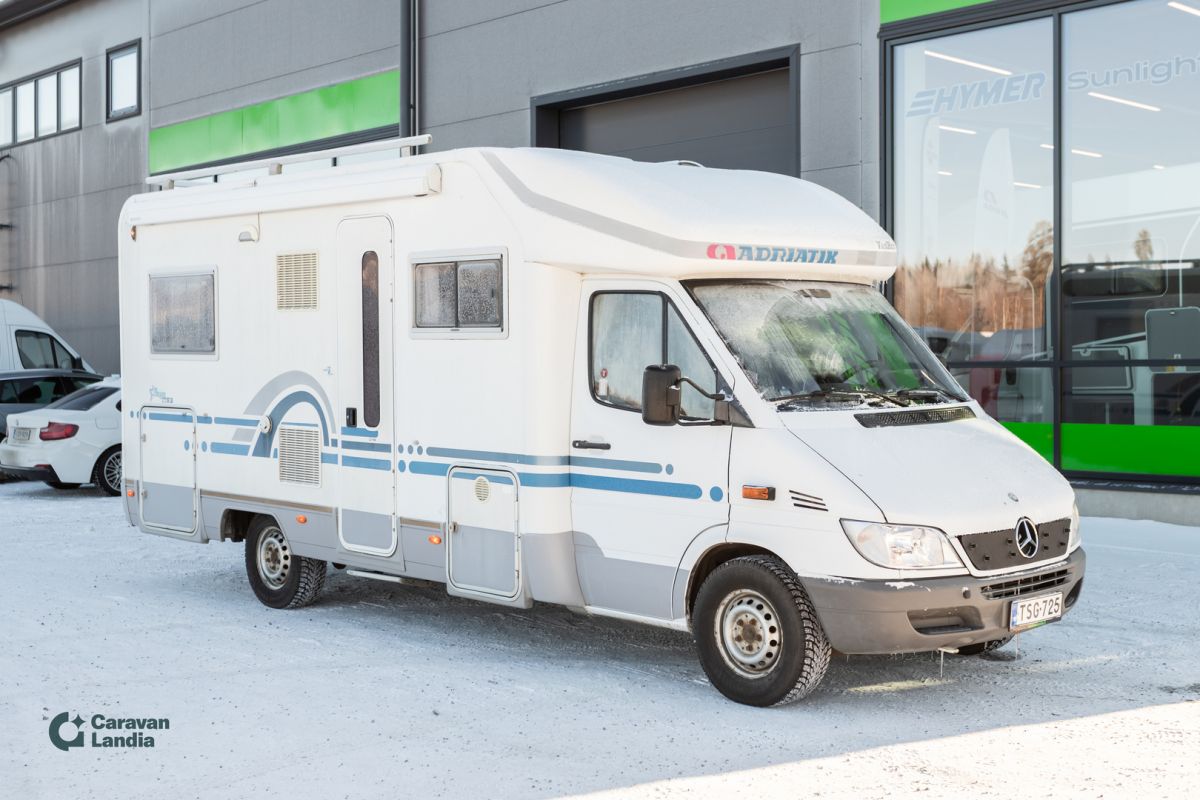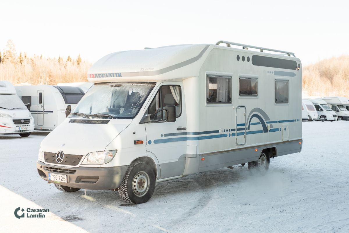 Valoisa ja avara Mercedes-alustainen Adria Truma-lämmityksellä. KORIN VARUSTEET: Aurinkopaneeli Markiisi Kattokaiteet/tikkaat Pyöräteline Sähkörappu Tukijalat POHJARATKAISU: Parivuode pitkittäin Kasetti WC Pesuallas Suihku L-keittiö Sivusohva LÄMMITYSJÄRJESTELMÄ: Trumatic Sähköinen lattialämmitys Lämminvesiboileri ASUINOSAN VARUSTEET: Iso kattoikkuna Liesituuletin Iso-jääkaappi Pakastelokero Kaasuliesi Kaasu-uuni Korkea vaatekaappi OHJAAMON VARUSTEET: Manuaalivaihteisto Luistonestojärjestelmä Lukkiutumattomat jarrut (ABS) Multimediakeskus Sähkökäyttöiset ikkunat Sähköpeilit AJOKORTTILUOKKA: Ajokorttiluokka B Ota yhteyttä Rikhard Sormunen 0504645837 Meiltä voit ostaa etänä vaikka kotisohvaltasi! Kokeile kuinka helppoa ja vaivatonta matkailuajoneuvon ostaminen on.