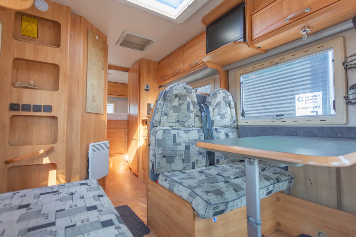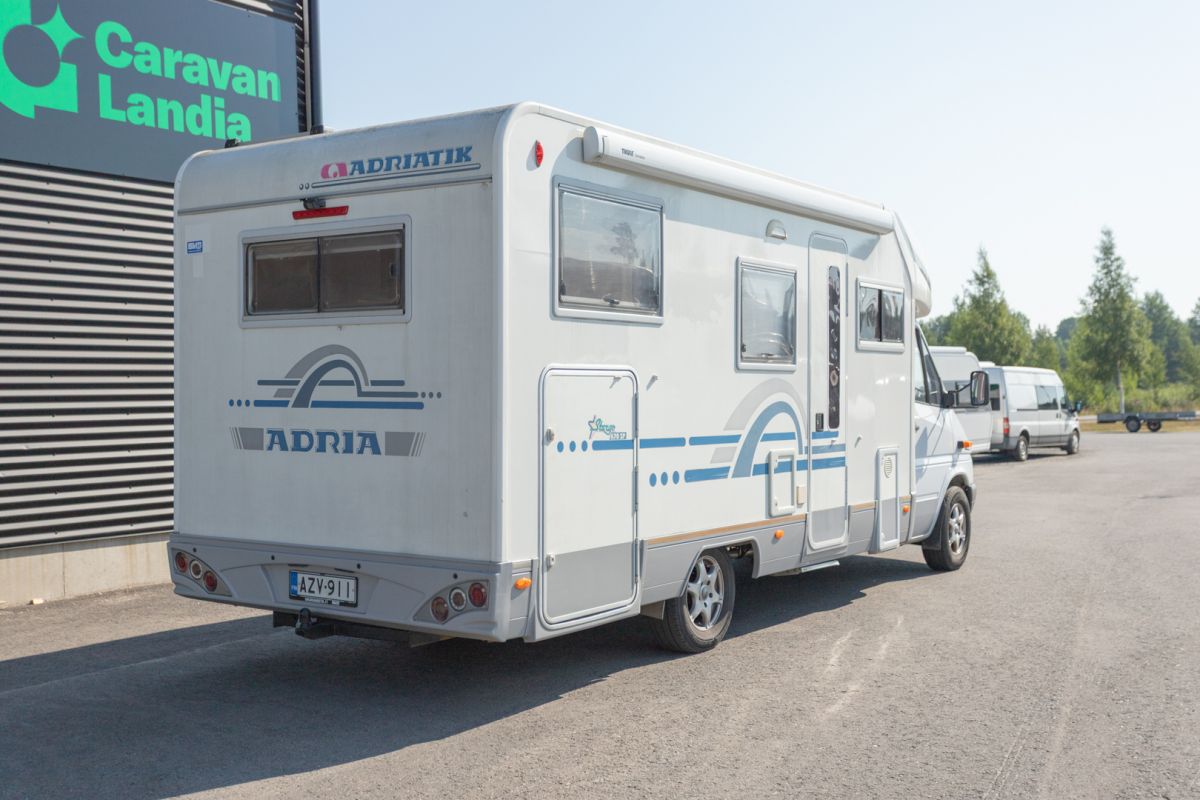 TÄHÄN AJONEUVOON KILPAILUKYKYINEN KORKO! - Tilava ja luotettava matkailuauto Mercedes-Benz -alustalla! Adria Stargo 670 SP -matkailuauto tarjoaa ainutlaatuisen yhdistelmän tilavaa asumista ja älykkäitä ratkaisuja, jotka tekevät jokaisesta matkasta ylellisen kokemuksen. Sen valoisat ja ilavat sisätilat on suunniteltu huolellisesti mukavuutta ja toimivuutta silmällä pitäen, tarjoten täydelliset puitteet niin lyhyille viikonloppuretkille kuin pidemmillekin seikkailuille. Adria Stargo 670 SP kutsuu sinut tutkimaan maailmaa tyylillä ja nauttimaan vapaudesta oman kodin mukavuudessa – minne ikinä matkasi viekin. Etätyöskentelijöille Pariskunnille Markiisi Vetokoukku Peruutuskamera Stereot CD-soitin Sivusohva Iso kattoikkuna Truma Sähkörappu L-keittiö Liesituuletin Jääkaappi Pakastelokero Kaasuliesi Parivuode Lisävuode istuinryhmästä Kasetti WC Pesuallas Erillinen suihku Takatalli TV-teline TV-antenni tai lautasantenni Meiltä voit ostaa etänä vaikka kotisohvaltasi! Kokeile kuinka helppoa ja vaivatonta matkailuajoneuvon ostaminen on.