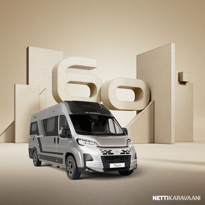 Hyvin varusteltu Adrian 60 vuotis -juhlamallin -retkeilyauto, Adria Twin 60 Years Selection!
