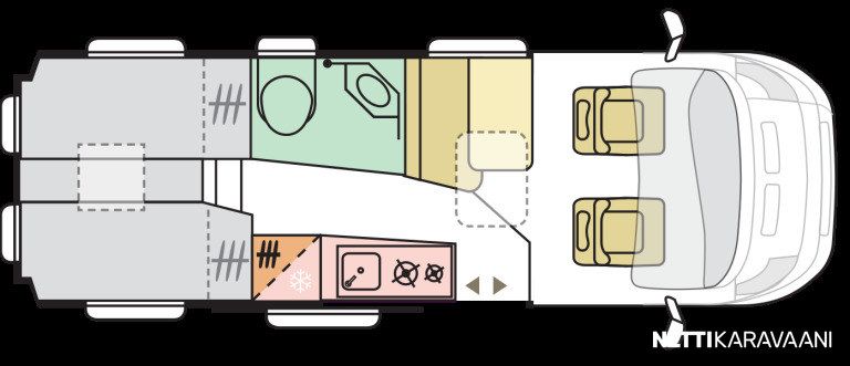 Vaihteisto: Automaatti Polttoaine: Diesel Vetotapa: Etuveto Pituus: 636 cm Matkustajat: 4 Kokonaismassa: 3 500 kg Makuupaikat: 2 Ajokortti: B Lämmitys: Ilmakeskuslämmitys