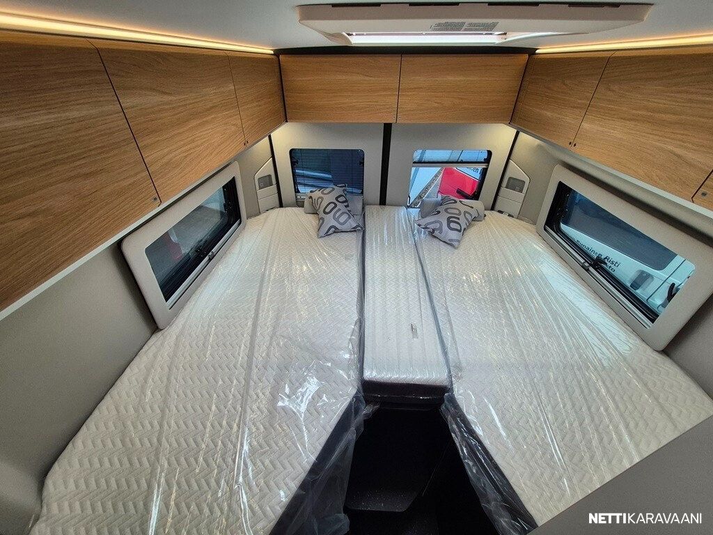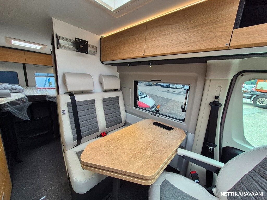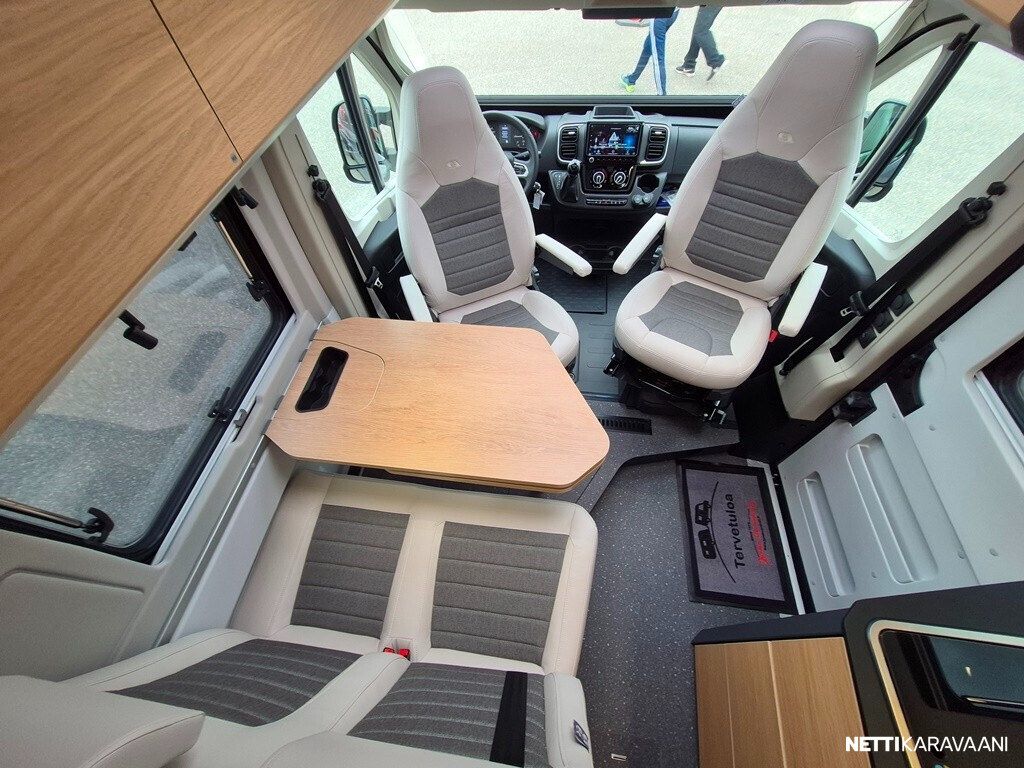 Vaihteisto: Automaatti Polttoaine: Diesel Vetotapa: Etuveto Leveys: 205 cm Pituus: 636 cm Matkustajat: 4 Kokonaismassa: 3 500 kg Makuupaikat: 3 Ajokortti: B Lämmitys: Ilmakeskuslämmitys