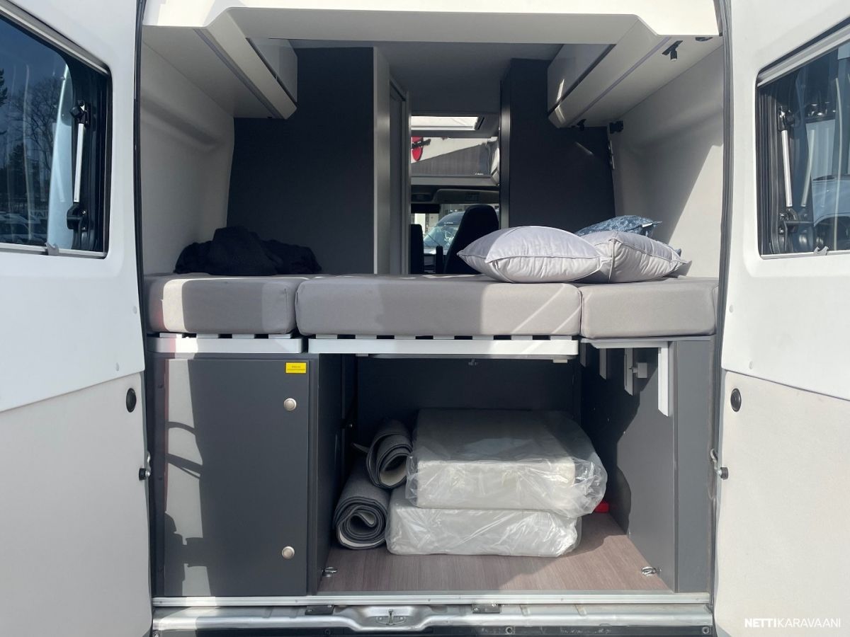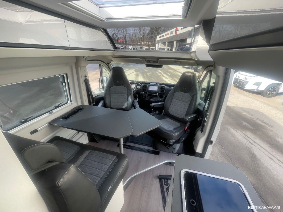 vakionopeudensäädin, peruutustutka, lämmitetty ja eristetty harmaavesisäiliö, Truma Combi 6E kaasu ja sähkölämmitin, automaattinen ohjaamon ilmastointilaite, alumiinivanteet, metalliväri, nahkapäällysteinen ohjauspyörä ja vaihdekepin nuppi, auton värinen etupuskuri, kiiltävä musta jäähdyttimen säleikkö ja ajovalokehykset, Led-päiväajovalot, Soft closing automatiikka sivuliukuovessa, aurinkopaneeli 120W, kompressori jääkaappi, lithium akku, peruutuskamera ja soitin
