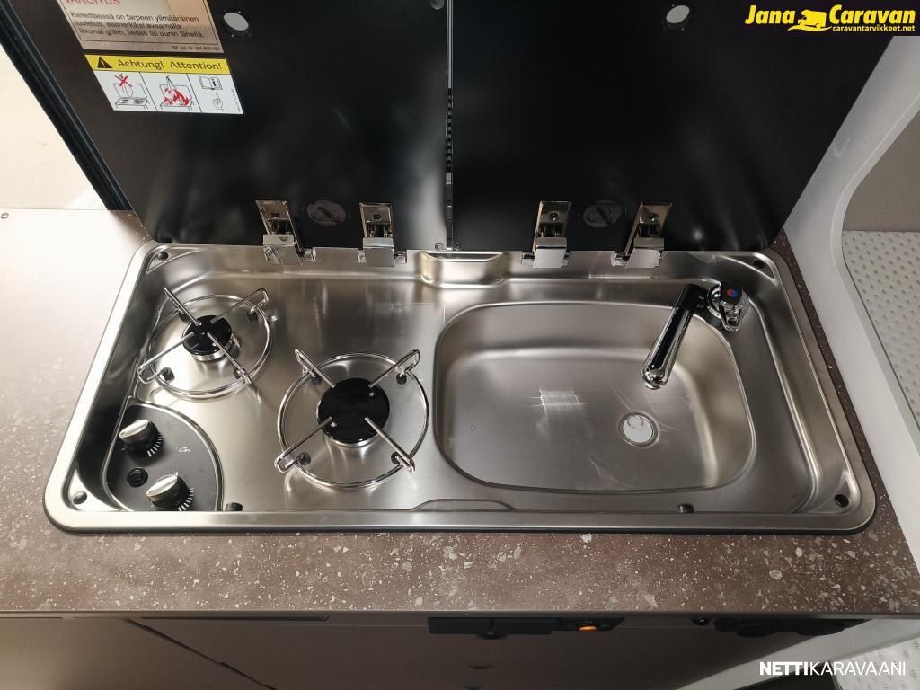 2-liekkinen liesi-pesuallasyhdistelmä lasikannella