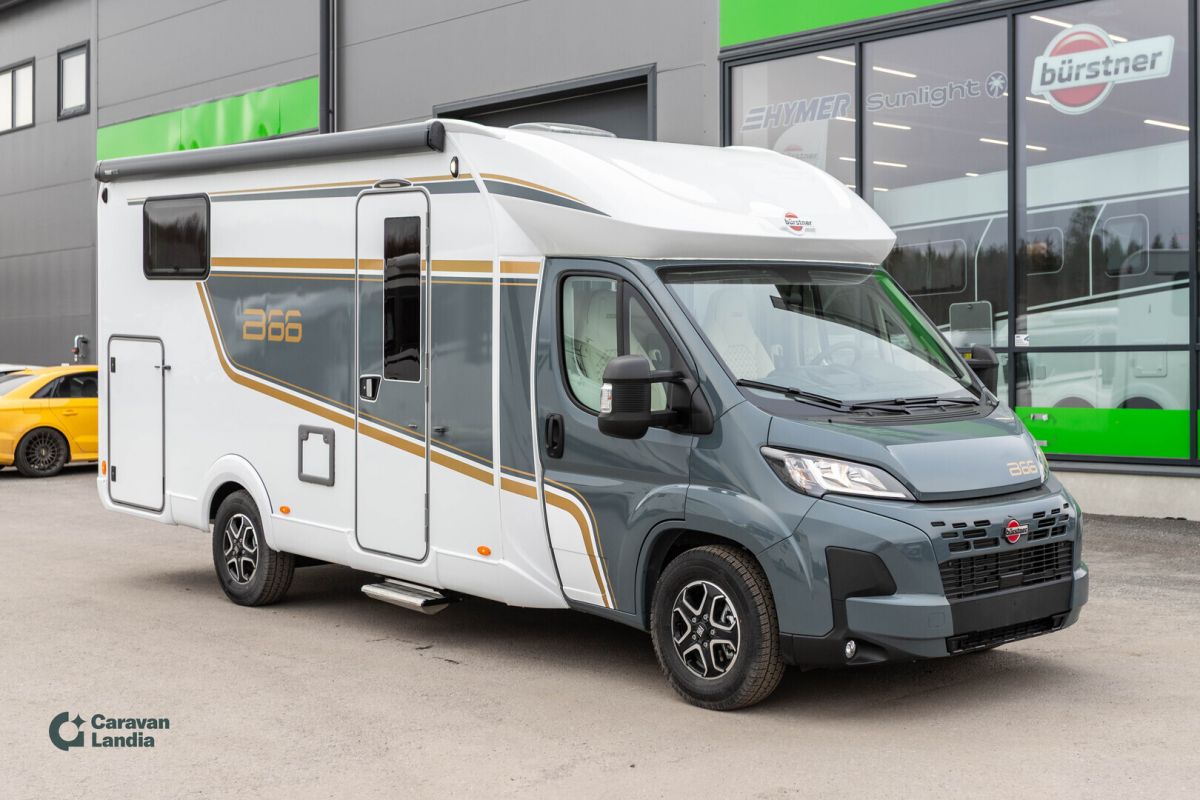 Tyylikäs ja suosittu Burstner matkailuauto huippu varustein! Auton modernit ja tarkkaan harkitut ratkaisut sekä tyylikäs sisustus tarjoavat tilaa ja mukavuutta isommallekin porukalle jokaisella reissulla! Aloita matkasi jo tänään tällä Bürstnerin huippu-uutuudella, jonka tilaratkaisut ja varusteet takaavat mukavuuden jokaisella reissullasi! OHJAAMON VARUSTEET 8-vaihteinen automaattivaihteisto 140hv moottori Monitoimiohjauspyörä Vakionopeudensäädin Pioneer- multimediakeskus peruutuskameralla Pimennysverhot ohjaamossa Eco Start & Stop toiminto Lanzarote Grey ulkoväri Sähköinen seisontajarru Sumuvalot ESP, ASR, Hill Holder ja Traction Plus Vahvistettu laturi 220ah Levennetty raideväli taka-akselissa Rengaspaineanturit KORIN VARUSTEET Markiisi Truma Combi 6E Sähköpatruuna Lämminvesiboileri Kasettiverhot Hubbet sähköllä Erillisvuoteet Tv-teline L-keittiö 131,5L kompressorijääkaappi Nahkaverhoilu Creme Thermo-floor kaksoispohja Lämmitettävä harmaavesisäiliö 90L Raikasvesisäiliö 105L Kasetti-wc Litiumakku 100ah Leveä ulko-ovi ikkunalla Keskuslukitus, Alv-vähennyskelpoinen