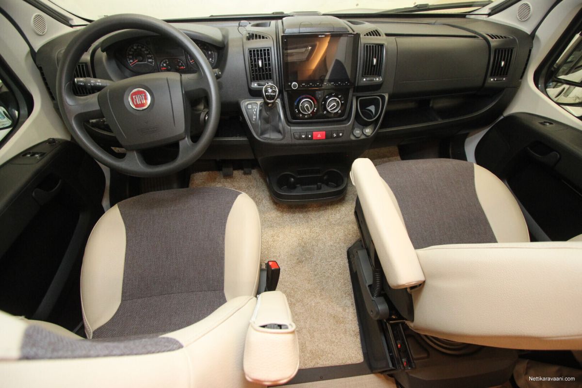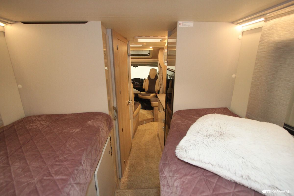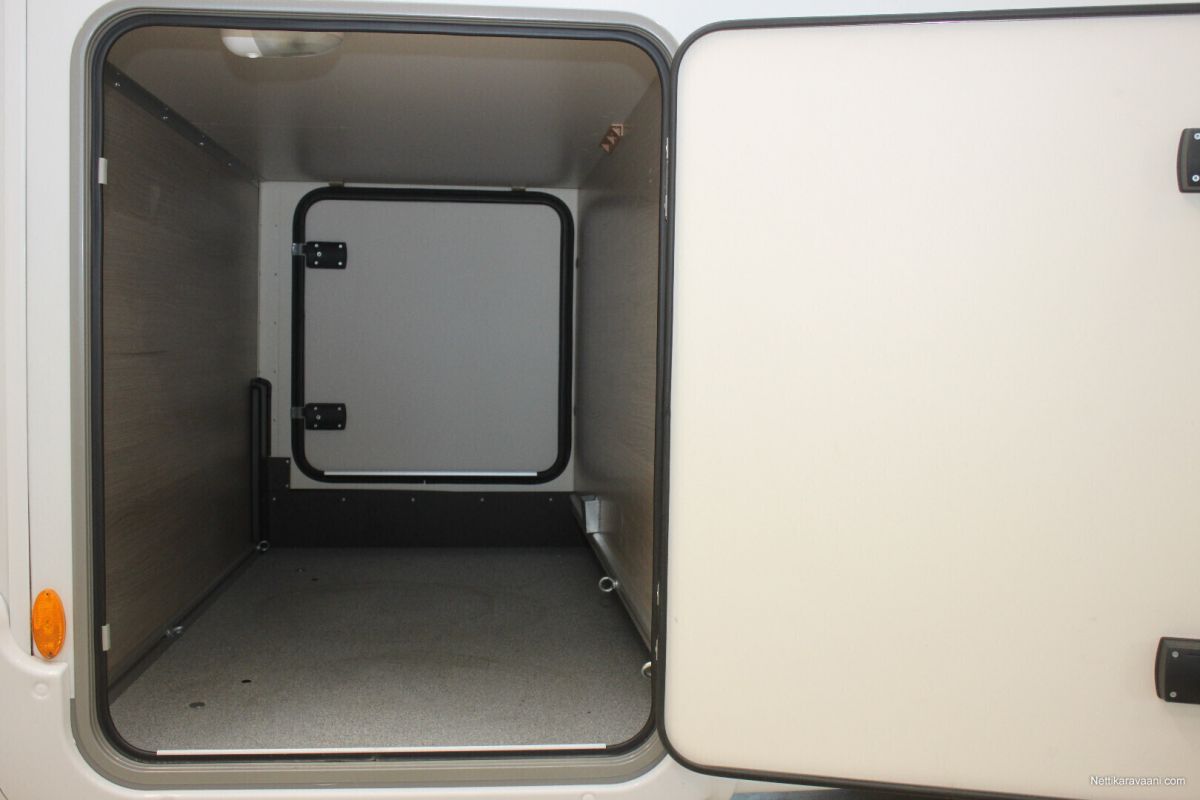 Varusteina: mattosarja, hyttysverkko-ovi, tv-teline, tv-antenni, palovaroitin, iso jääkaappi/pakastin, ohjaamon kasettiverhot, Zenec- peruutuskamera/navigaattori/soitin- yhdistelmä, ohjaamon ilmastointi, alumiinivanteet, kahdet renkaat, markiisi, lohkolämmitin, sähkörappu, aurinkopaneeli, lattialämmitys, ohjaamon penkeissä lämmitys, harmaavesisäiliön lämmitys