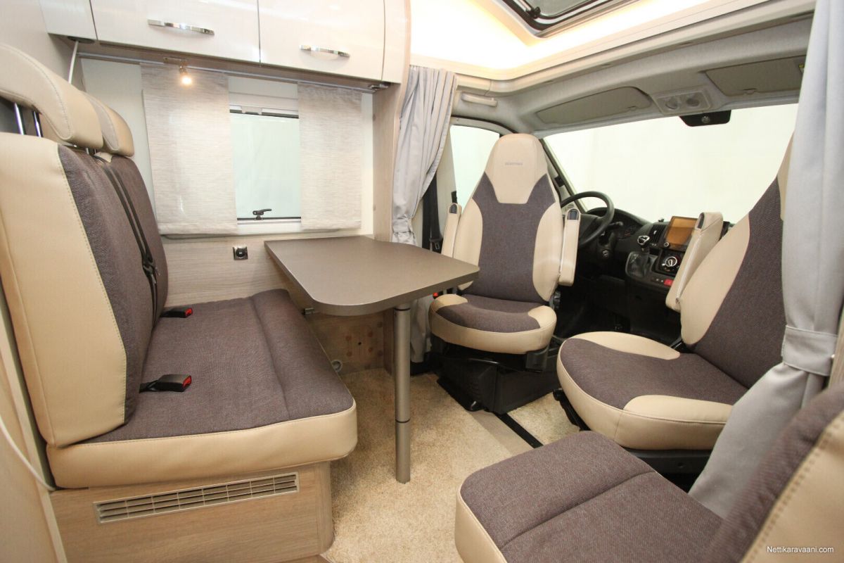 Ajotietokone, Jääkaappi, Kasetti WC, Kasettiverhot, Keskuslukitus: Kaukosäätöinen, Lattiamatot asunto-osassa, Liesi, Lämminvesiboileri, Markiisi, Navigaattori, Ohjaustehostin, Pakastelokero, Lohkolämmitin, Suihku, Sähkökäyttöiset ikkunat, Sähköpeilit, TV-antenni tai lautasantenni, ABS-jarrut, Airbag, Eristetty harmaavesisäiliö, Huoltokirja, Kahdet renkaat, Kattoluukku, Lattialämmitys, Sähkörappu, Trumatic, Turbo, Pesuallas, Pysäköintikamera, Erikoisvanteet, Sähköpatruuna, Vakionopeudensäädin, Penkinlämmittimet, Aurinkopaneeli