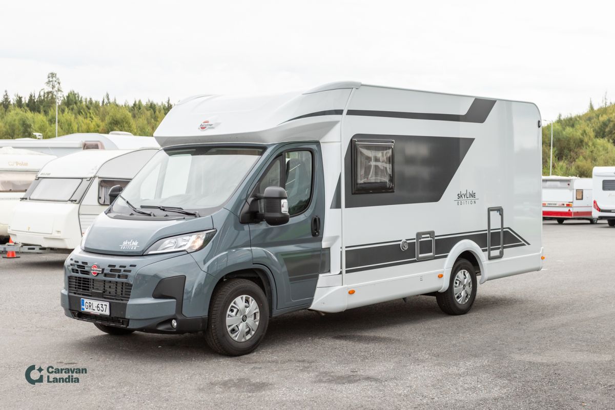 Huipputyylikäs erillisvuoteellinen puoli-integroitu Truma-lämmityksellä. Markiisi Hyttysverkko ovi Peruutuskamera Multimediakeskus Automaattivaihteisto Ilmastointi ajotilassa Luistonestojärjestelmä Lukkiutumattomat jarrut (ABS) Monitoimiohjauspyörä Nahkasisusta Sähkökäyttöiset ikkunat Sähköpeilit Vakionopeudensäädin L-istuinryhmä Kattoluukku Keskuslämmitys Truma Lämminvesiboileri Iso-jääkaappi Pakastelokero Liesi Erillisvuoteet Kasetti WC Pesuallas Suihku TV-antenni tai lautasantenni Meiltä voit ostaa etänä vaikka kotisohvaltasi! Kokeile kuinka helppoa ja vaivatonta matkailuajoneuvon ostaminen on.