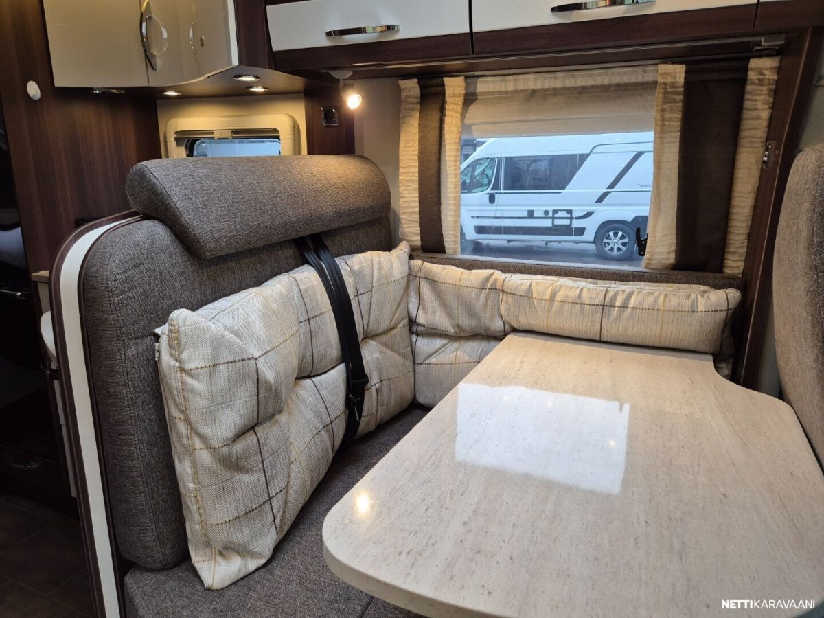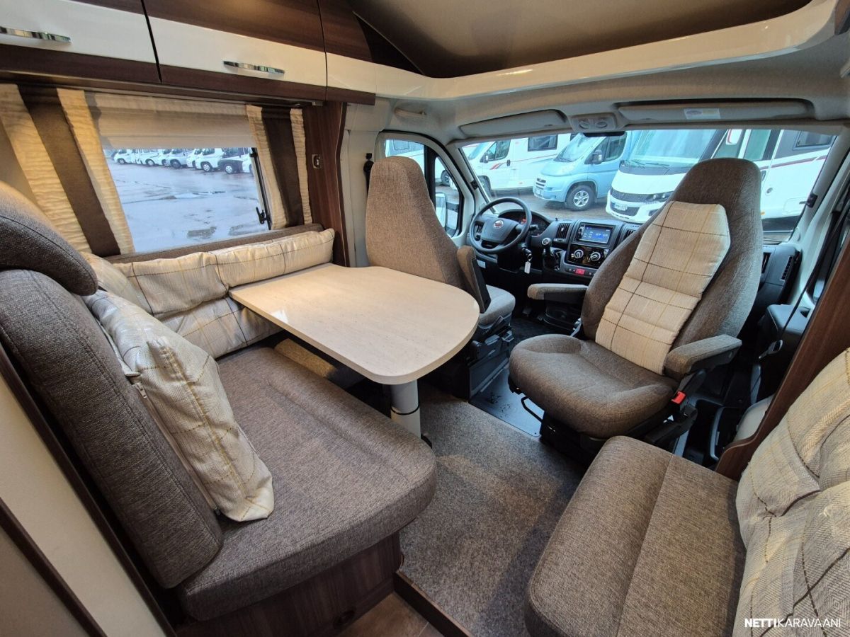 Ajotietokone, Jääkaappi, Kasetti WC, Kasettiverhot, Lämminvesiboileri, Markiisi, Ohjaustehostin, Pakastelokero, Pesuallas, Suihku, Sähkökäyttöiset ikkunat, Sähköpeilit, Vakionopeudensäädin, ABS-jarrut, Airbag, Ajonvakautusjärjestelmä, Käynnistyksenesto, Erikoisvanteet, Kattoluukku, Lattialämmitys, Sähköpatruuna, Trumatic, Turbo, Lattiamatot asunto-osassa, Liesi, Lohkolämmitin, Penkinlämmittimet, Pysäköintikamera, TV-antenni tai lautasantenni, Eristetty harmaavesisäiliö