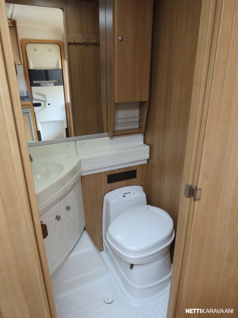 Jääkaappi, Kasetti WC, Kasettiverhot, Liesi, Lämminvesiboileri, Pakastelokero, Pesuallas, Suihku, TV-antenni tai lautasantenni, Alde, Erikoisvanteet, Kattoluukku, Lattialämmitys, Pyöräteline, Sähköpatruuna, Tukijalat