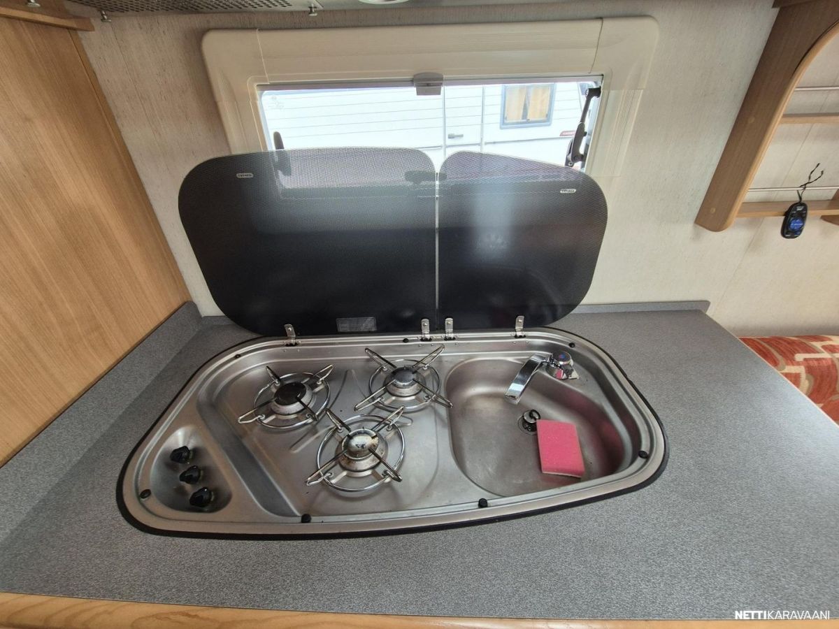 Erikoisvanteet, Kahdet renkaat, Kasetti WC, Lämminvesiboileri, Liesi, Jääkaappi, Pakastelokero, Kaasu-uuni, Kasettiverhot, Tukijalat, Pesuallas, Lattialämmitys, Sähköpatruuna, Alde, CD-soitin