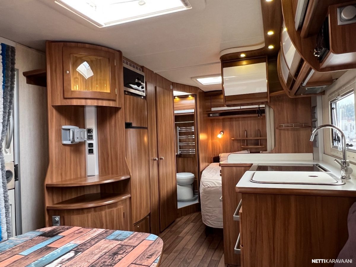 Jääkaappi, Kasetti WC, Kasettiverhot, Liesi, Lämminvesiboileri, Markiisi, Mikroaaltouuni, Pakastelokero, Pesuallas, Suihku, TV-antenni tai lautasantenni, Alde, Erikoisvanteet, Kattoluukku, Lattialämmitys, Sähköpatruuna, Tukijalat, Aurinkopaneeli, Etukatos