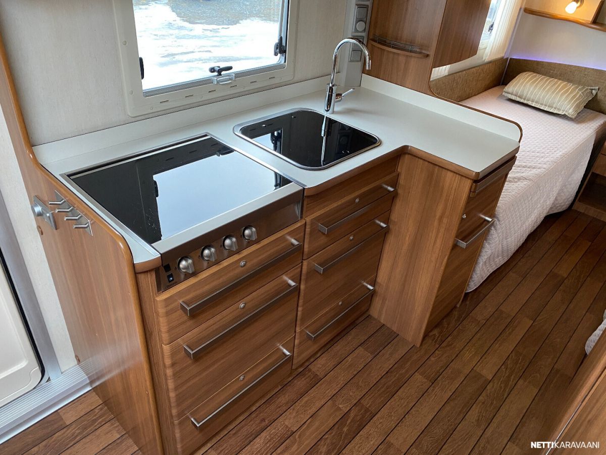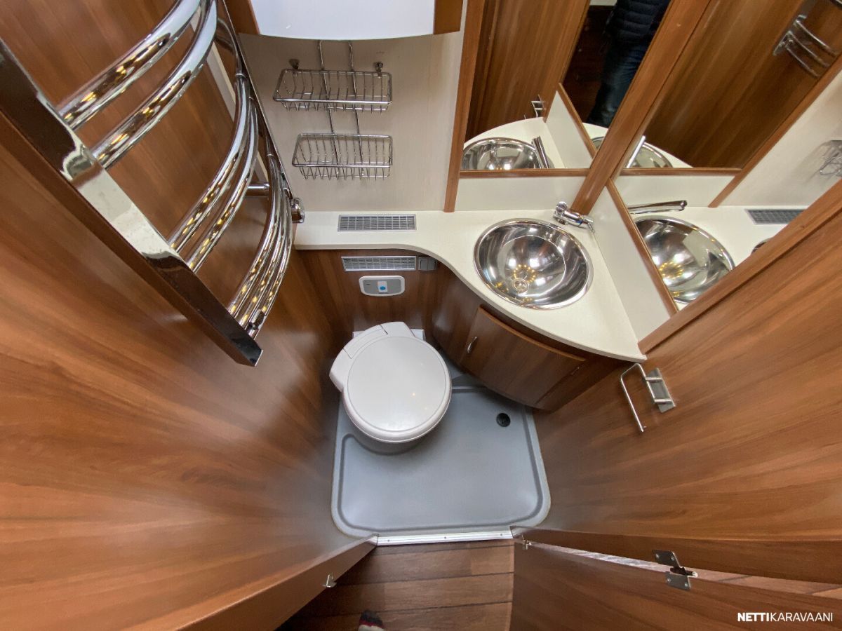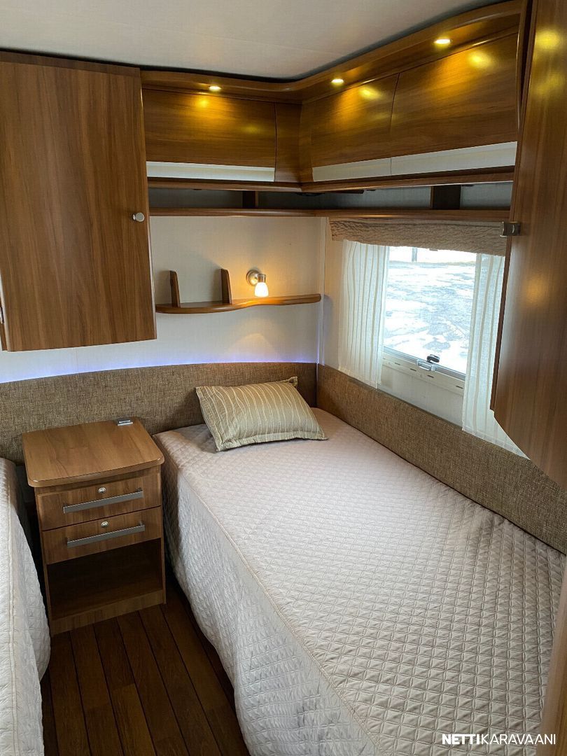Erillisvuoteet, ATC-ajonvakautusjärjestelmä, Alde-nestekeskuslämmitys, nestekiertoinen lattialämmitys, sähköpatruuna, lämmin vesi, iso 2-ovi jää-/pakastinkaappi, liesituuletin, mikro-uuni, kiinteä raikasvesisäiliö, kiinteä harmaavesisäiliö, kasetti-wc, pyyhekuivain, kasettiverhot, kirkas kattoluukku, radio/cd, akku-/laturivarustus, sähkömittari, telttapalvelu, tv-antenni, tavaraluukku, suksiluukku, kitkavetopää, alu-vanteet, kaasupullo...