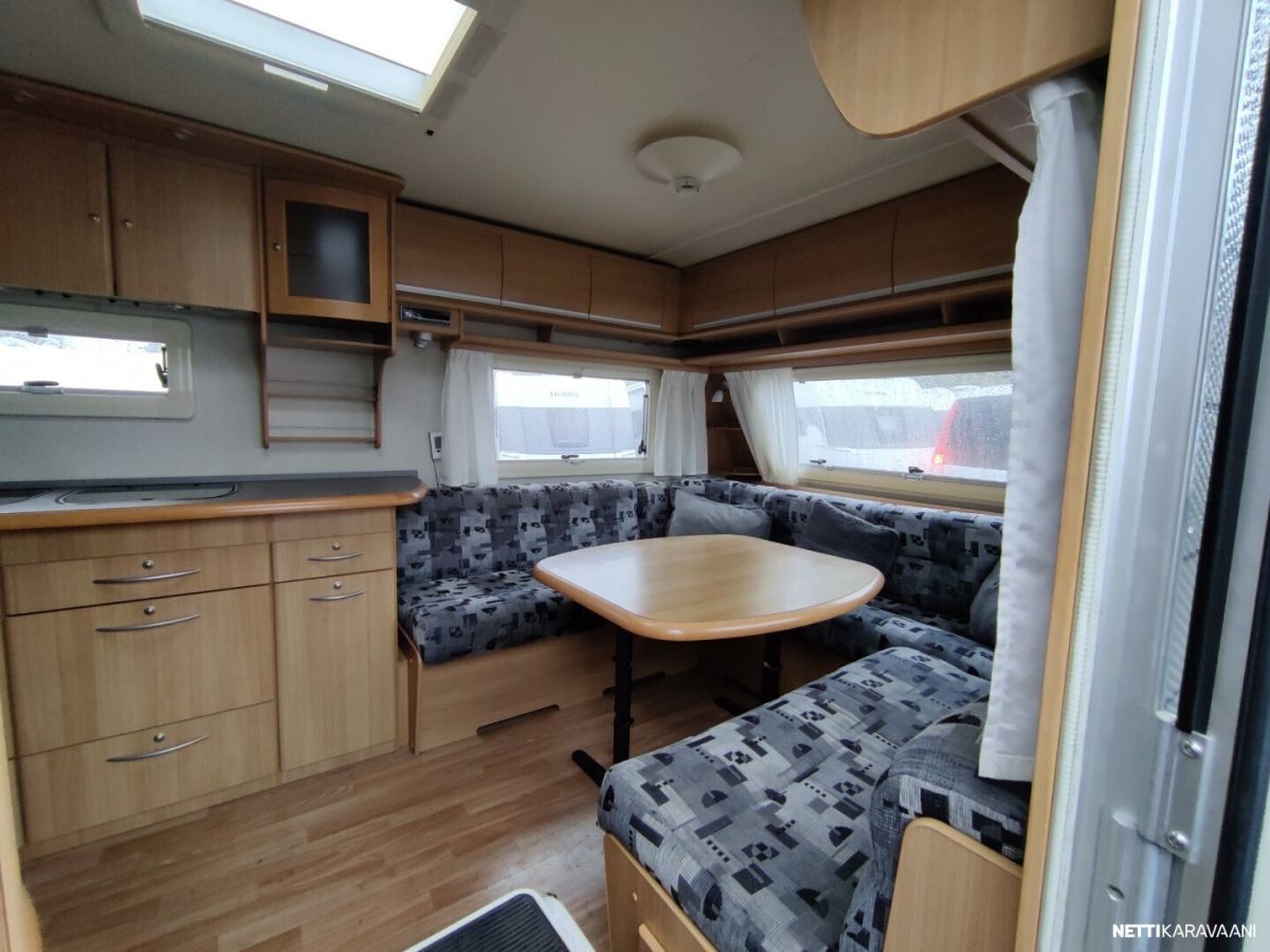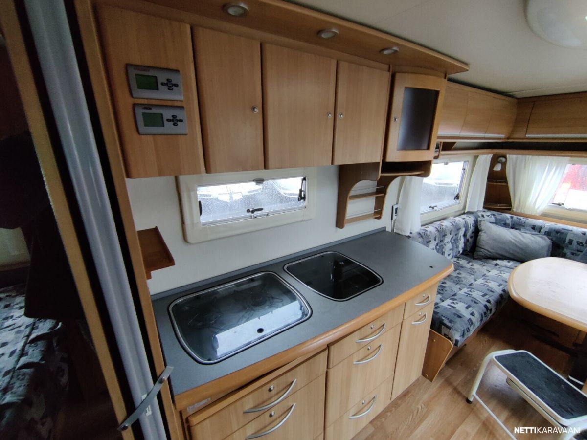 Siisti ja tilava talvilämmin vaunu Alden nestekeskuslämmitys kaasulla ja sähköllä Nestekiertoinen lattialämmitys Lämmin vesi Suihku Kiinteä harmaavesisäiliö Pyyhekuivain Tavara luukku vuoteen alle Suksi luukku Korkea jääkaappi erillisellä pakastelokerolla Mikro Kitkavetopää Polkupyörä teline Akku ja laturi Oven pielessä kaappi ulkotakeille Radio Alumiini vanteet TV antenni Katsastettu 4/2025 Seuraava katsastus 12/2027