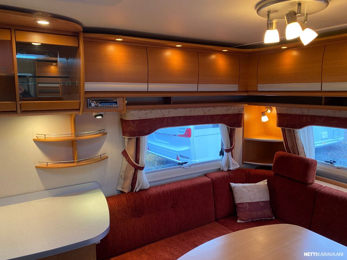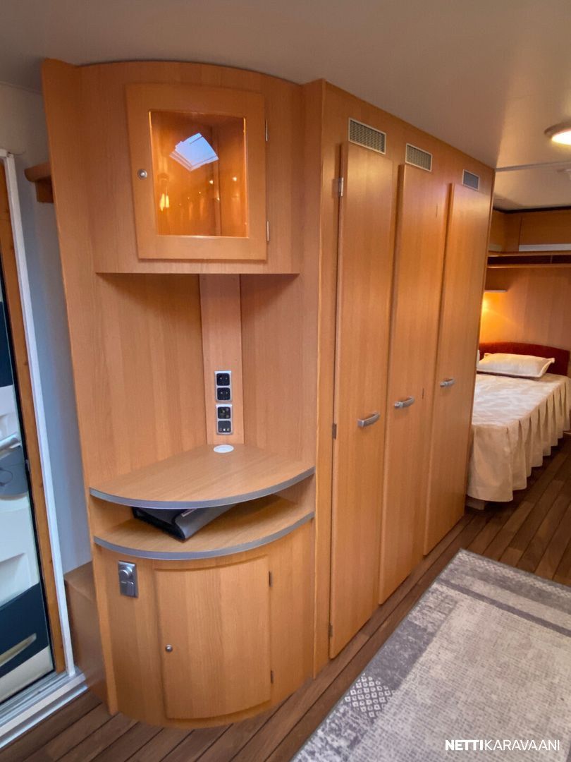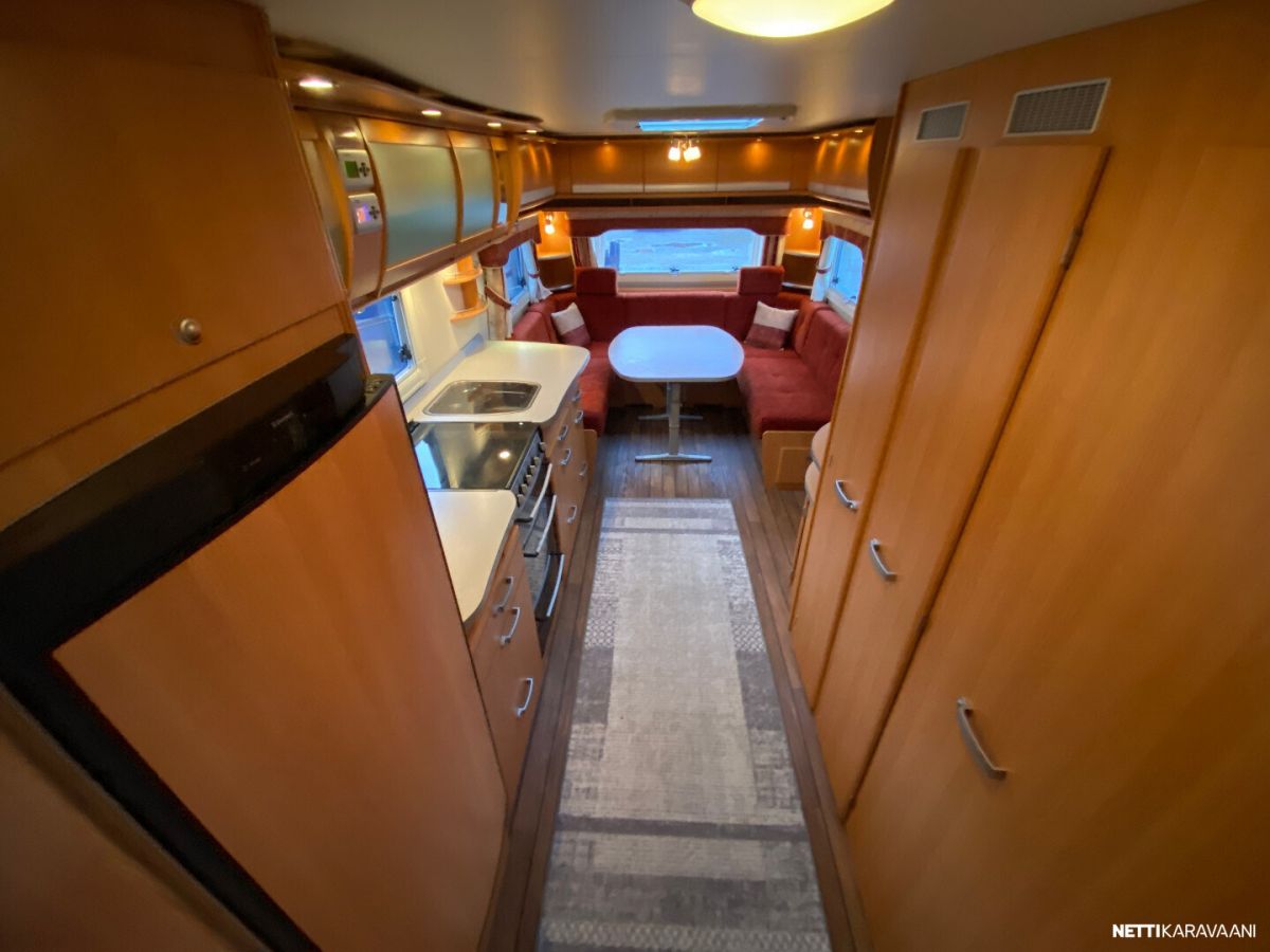 Alde-nestekeskuslämmitys, nestekiertoinen lattialämmitys, sähköpatruuna, nestekiertoinen pyyhekuivain, lämmin vesi, iso jää-/pakastinkaappi, liesituuletin, kaasuliesi, kaasu-uuni, grilli, kiinteä raikasvesisäiliö, kiinteä harmaavesisäiliö, kasettiverhot, kirkas kattoluukku, radio/cd, akku-/laturivarustus, telttapalvelu, tv-antenni, tavaraluukku, suksiluukku, kitkavetopää, alu-vanteet, kaasupullo, ym...
