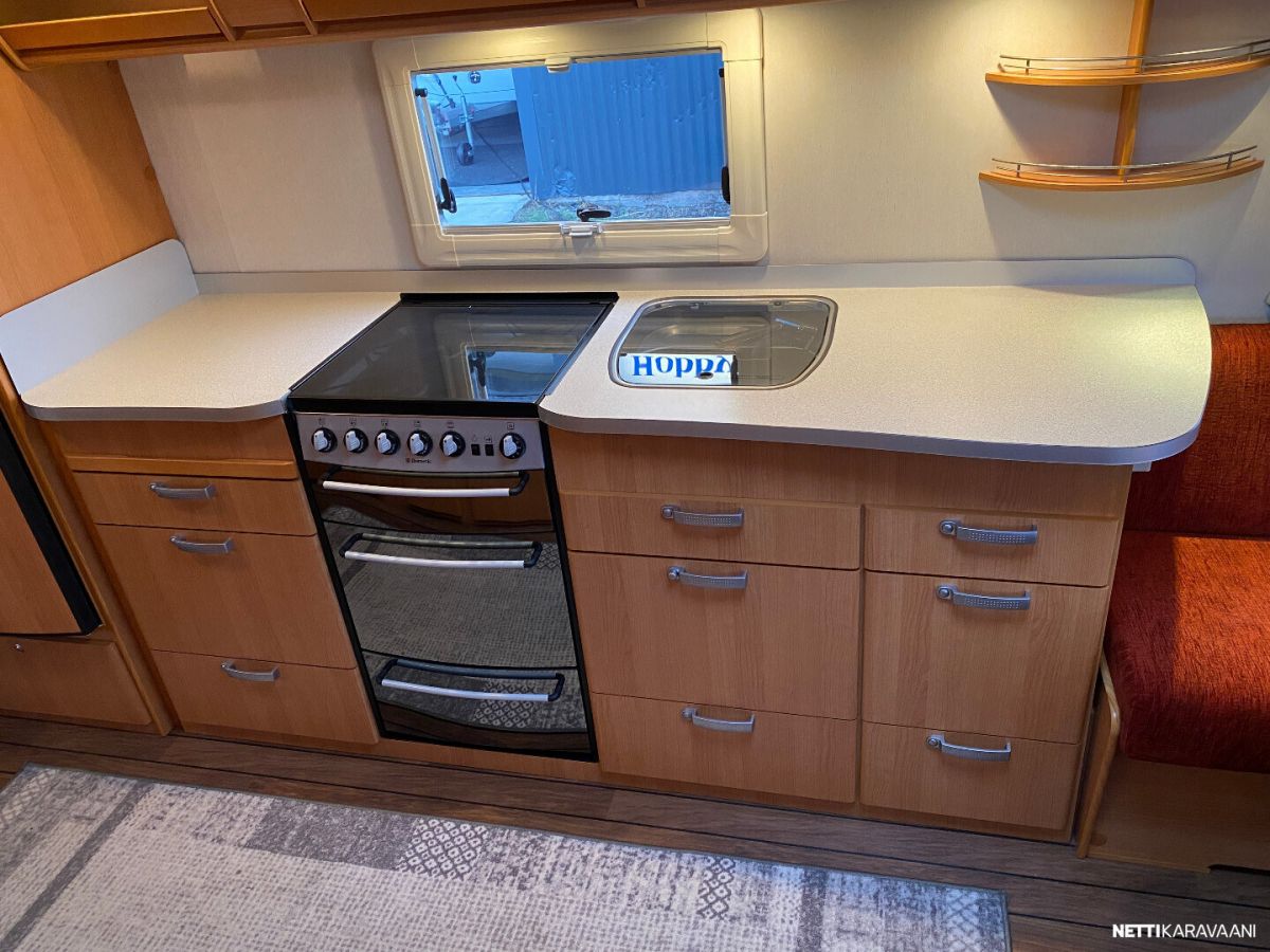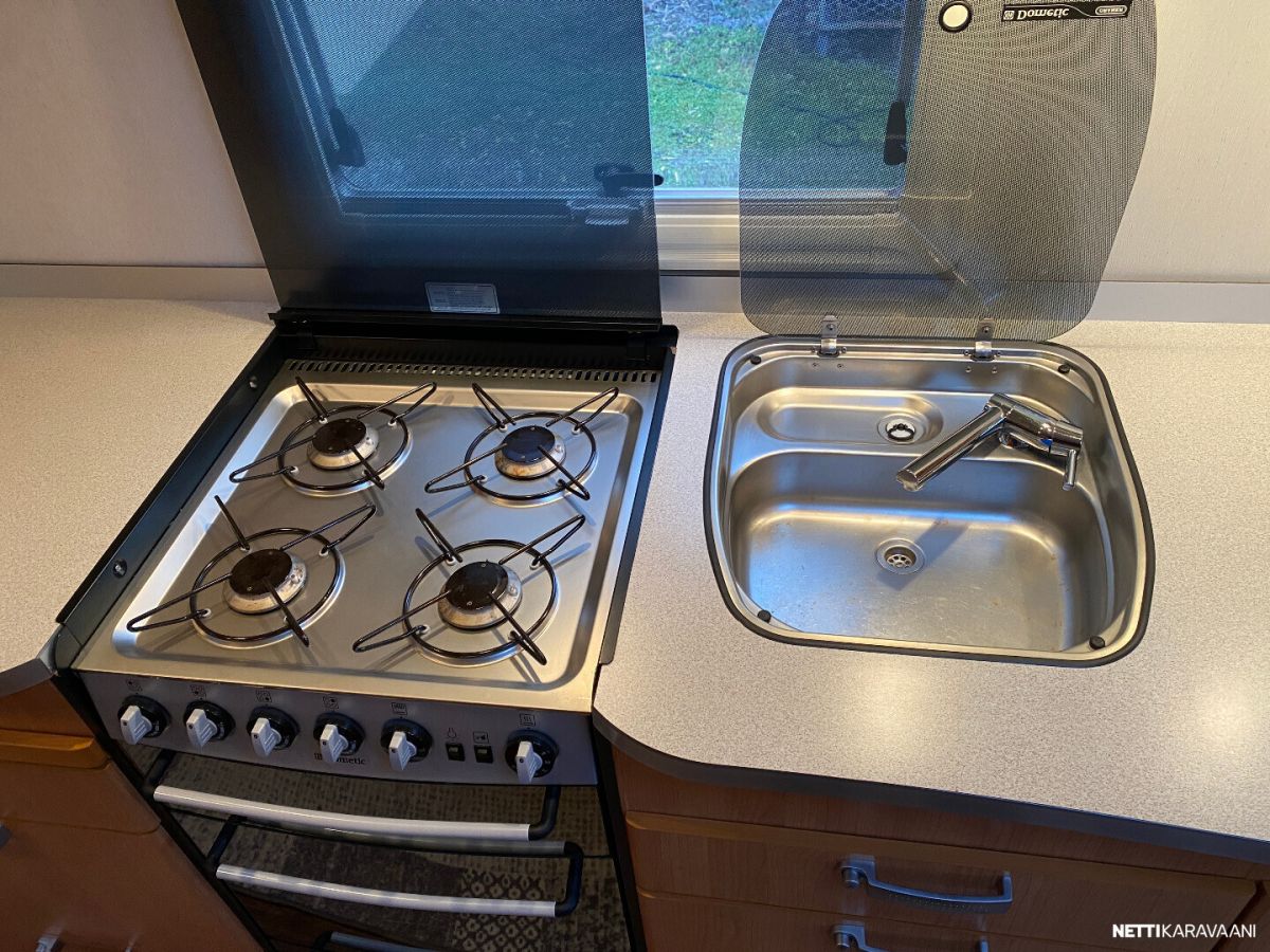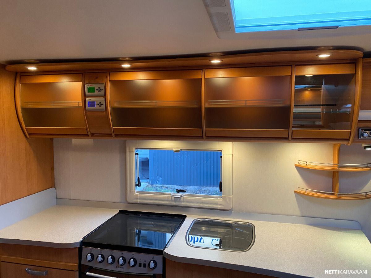 Jääkaappi, Kaasu-uuni, Kasetti WC, Kasettiverhot, Liesi, Lämminvesiboileri, Pakastelokero, Pesuallas, Suihku, TV-antenni tai lautasantenni, Alde, Erikoisvanteet, Eristetty harmaavesisäiliö, Kattoluukku, Lattialämmitys, Sähköpatruuna, Tukijalat